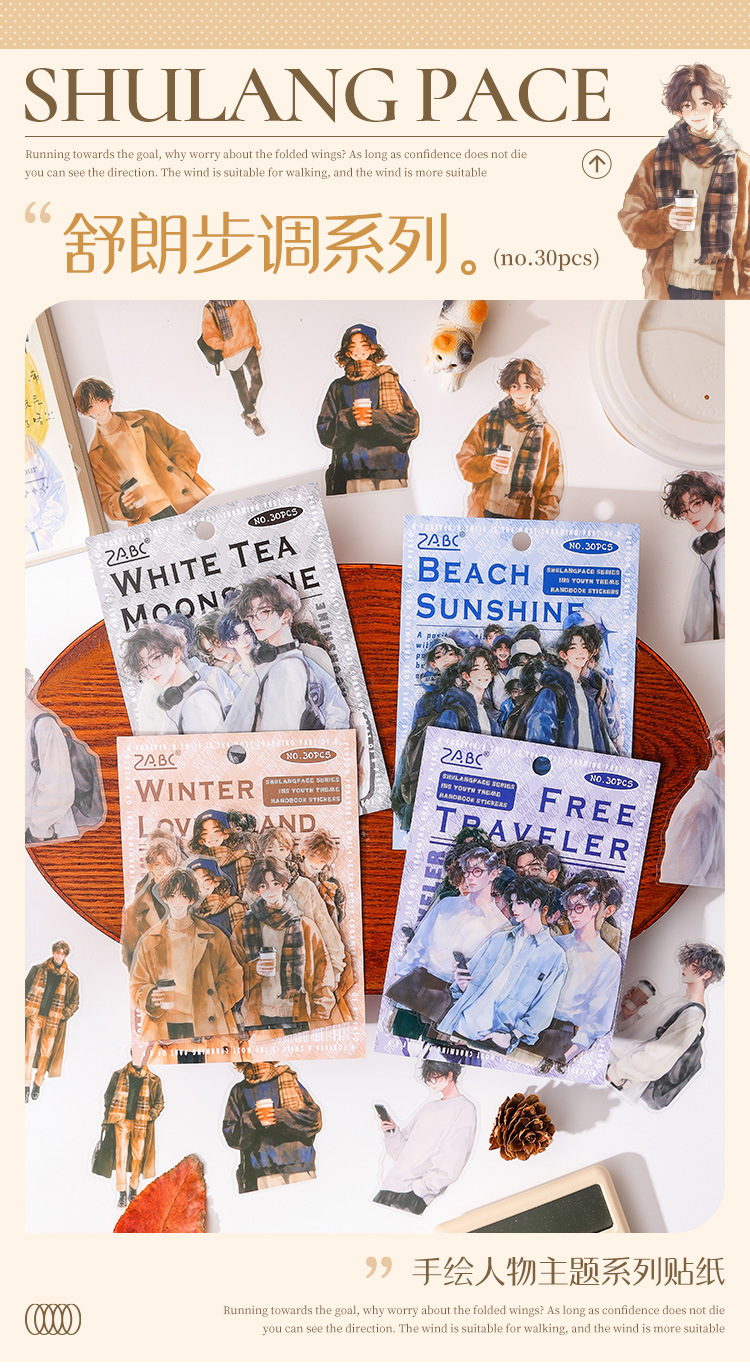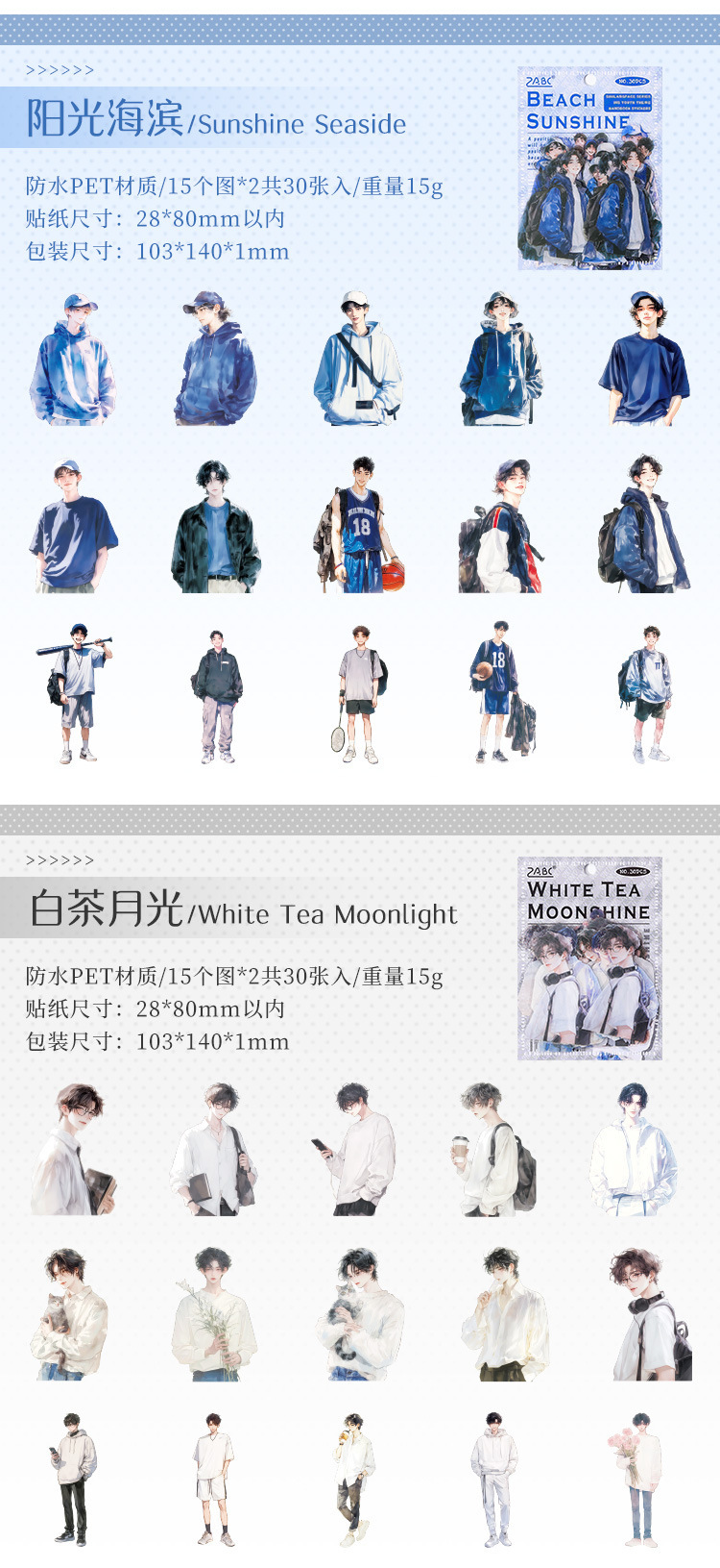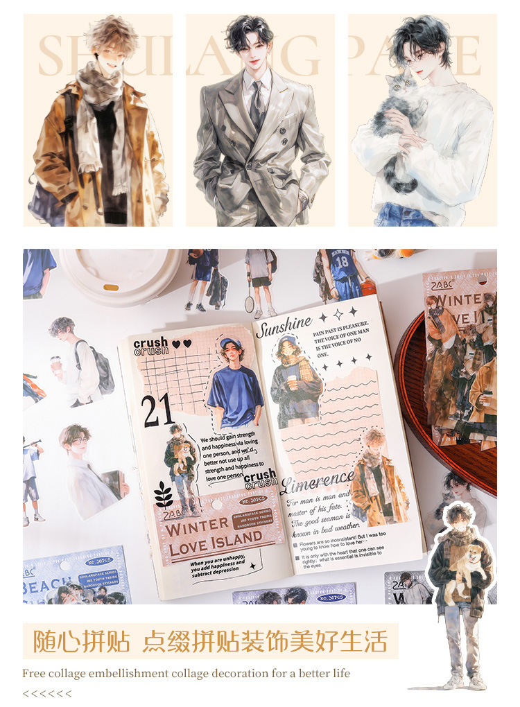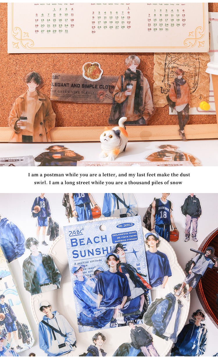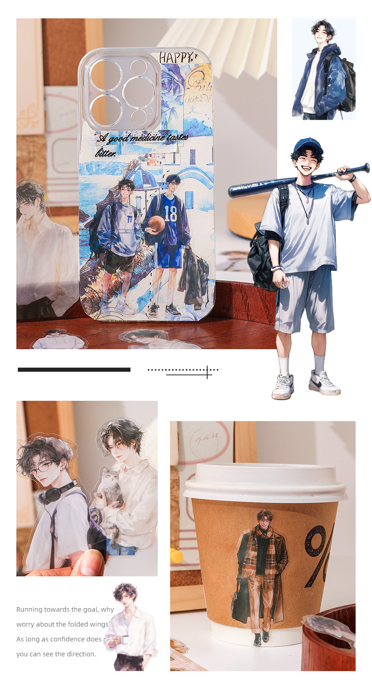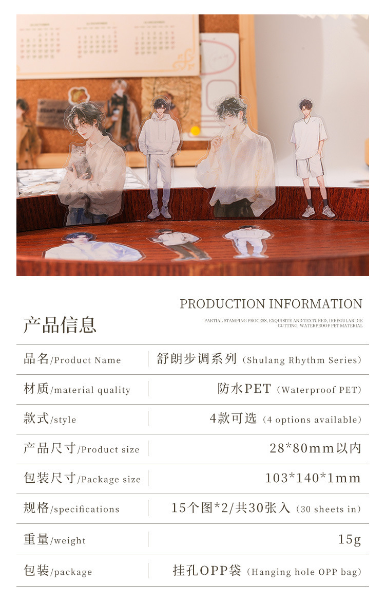Shu Lang paso transparente impermeable pet stickers paquete diy diario stickers sunshine boy personaje stickers