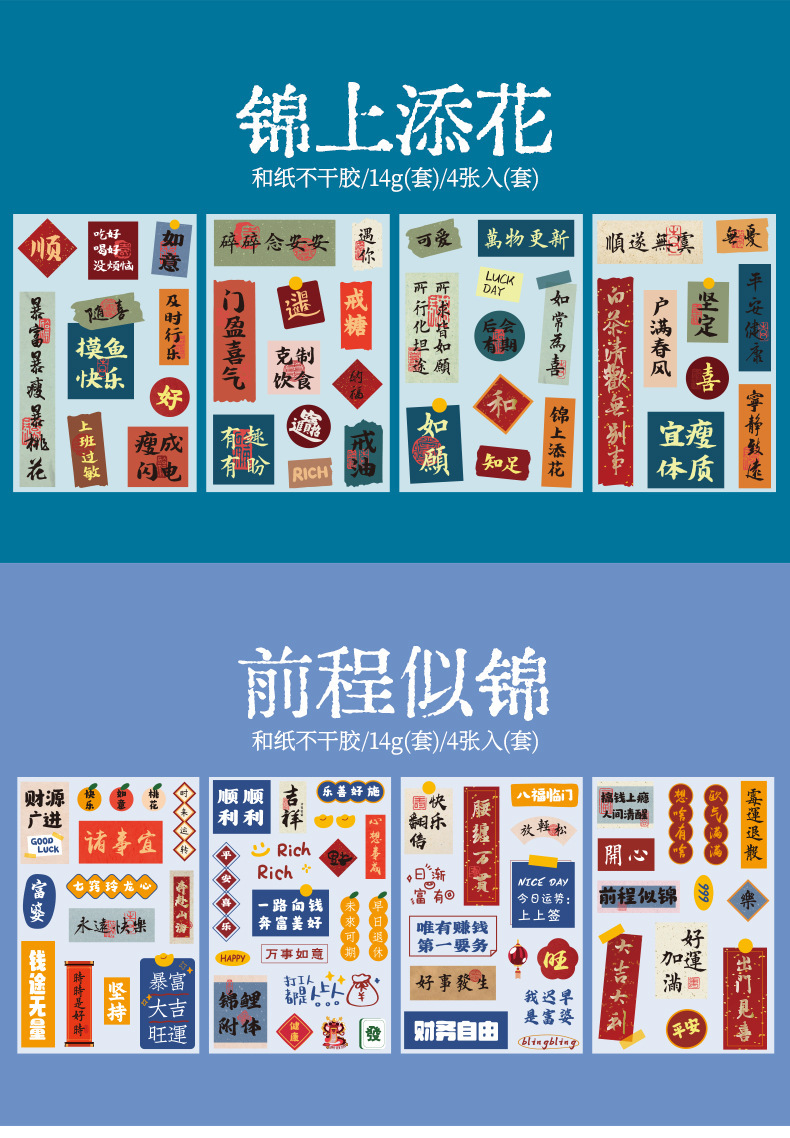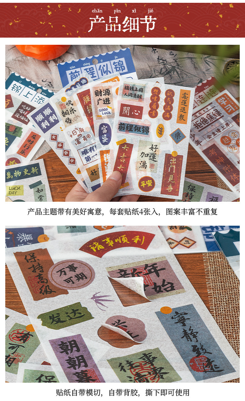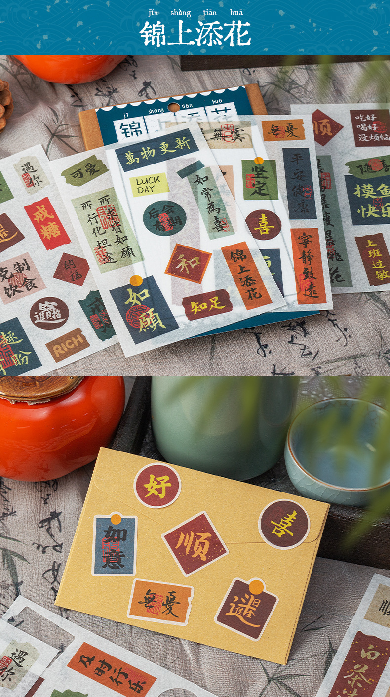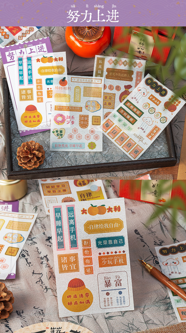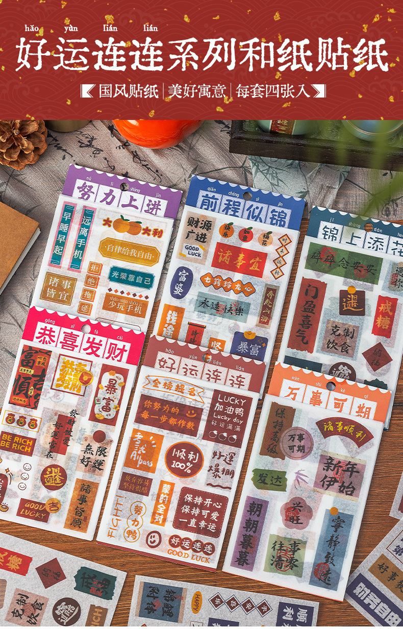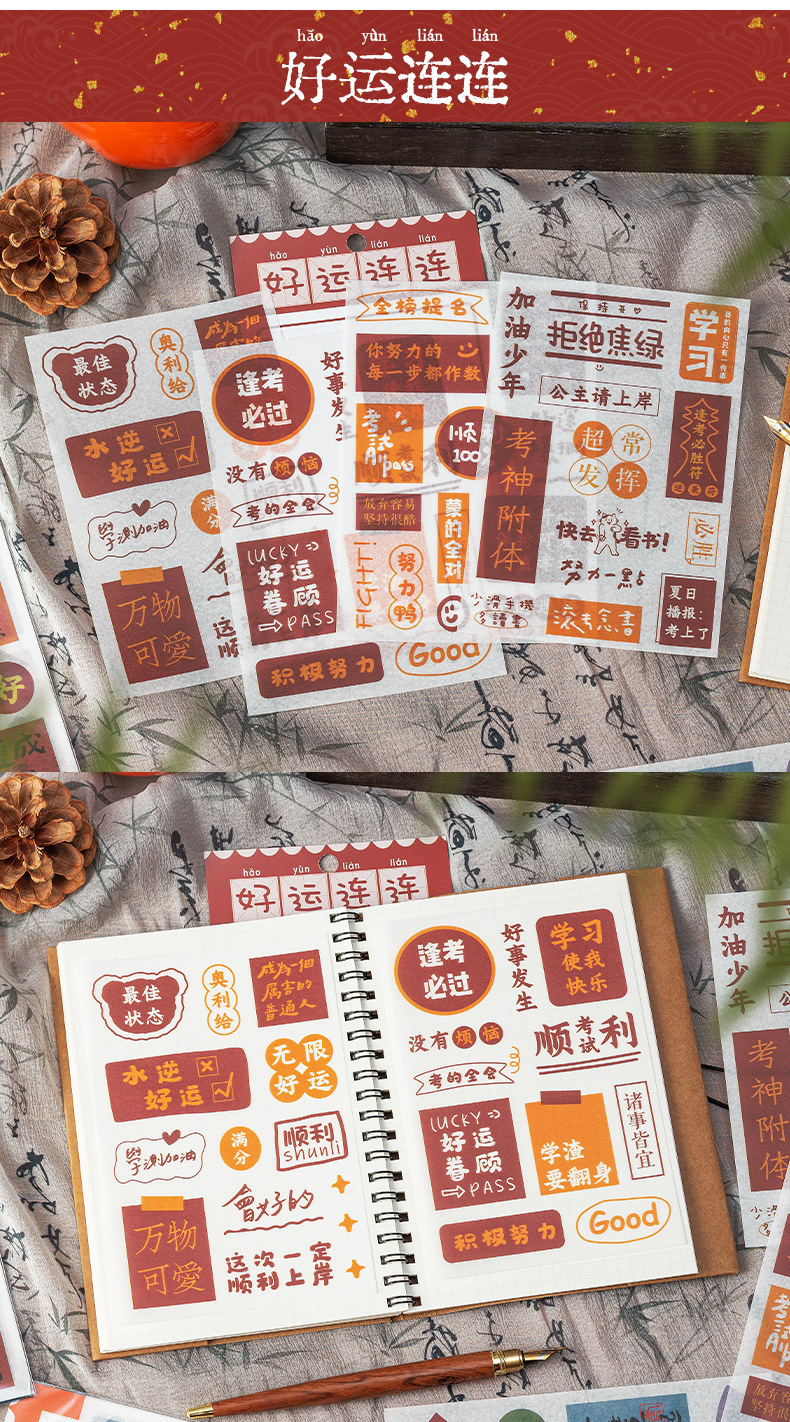 Buena suerte serie y pegatinas de papel diy diario de mano pegatinas decorativas estudiantes inspiradores chinos pegatinas de bendición