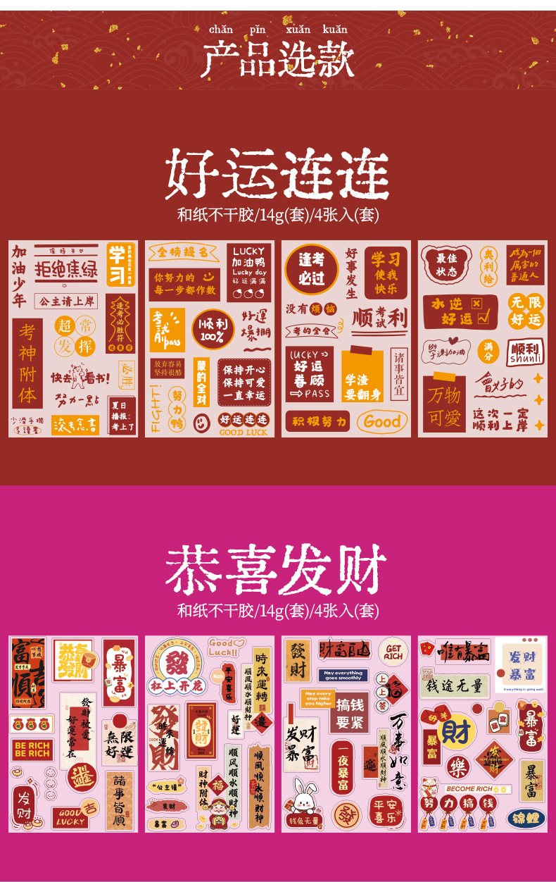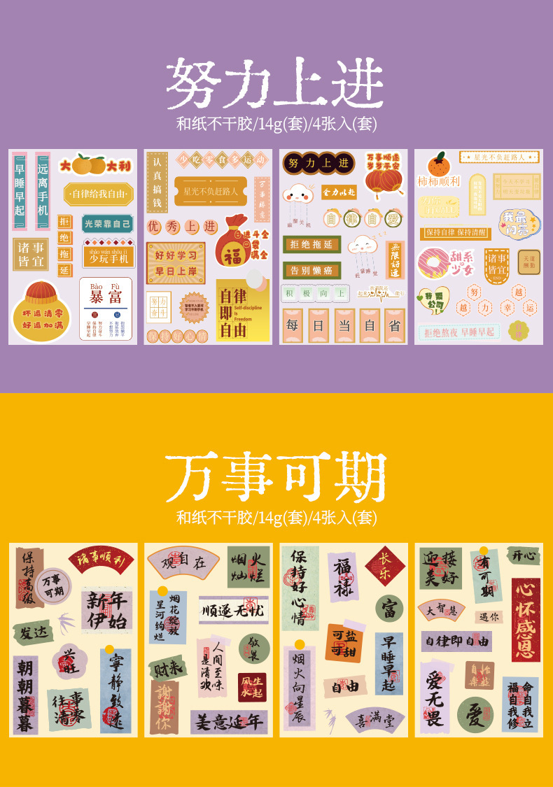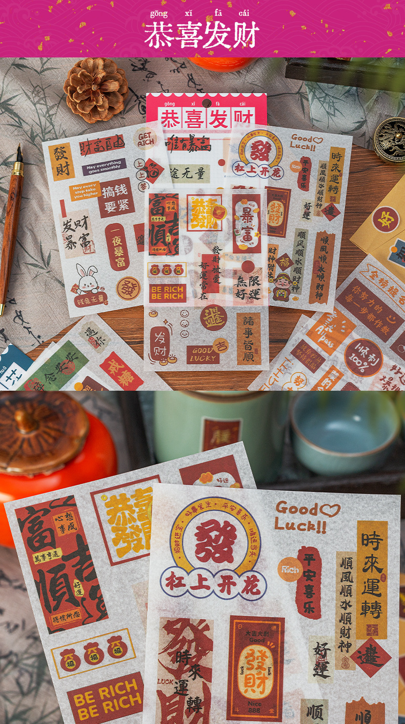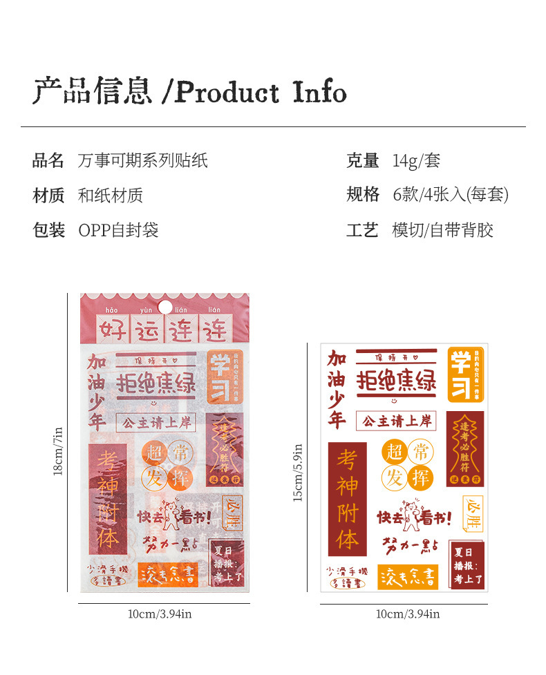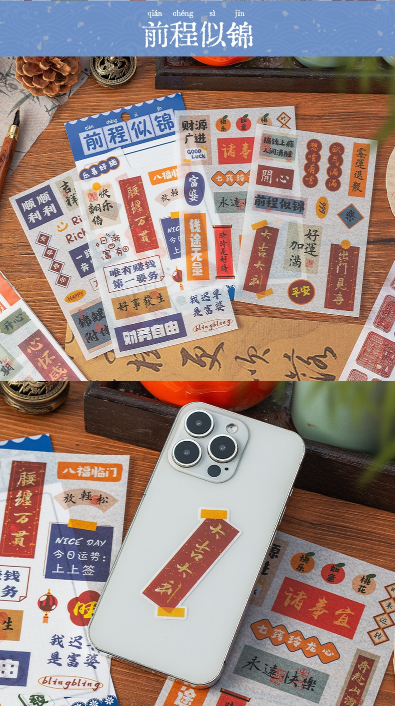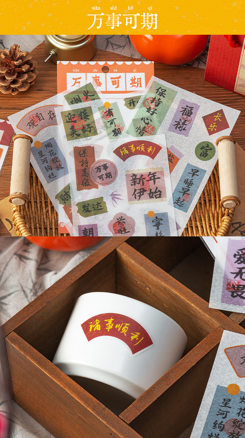 Buena suerte serie y pegatinas de papel diy diario de mano pegatinas decorativas estudiantes inspiradores chinos pegatinas de bendición