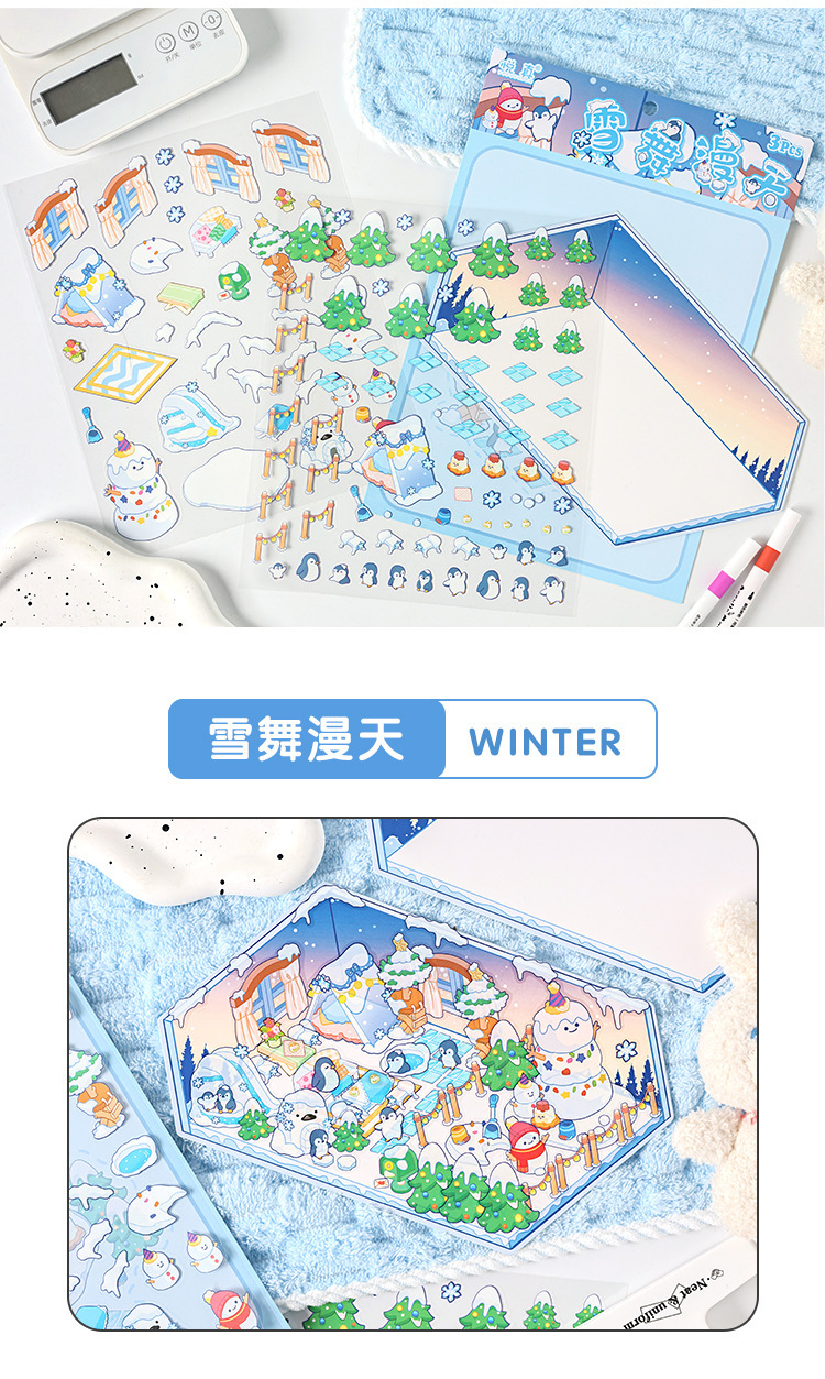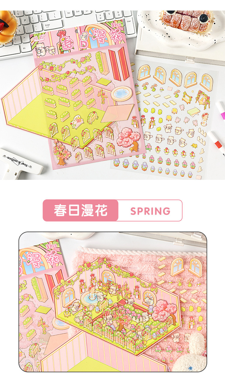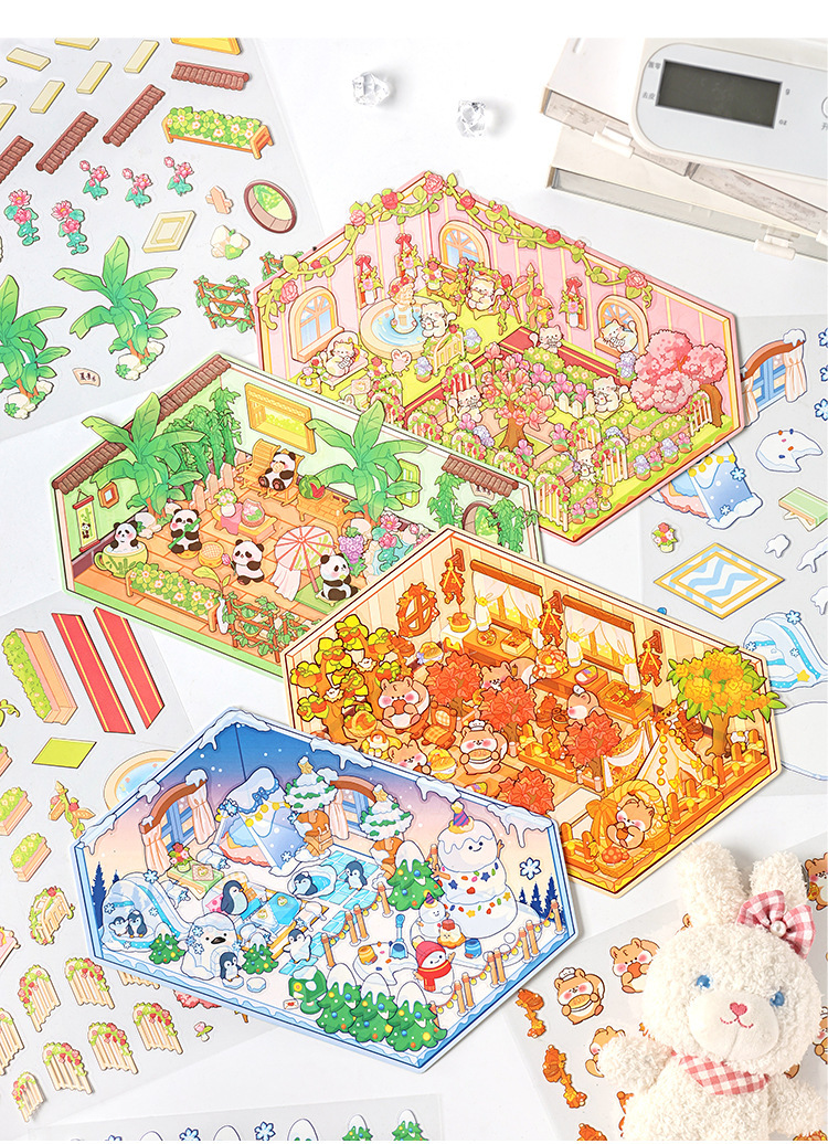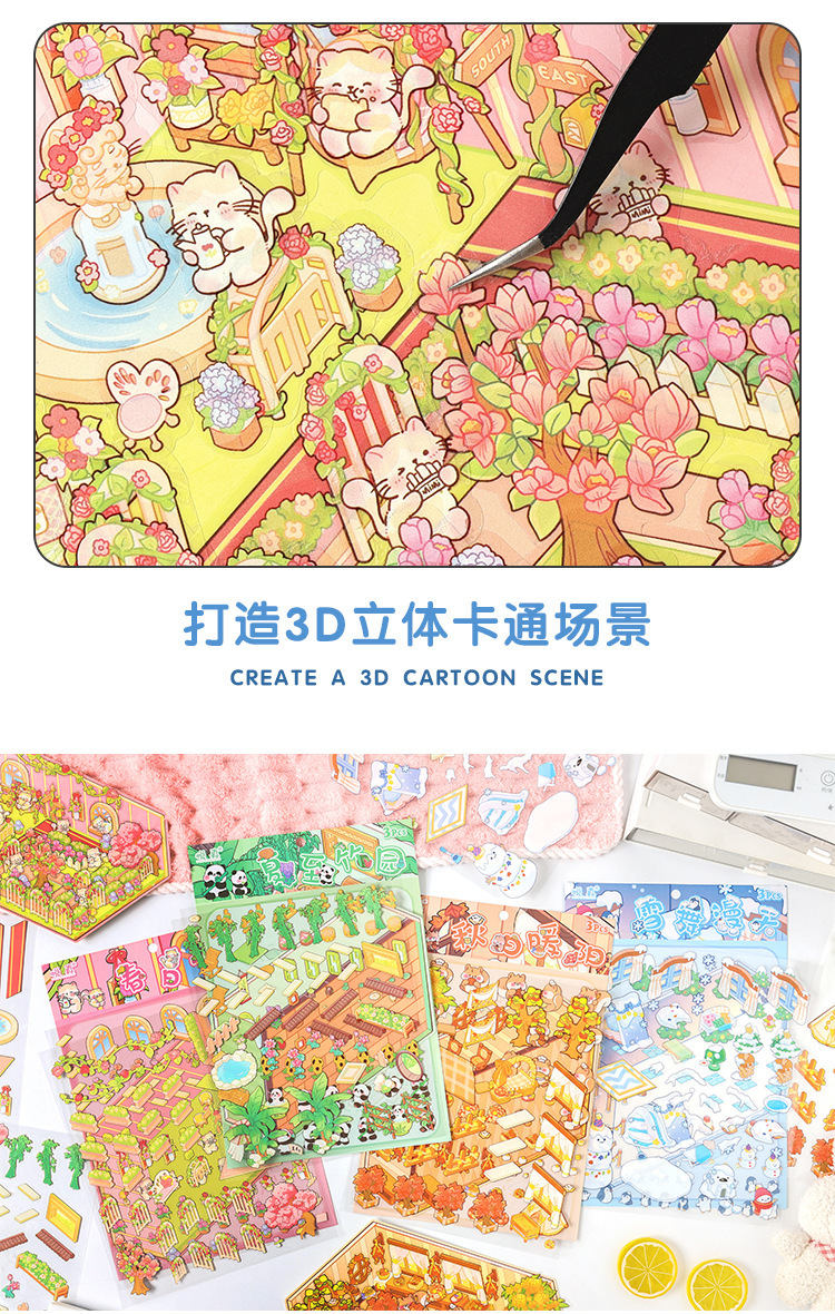 Fantástico cuatro estaciones 3D pegatinas impermeables para mascotas DIY creativas miniaturizadas dibujos animados contabilidad decoración de escenas pegatinas de acertijo
