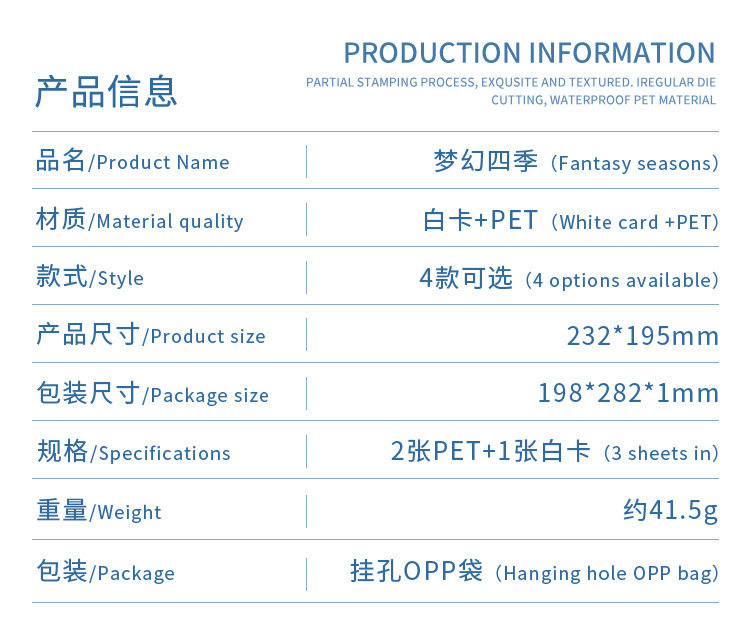 | Color | 1 primavera llena de flores, 2 verano jardín de bambú, 3 otoño cálido sol, 4 baile de nieve por todo el cielo |