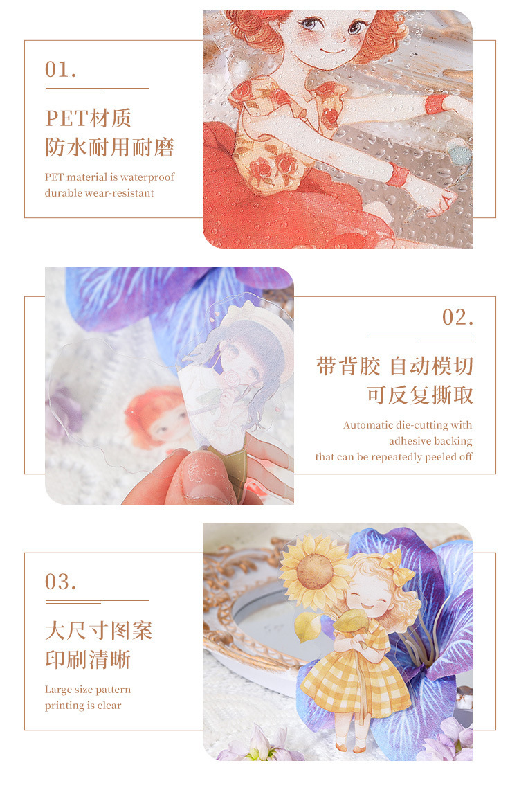 Elegante como azul transparente pegatinas de mascotas impermeables diy diario pegatinas personajes transfronterizos material pegatinas de chicas bolsa