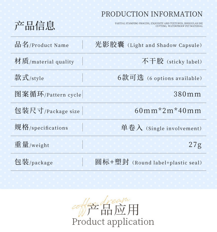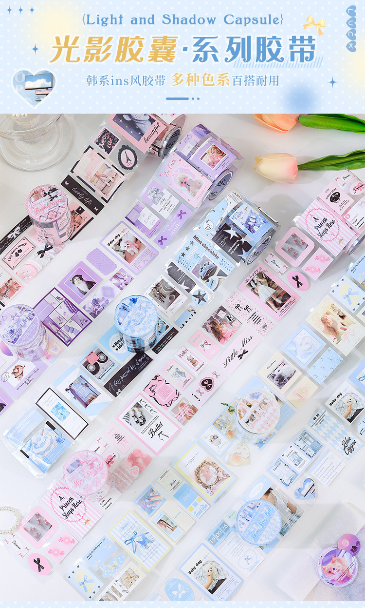 Luz y sombra cápsula transparente cinta adhesiva impermeable pet diy diario de mano pegatinas de decoración retro paisajismo transfronterizo pegatinas de mano