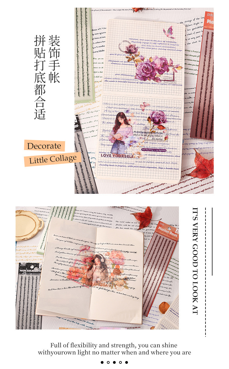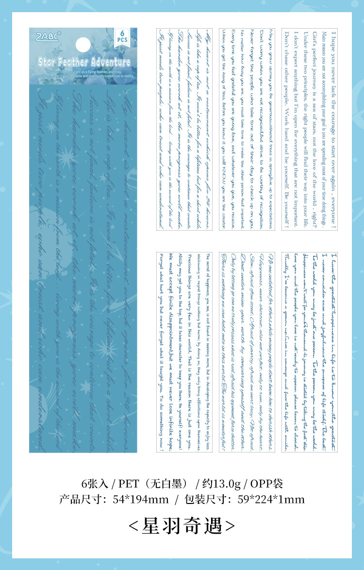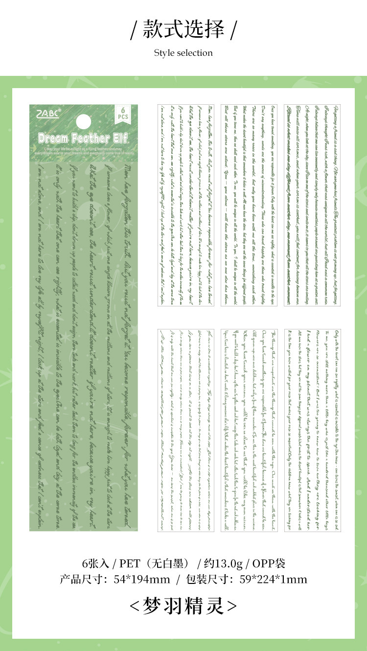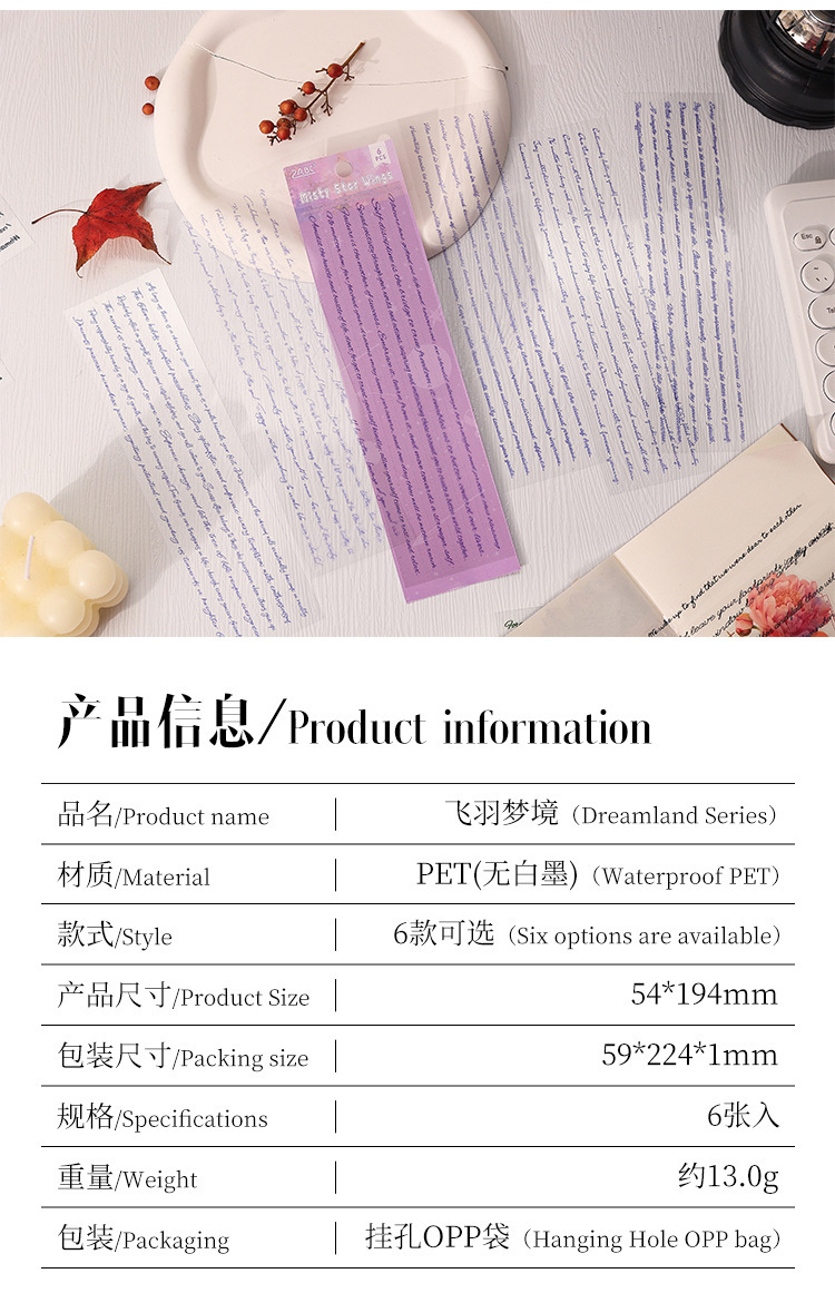 Flying Plume Dreamland pegatinas impermeables transparentes para mascotas diy pegatinas de diario diario retro transfronterizas pegatinas de barra larga en inglés