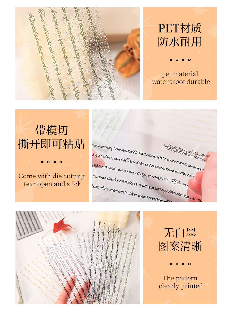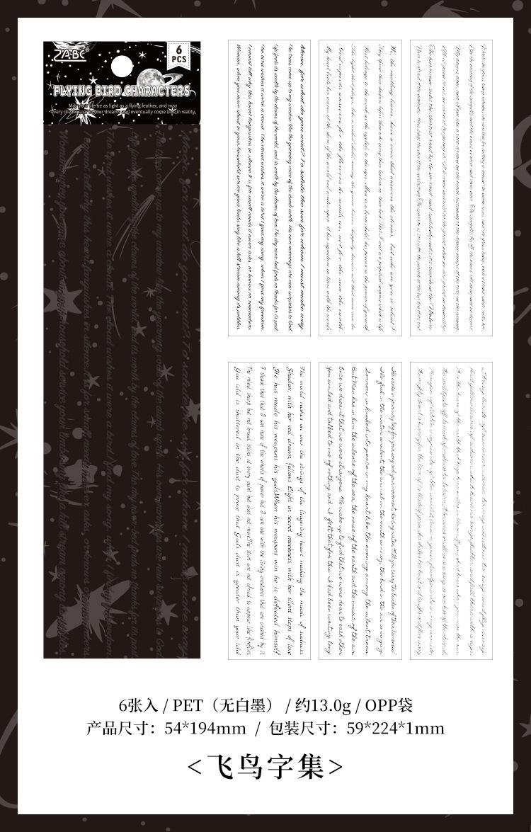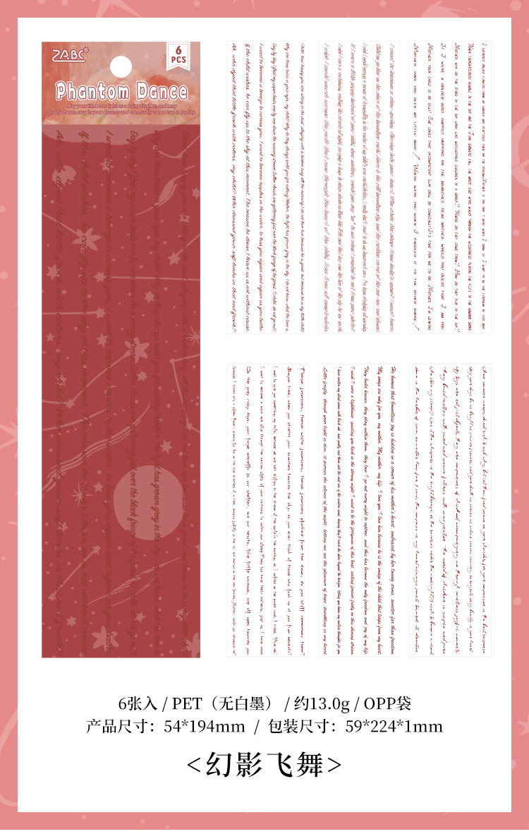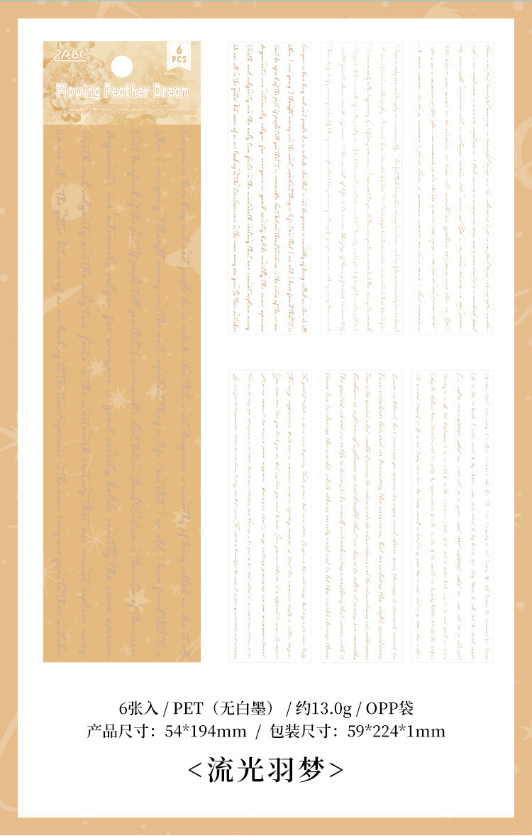 Flying Plume Dreamland pegatinas impermeables transparentes para mascotas diy pegatinas de diario diario retro transfronterizas pegatinas de barra larga en inglés