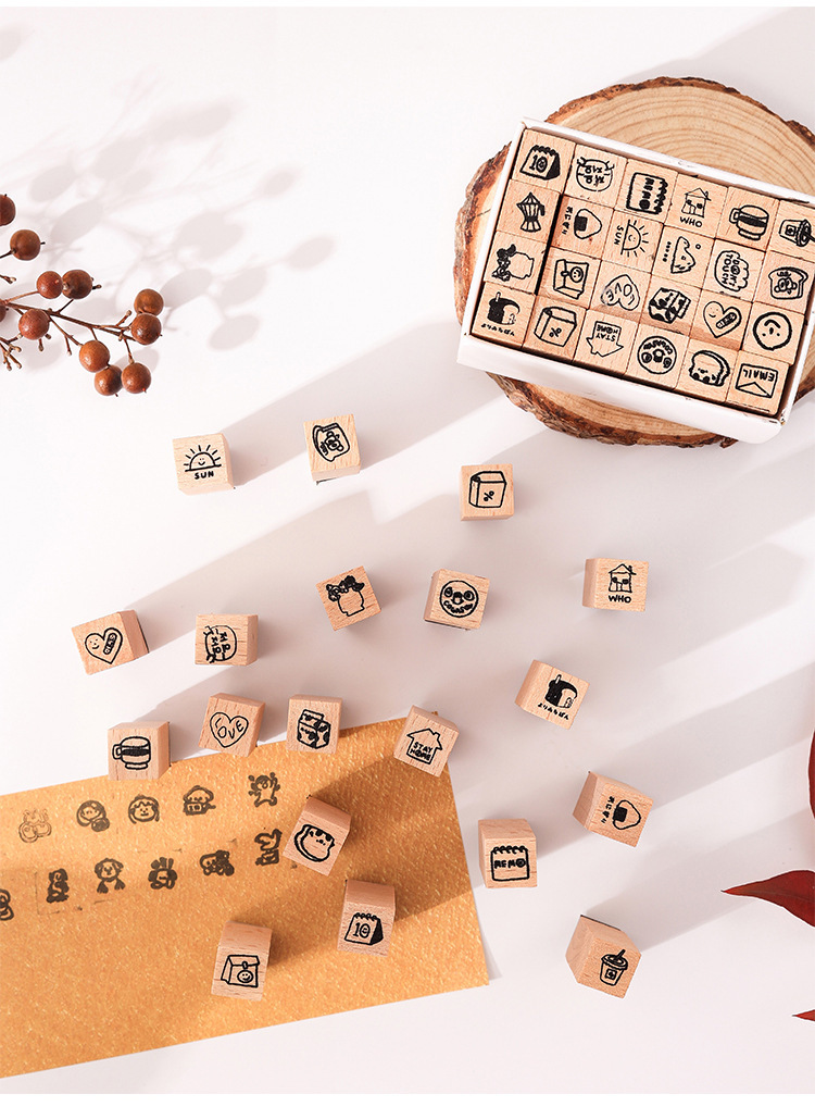 Impresión de estado de ánimo sello de caja de madera diy diario de mano decoración de sello pequeño sello transfronterizo caja de sello de beech