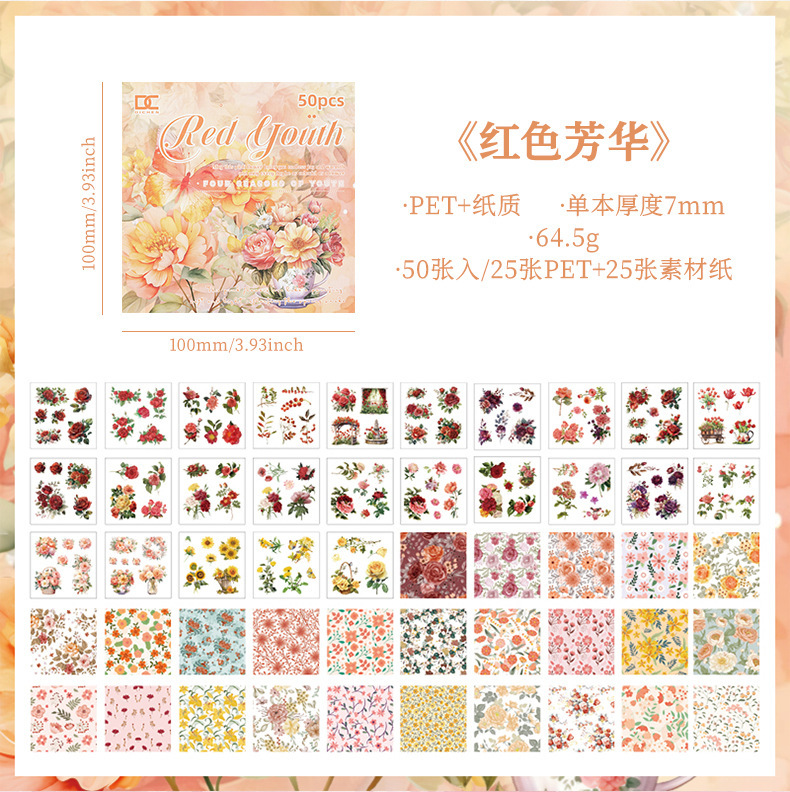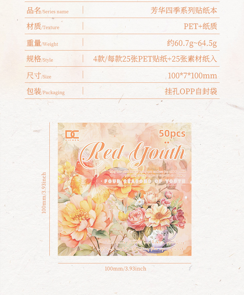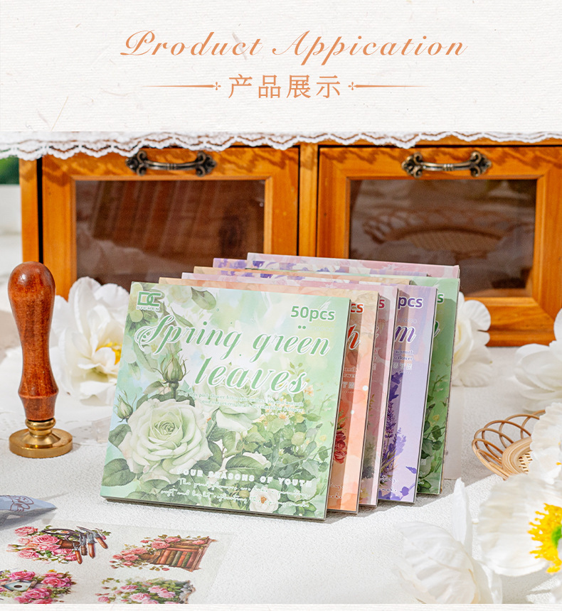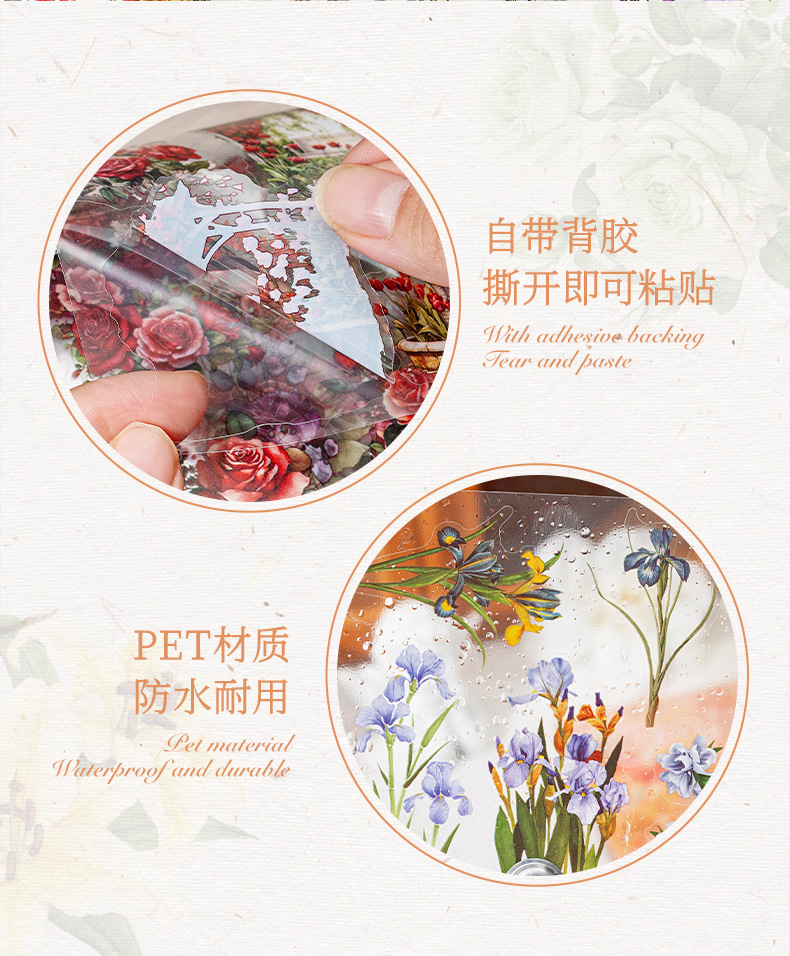 Fanghua cuatro estaciones pegatinas de mascotas transparentes Bendiy libro de mano diario pegatinas decorativas desgarrable libro de mano papel de base