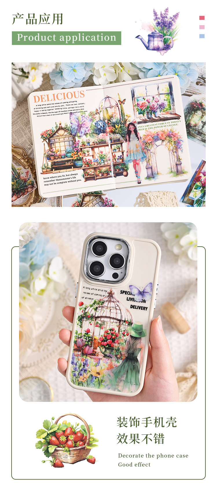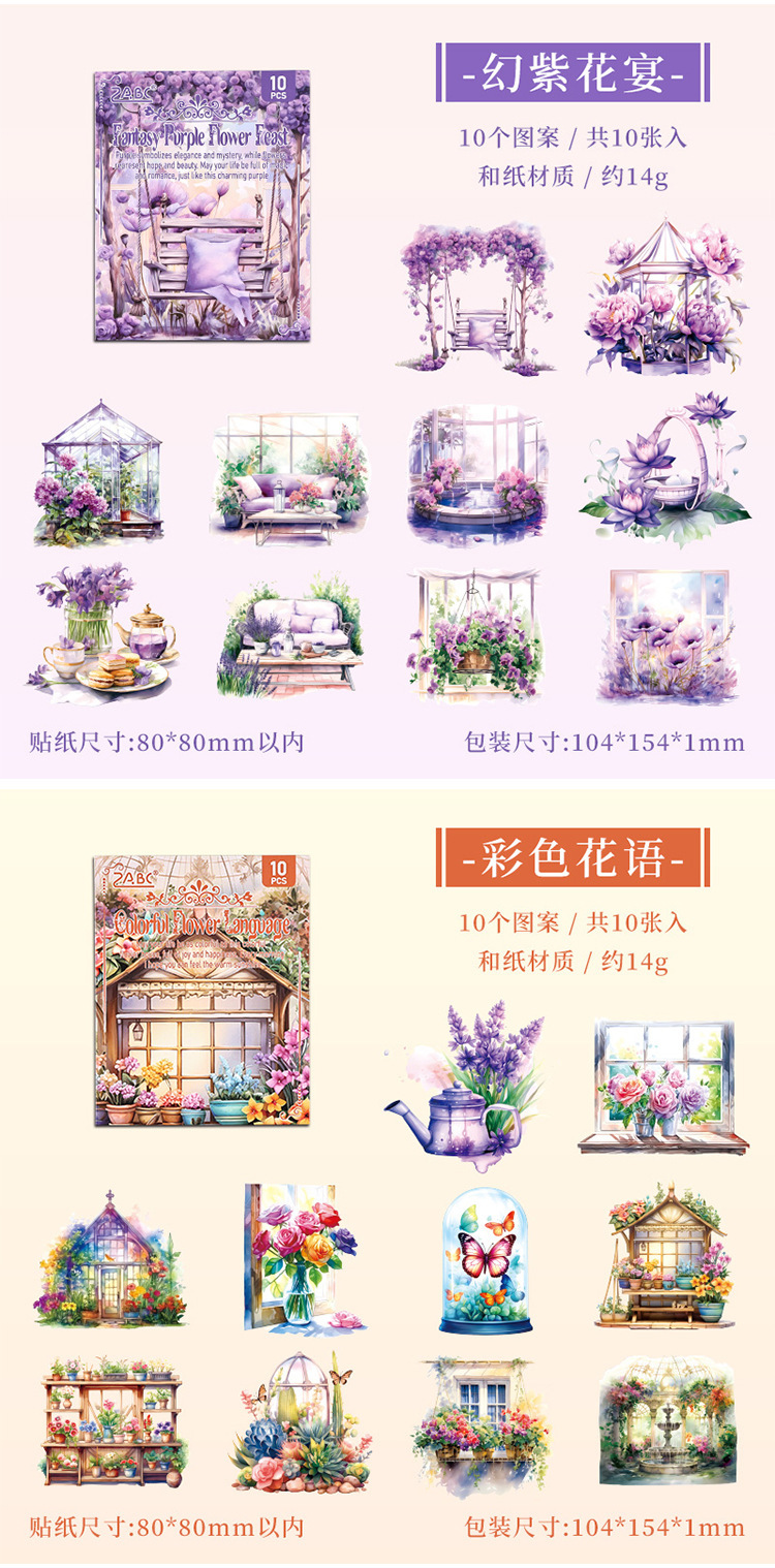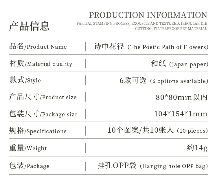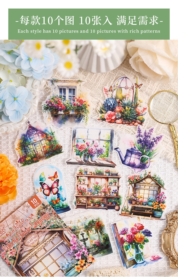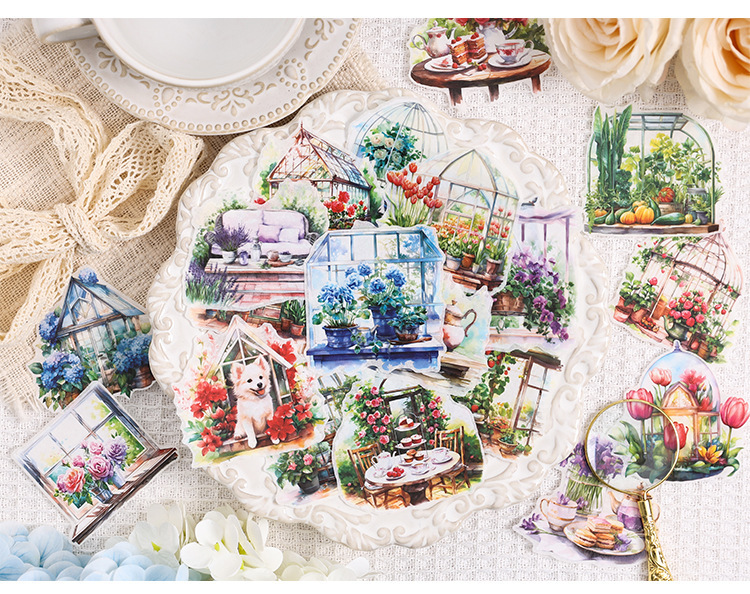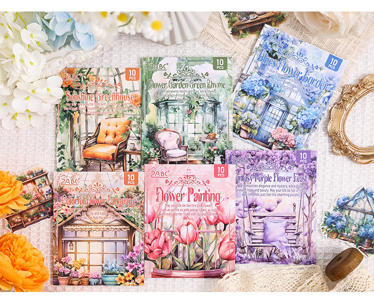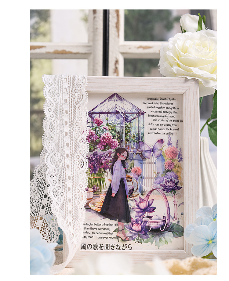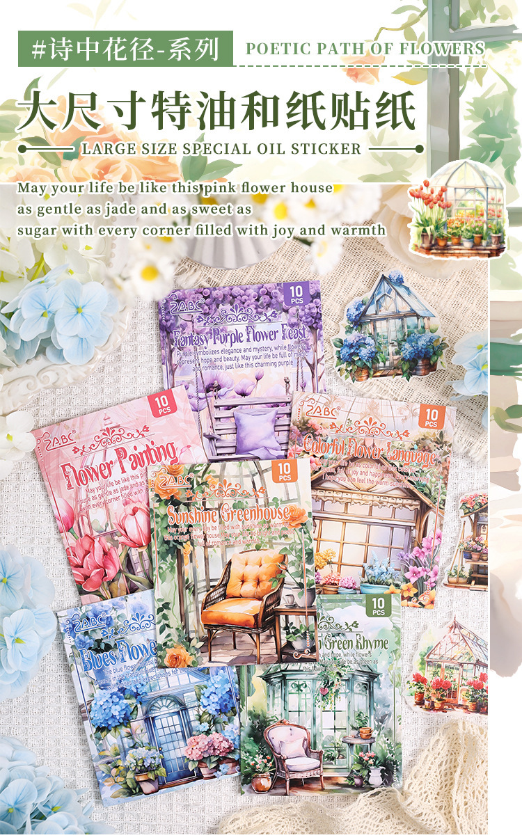 Poesía en el camino de la flor jardín especial aceite pegatinas de cuentas de mano paquete diy diario de cuentas de mano y pegatinas de papel pegatinas de viento pastoral transfronterizo