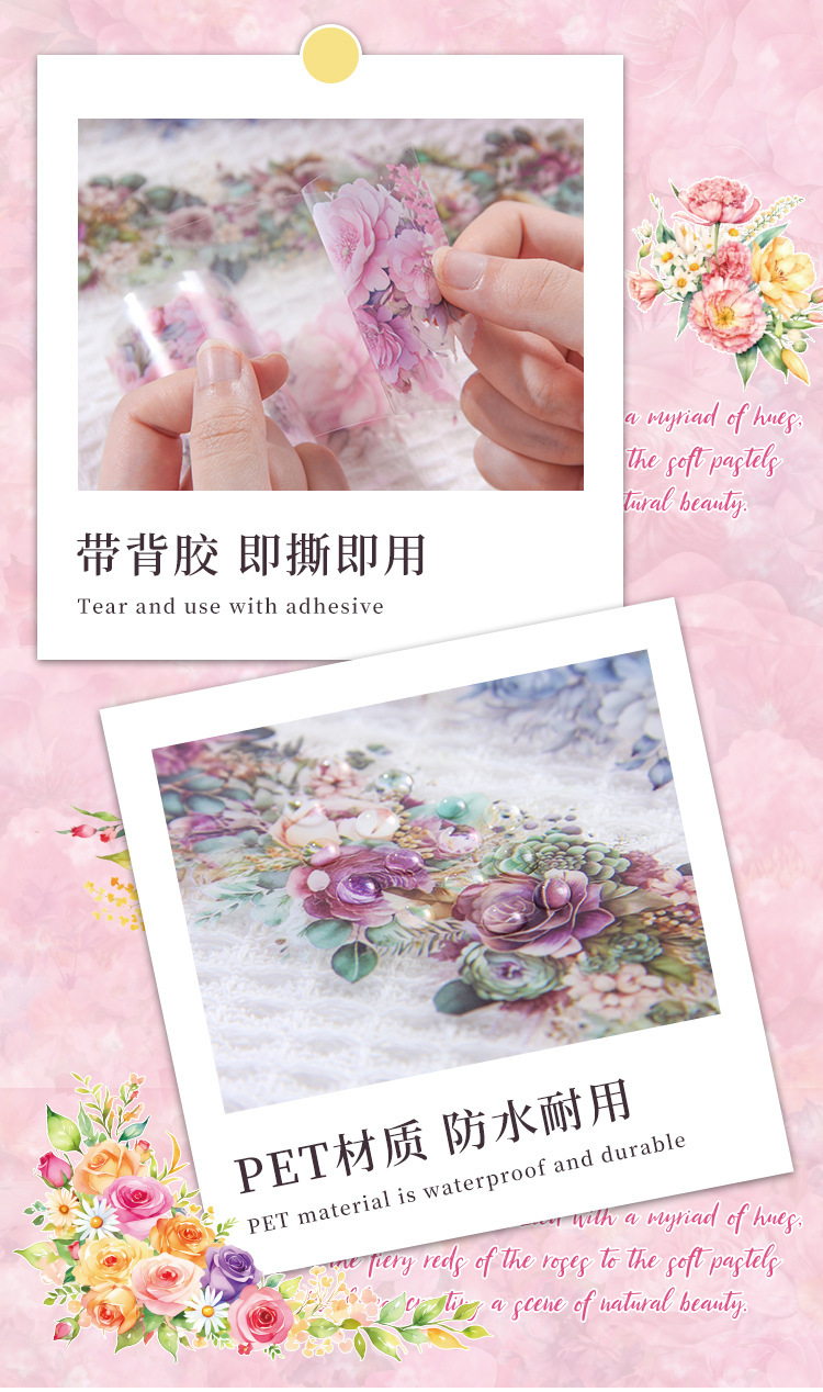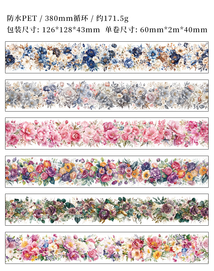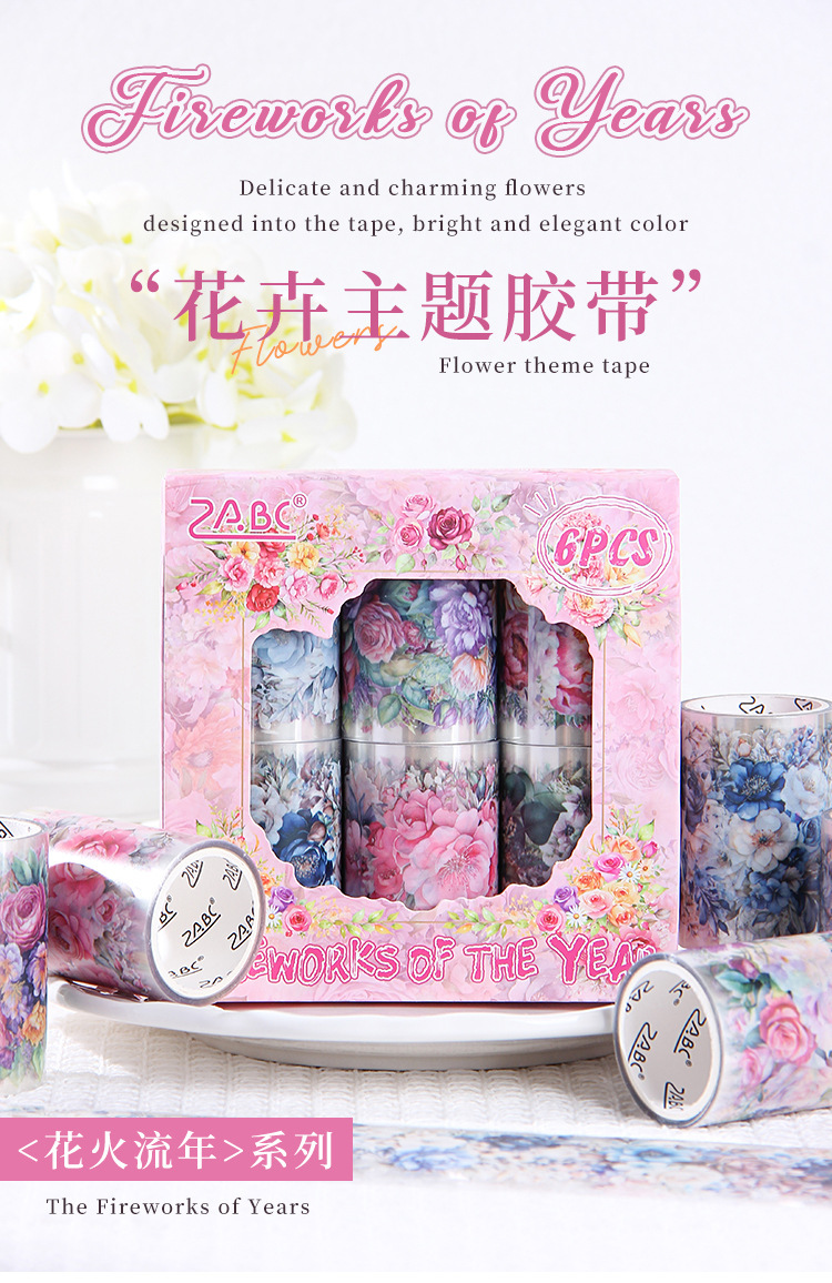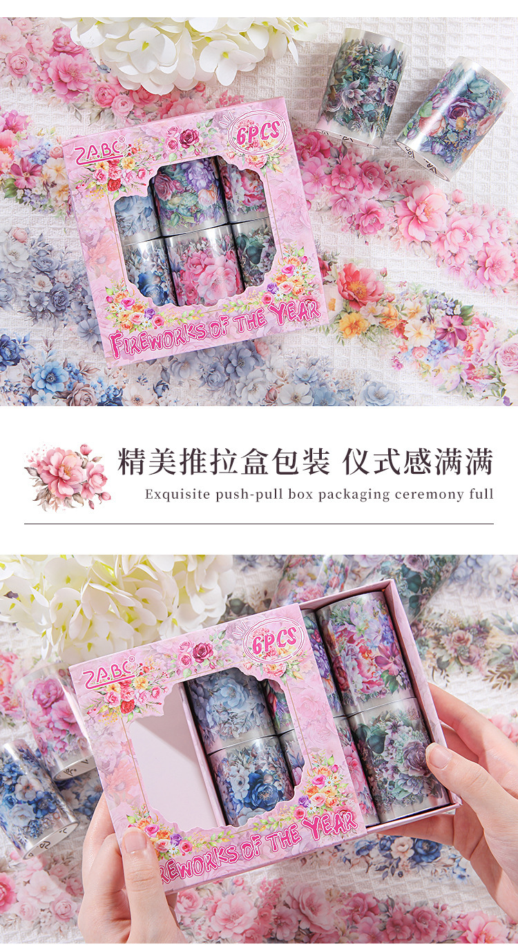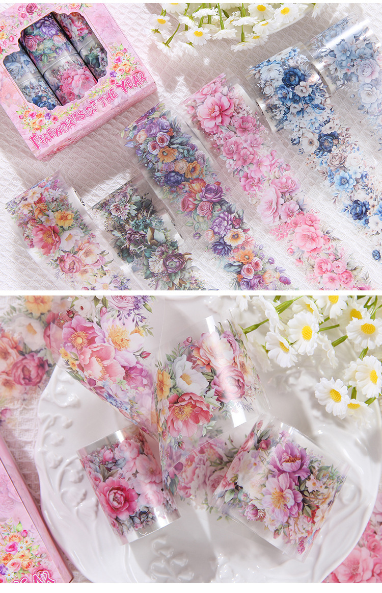 Fuegos artificiales años transparentes a prueba de agua pet cinta adhesiva caja diy diario de contabilidad pegatinas paisajísticas pegatinas de contabilidad de flores retro