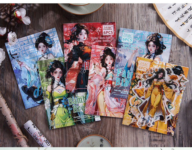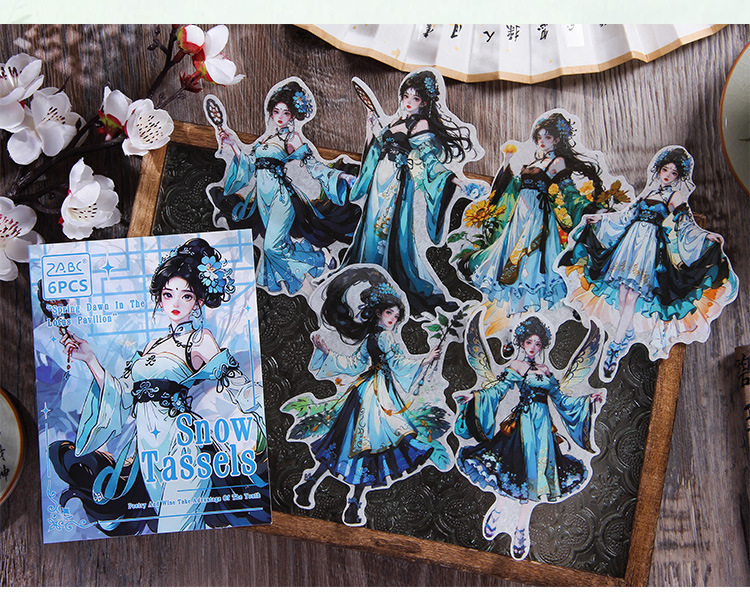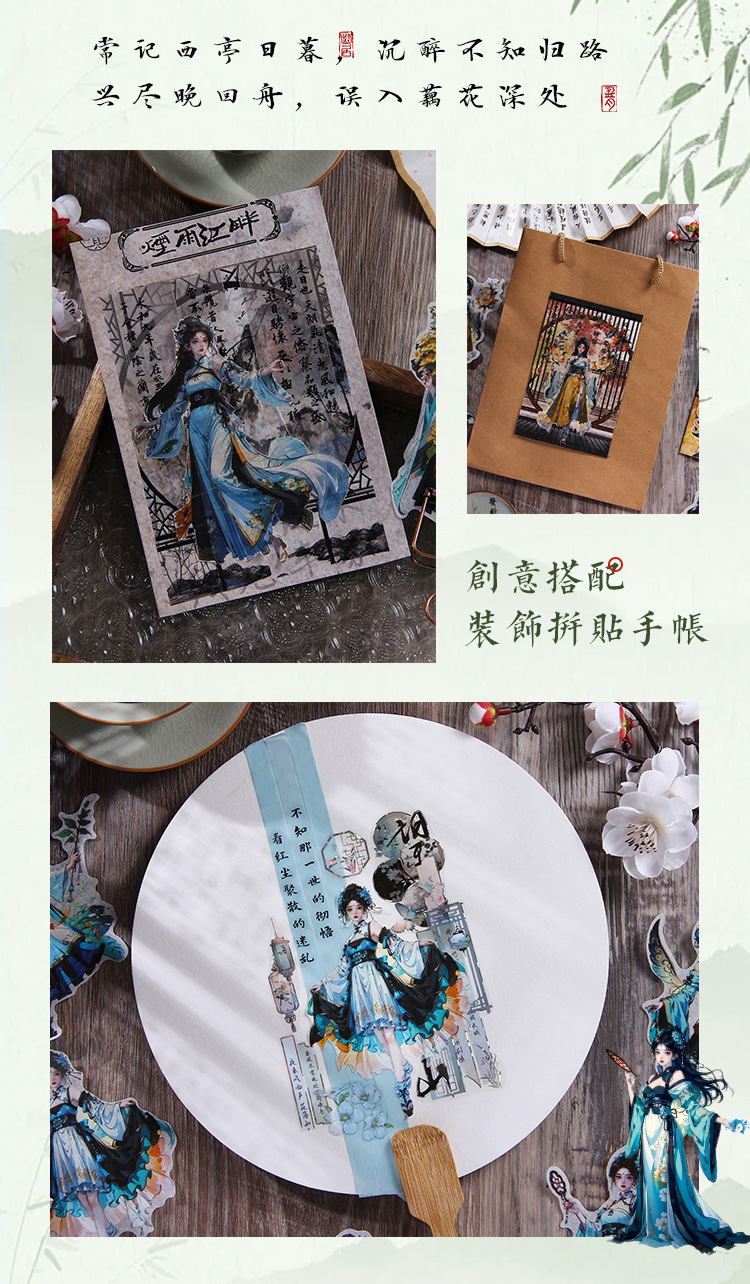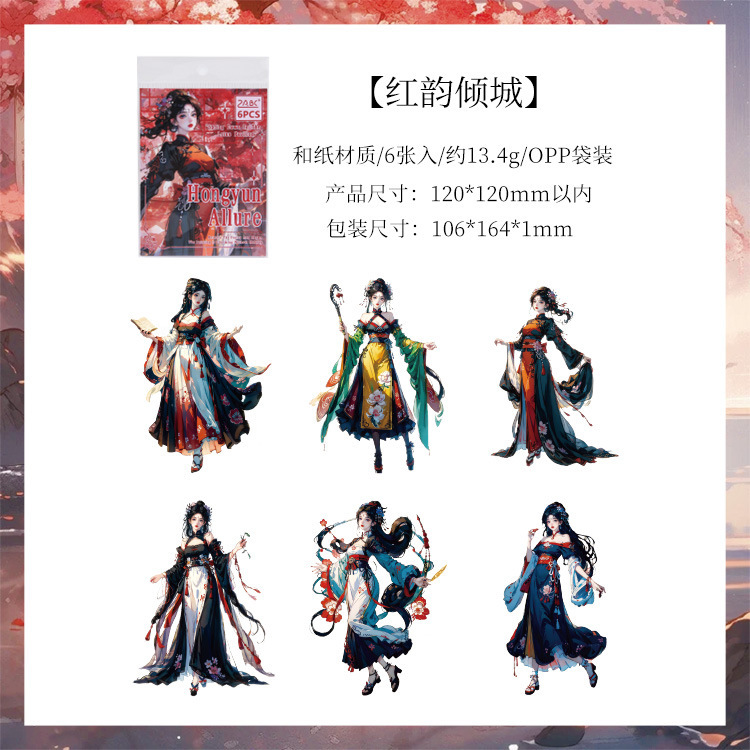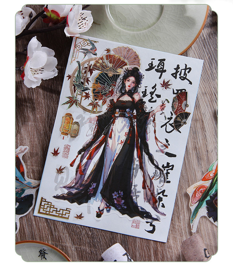 Cuya pluma Huashang pegatinas especiales de aceite di diario de mano pegatinas decorativas estilo nacional de trajes antiguos y pegatinas de papel
