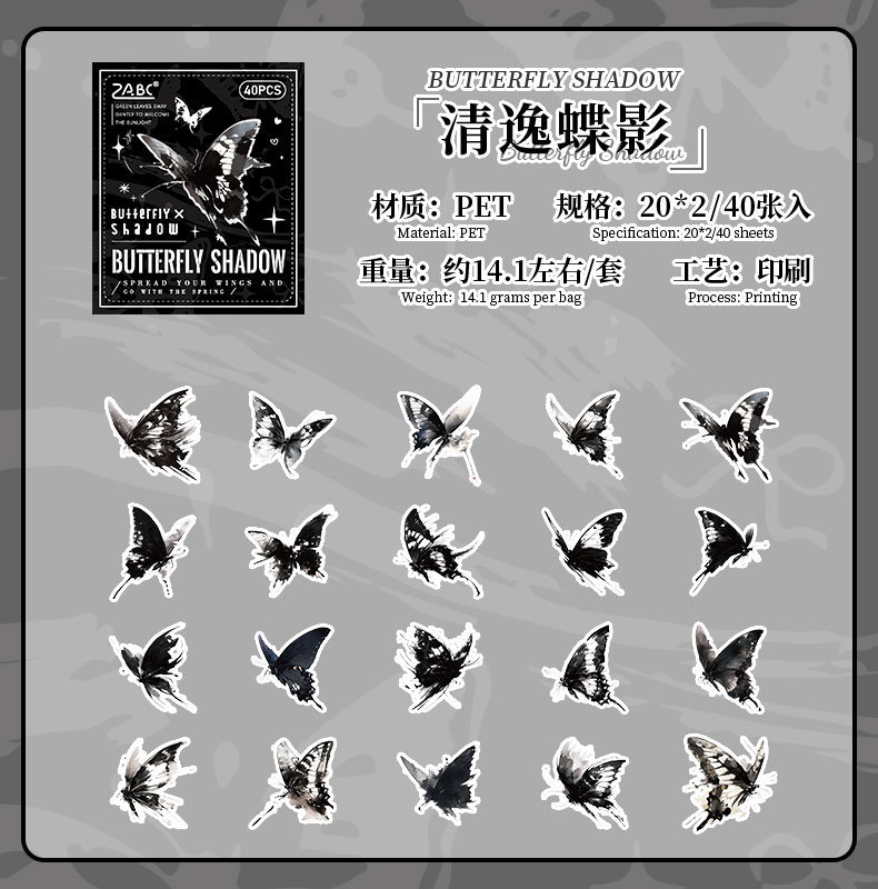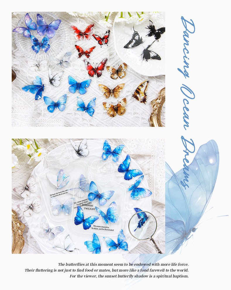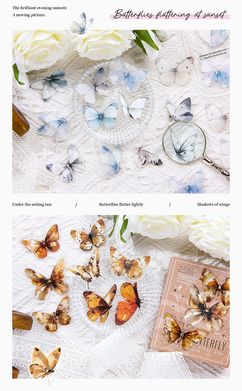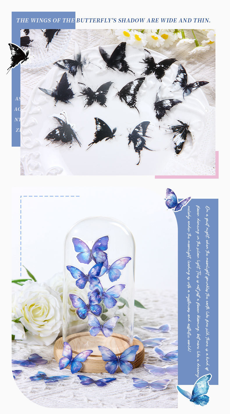 tinta sombra de mariposa transparente impermeable pet caja pegatinas diy diario pegatinas retro mariposa pegatinas de animales