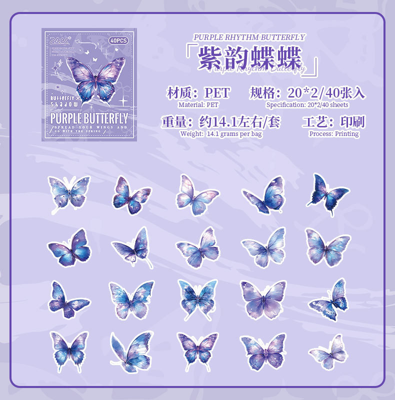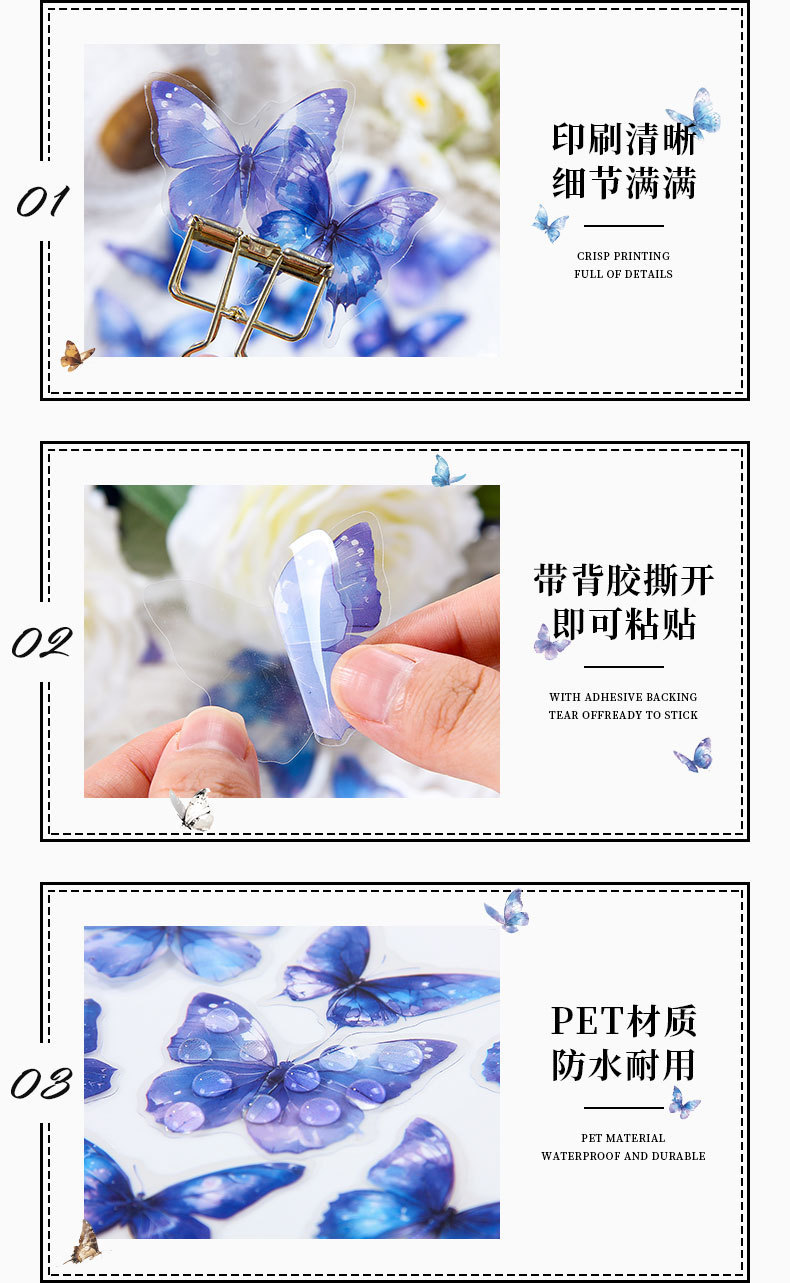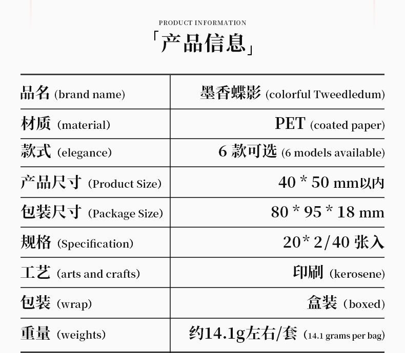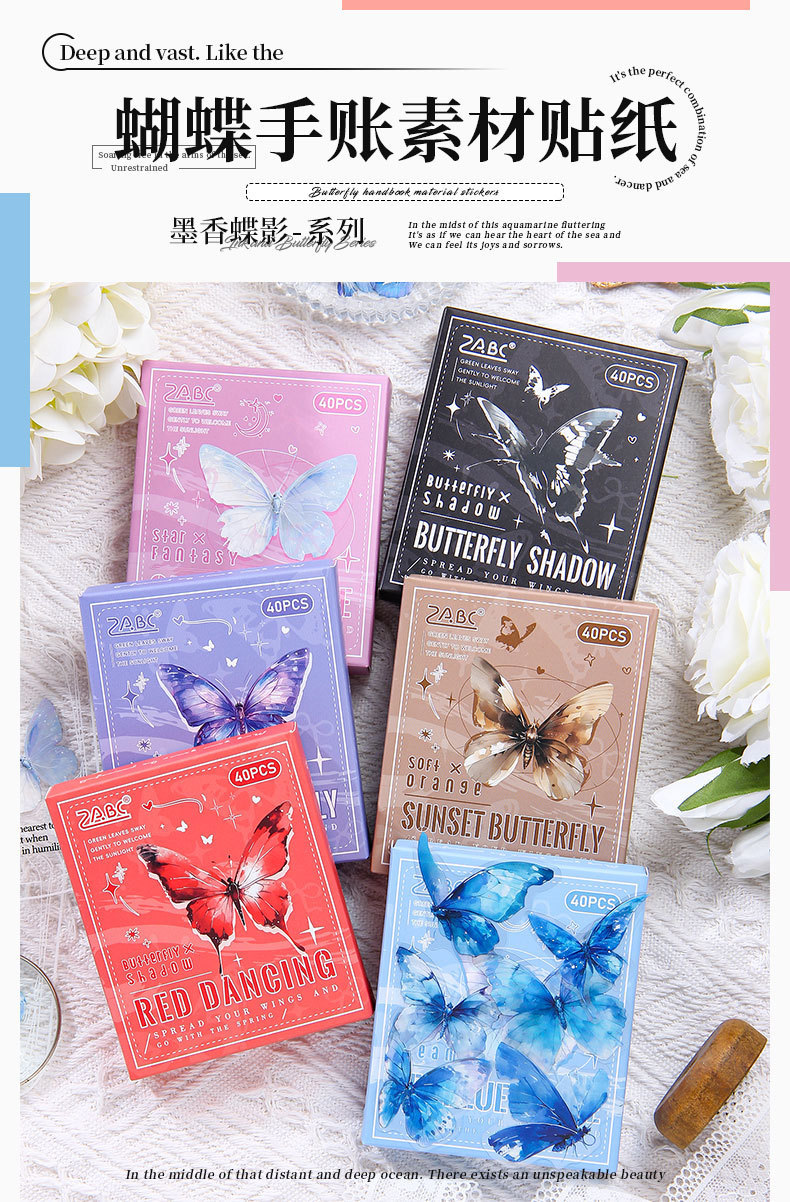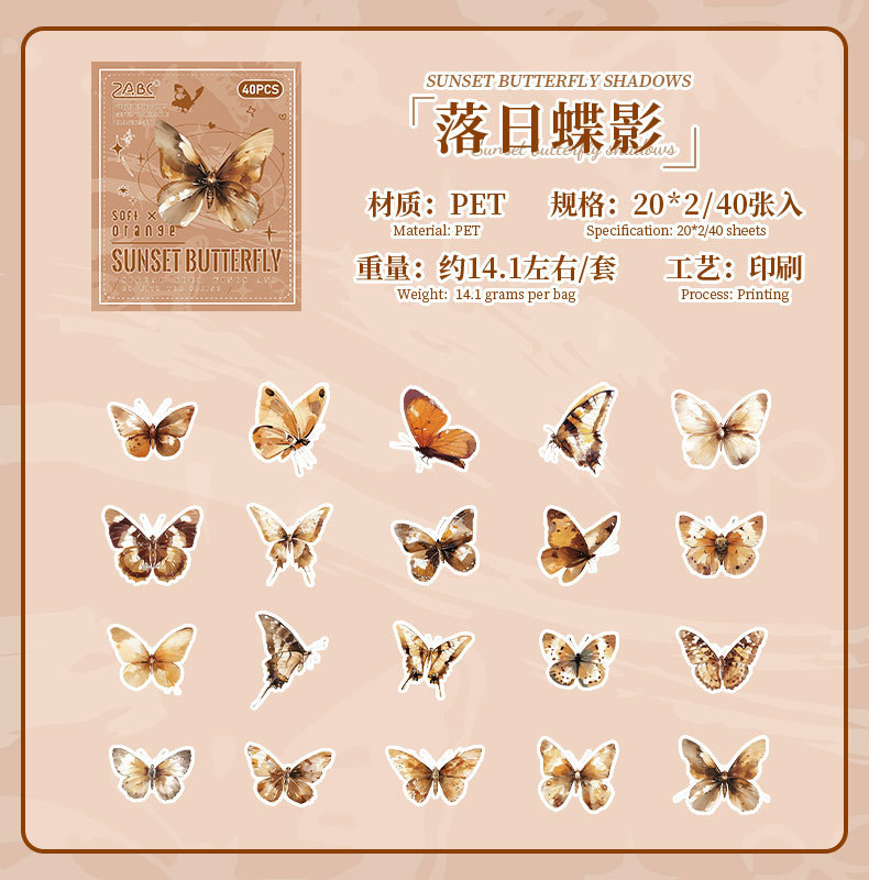 tinta sombra de mariposa transparente impermeable pet caja pegatinas diy diario pegatinas retro mariposa pegatinas de animales