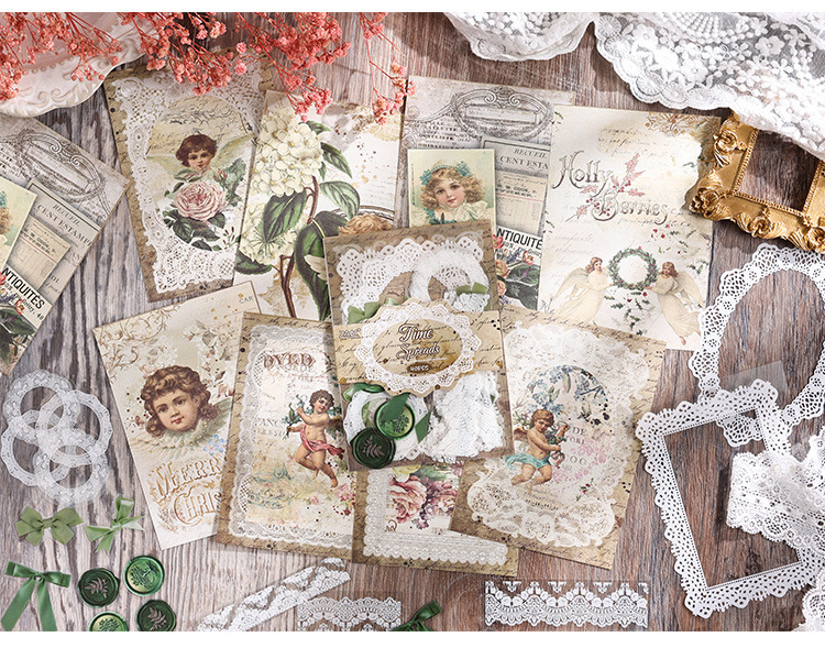 Retro estilo no adhesivo material papel diy diario pegatinas retro encaje decoración pegatinas de marco de fotos