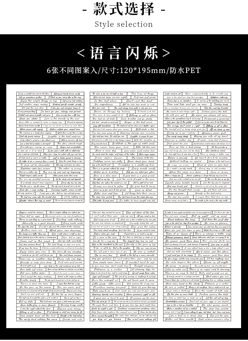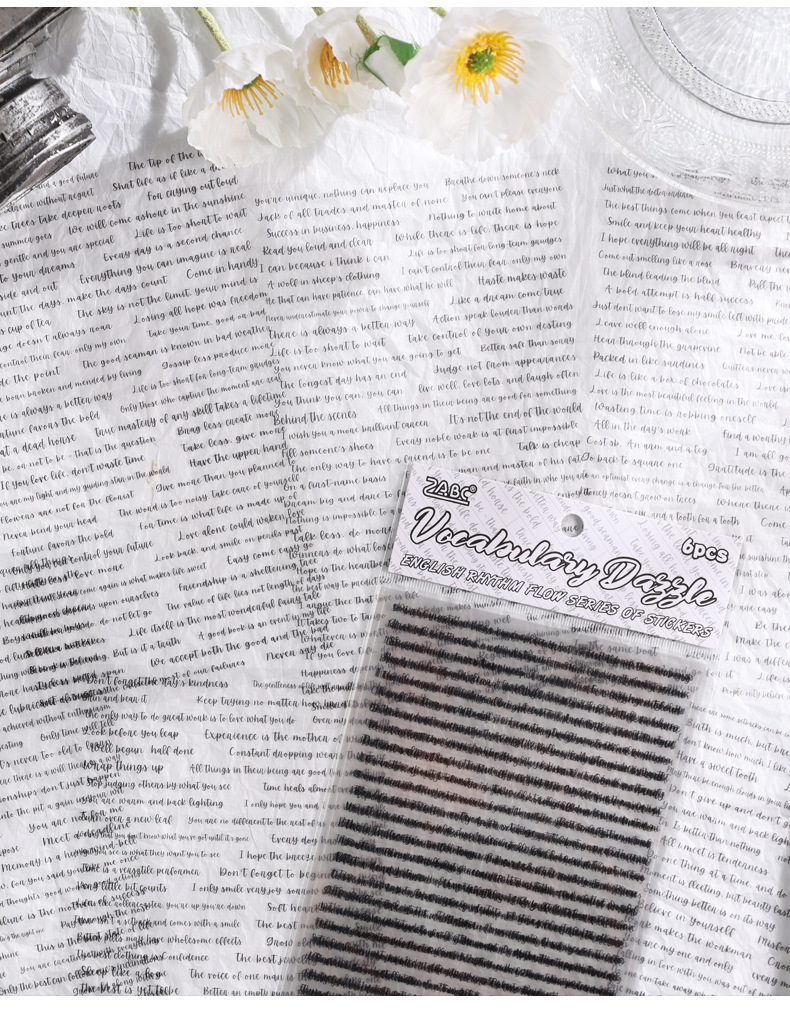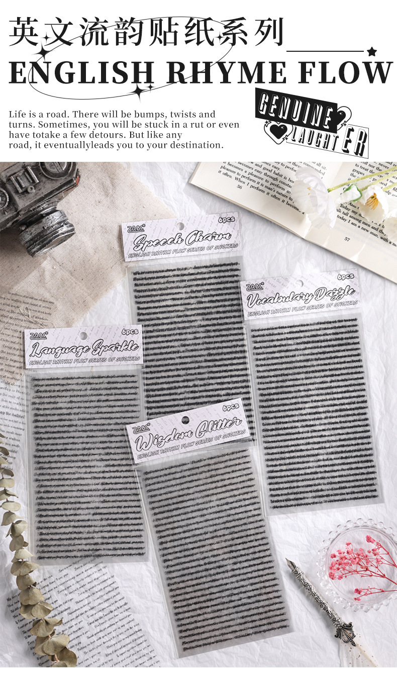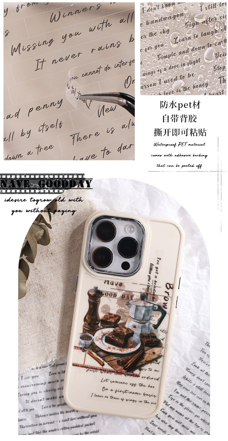 Inglés rima transparente pegatinas de mascotas impermeables diy diario decoración material base pegatinas de frases transfronterizas en inglés