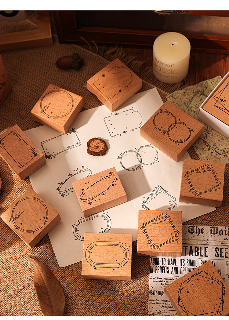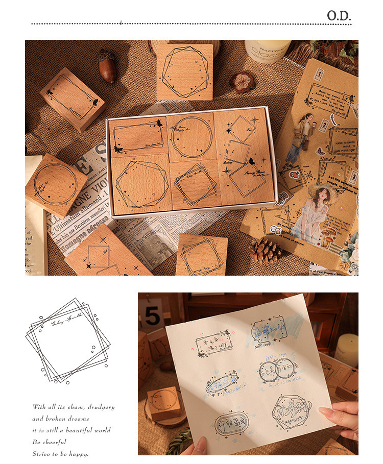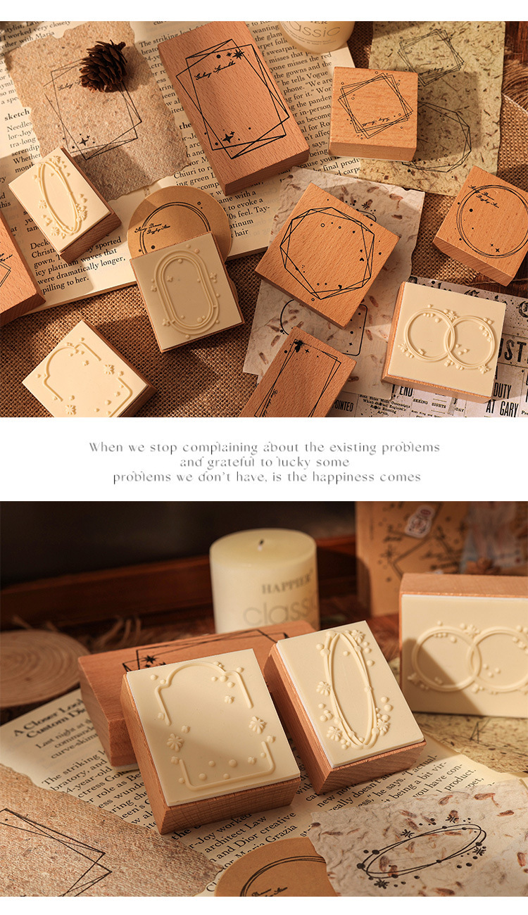 1000 mil marcas de tinta caja de sello de madera marco retro transfronterizo sello de cuenta de mano sello de madera caja de mensajes sello decorativo