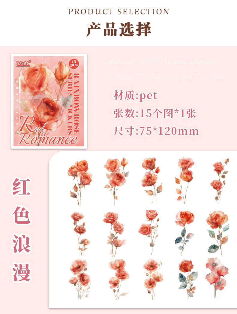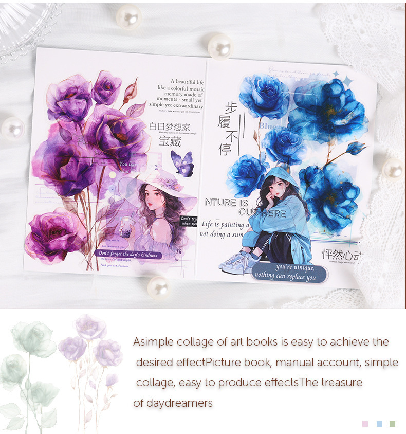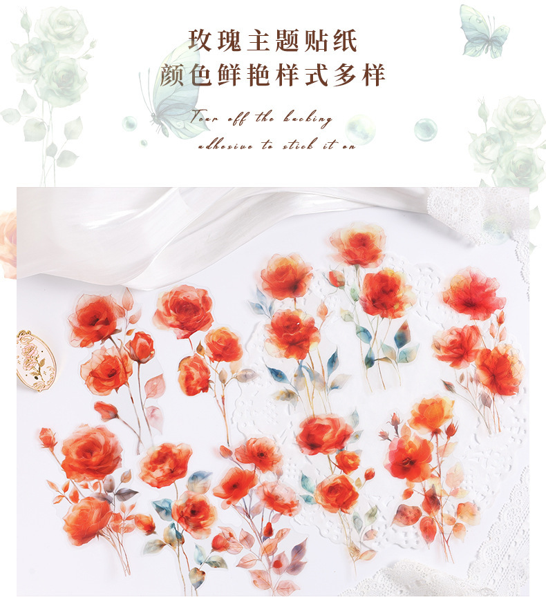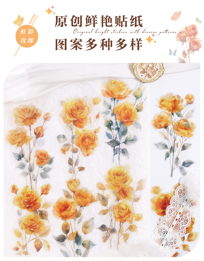 Rosas iris transparentes pegatinas impermeables para mascotas bolsas diy diario pegatinas transparentes rosas pegatinas florales