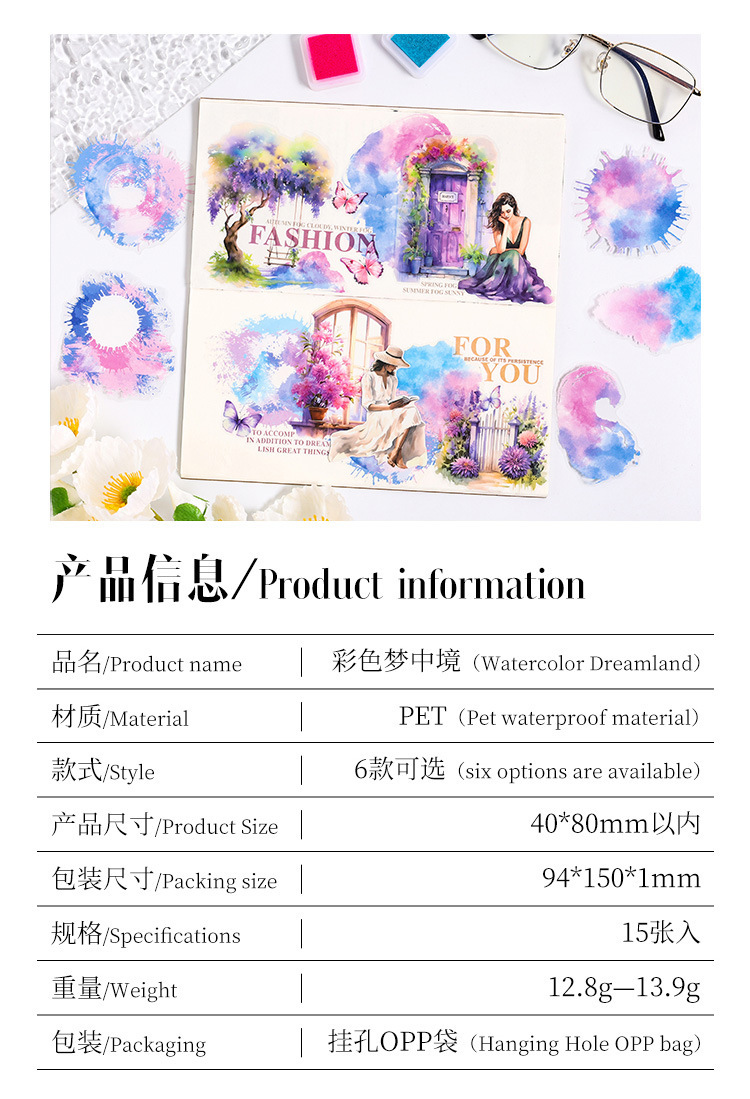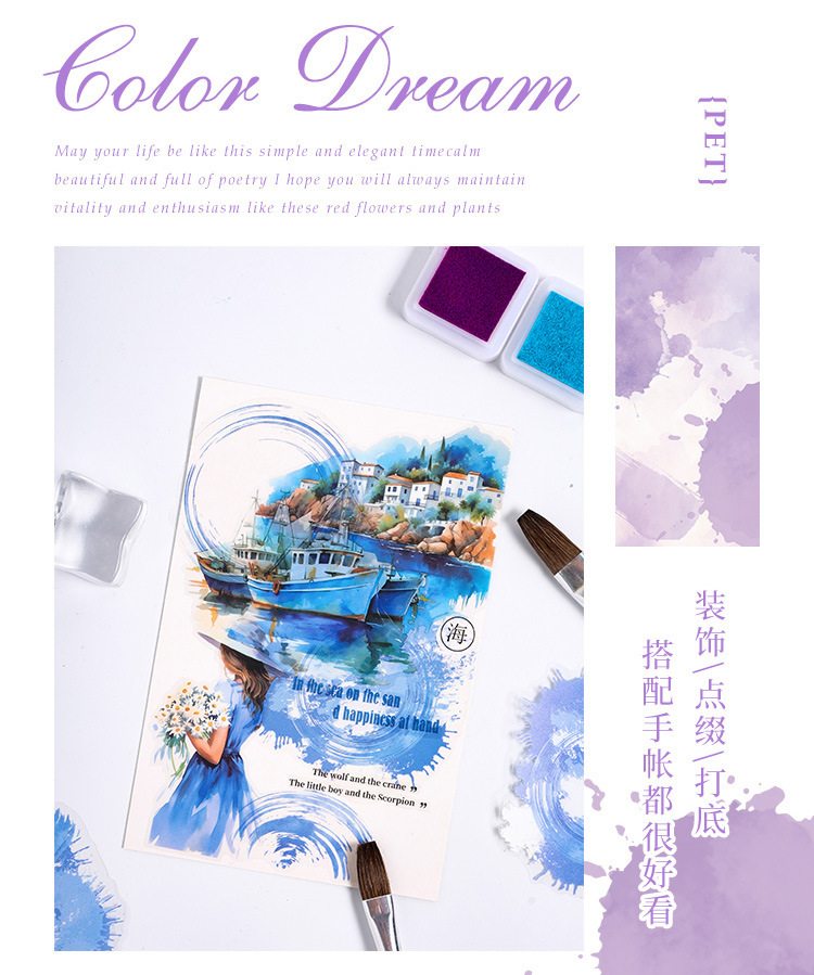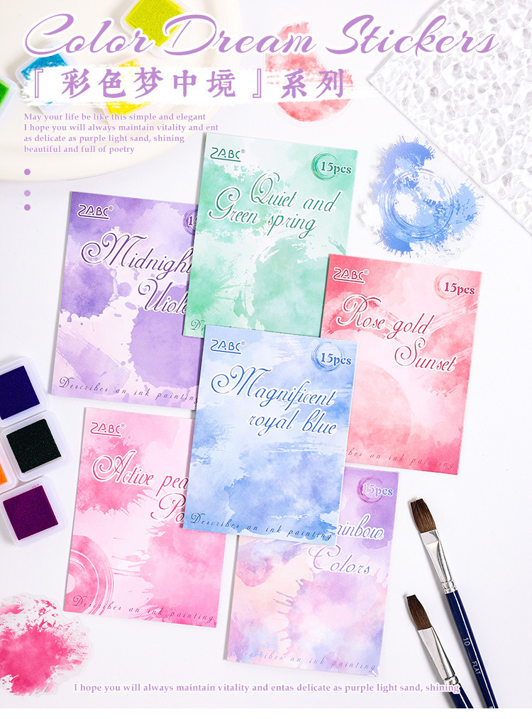 Colorido sueño transparente pegatinas impermeables para mascotas bolsas diy diario de mano pegatinas paisajísticas pegatinas de tinta