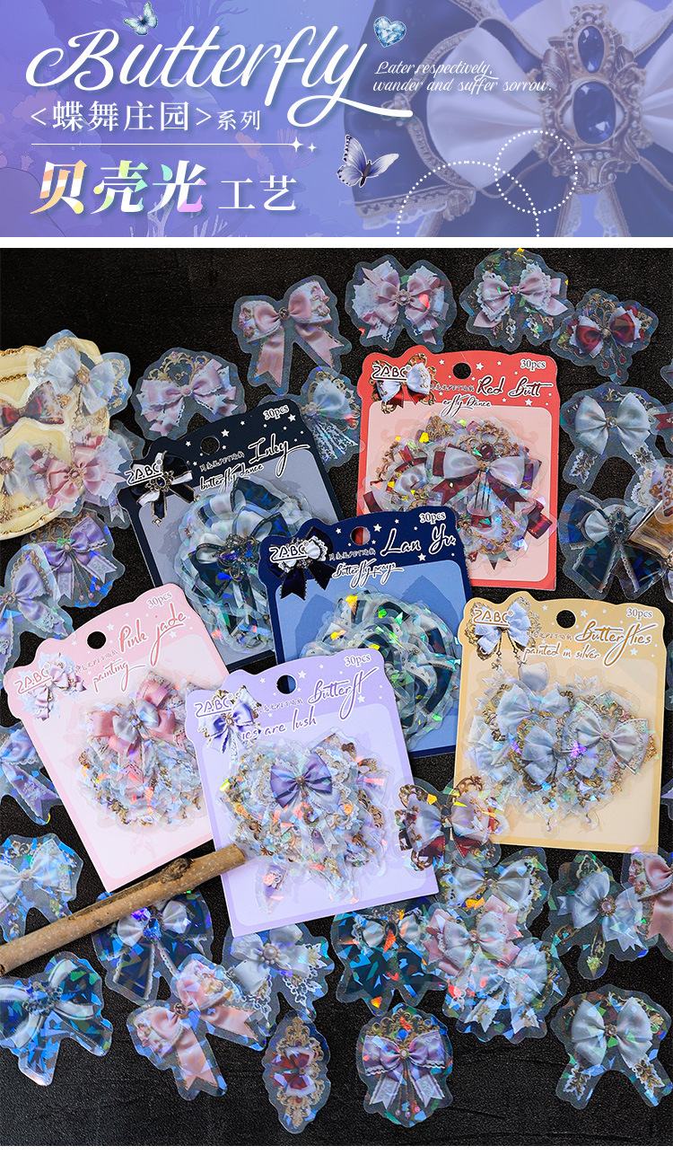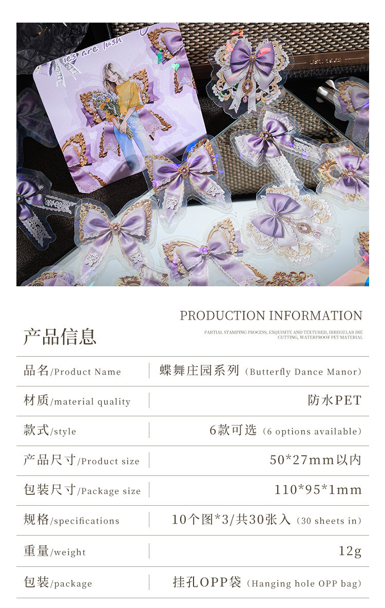 Butterfly Dancing Manor Laser Bow Stickers Bag DIY Diary Stickers Transparente Resistente al agua Pet Bow Stickers