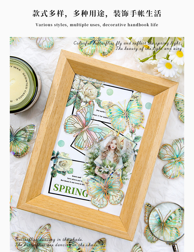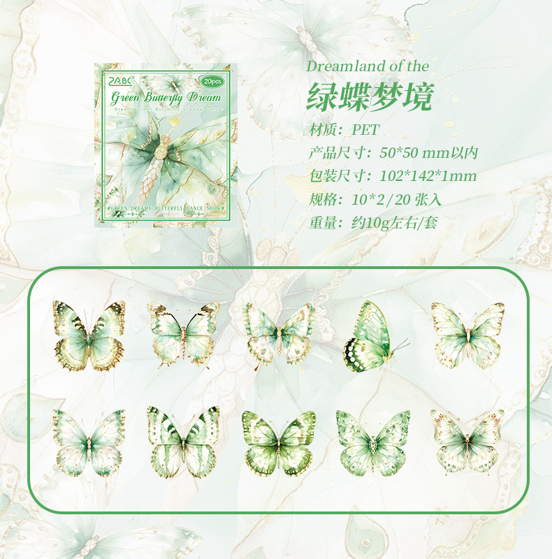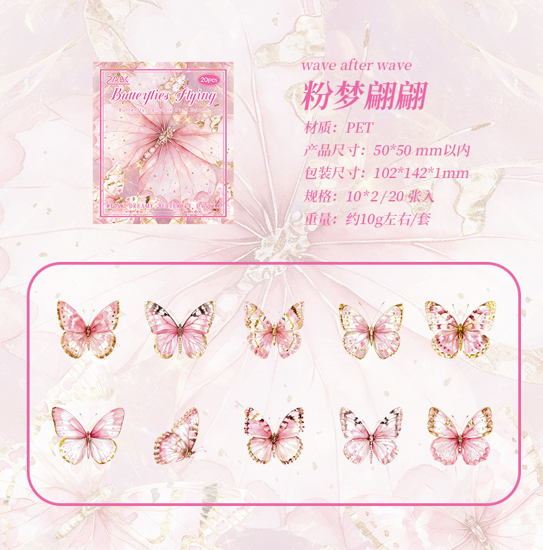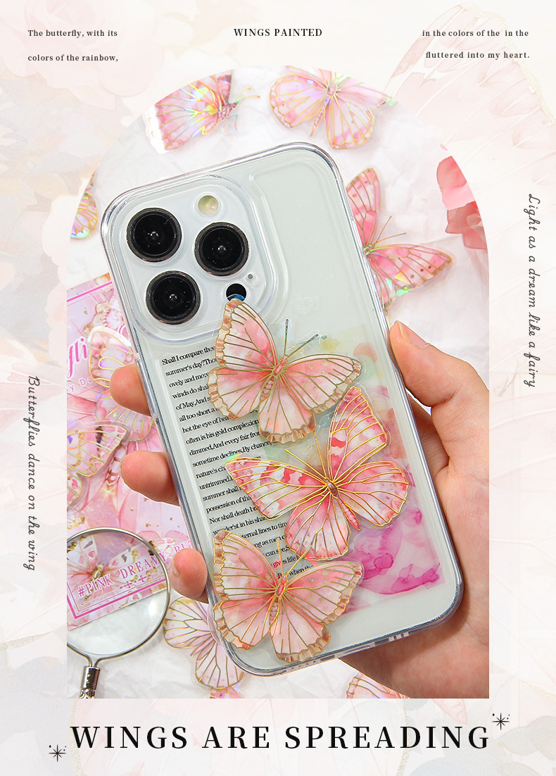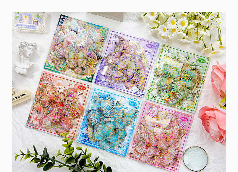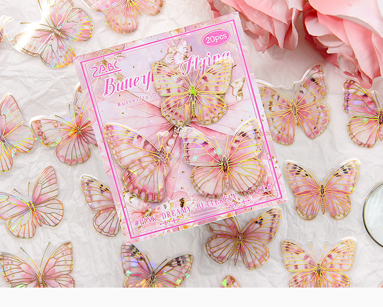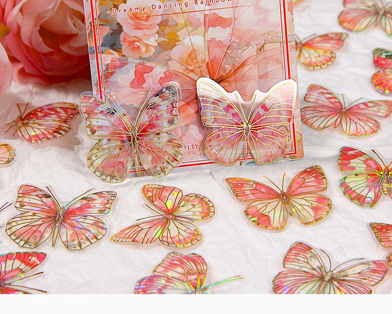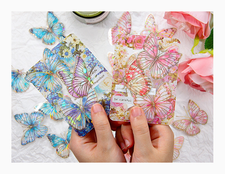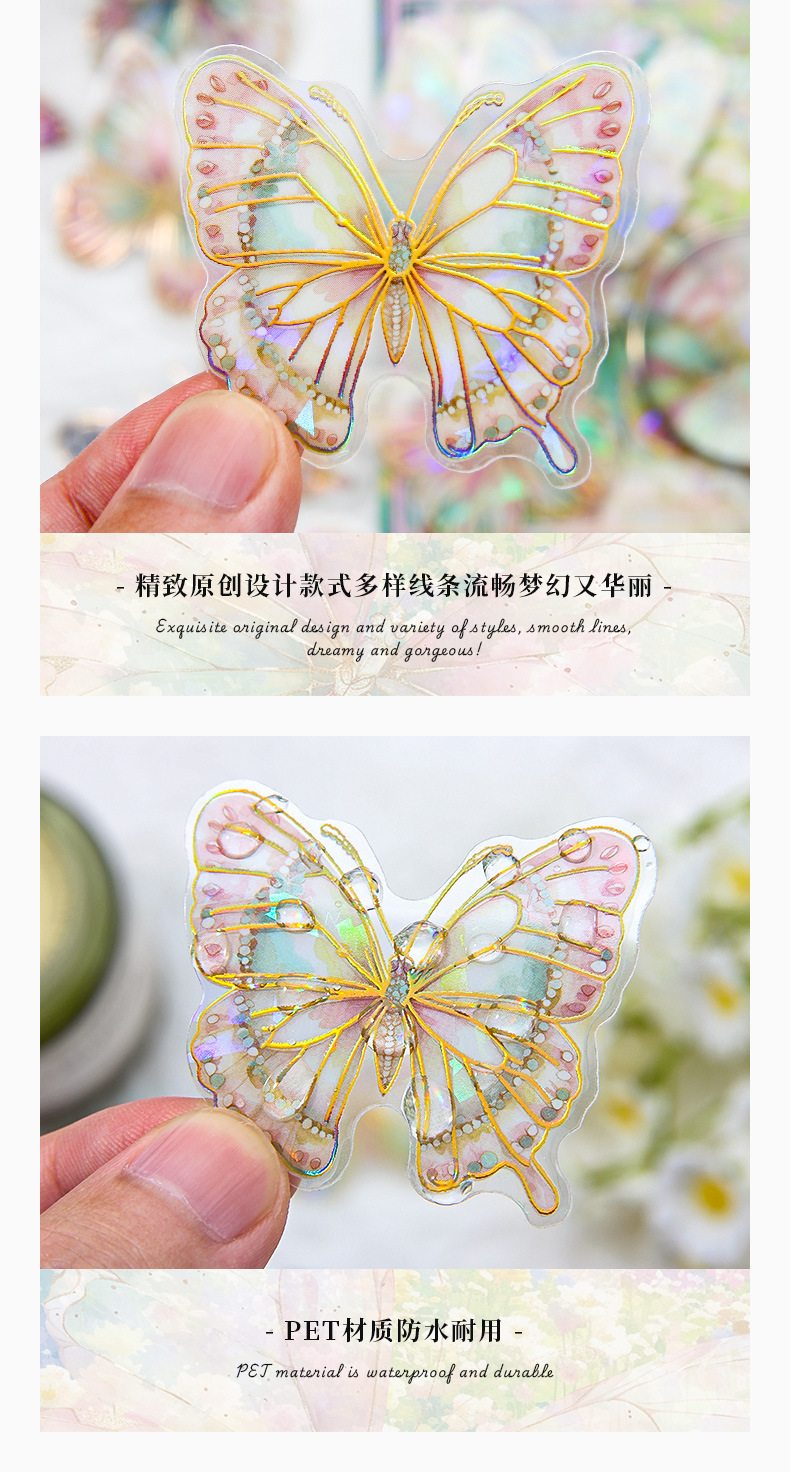 Dream Butterfly Shadow Dance Laser estampado pegatinas paquetes transparentes impermeables pegatinas de mano pet pegatinas de mariposa retro transfronterizas