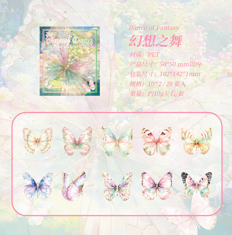 | Color | 1 sueño rosa, 2 baile de fantasía, 3 sombra de baile de mariposa roja, 4 mariposa azul de ensueño, 5 sueño de mariposa verde, 6 sombra de sueño púrpura |