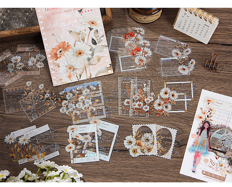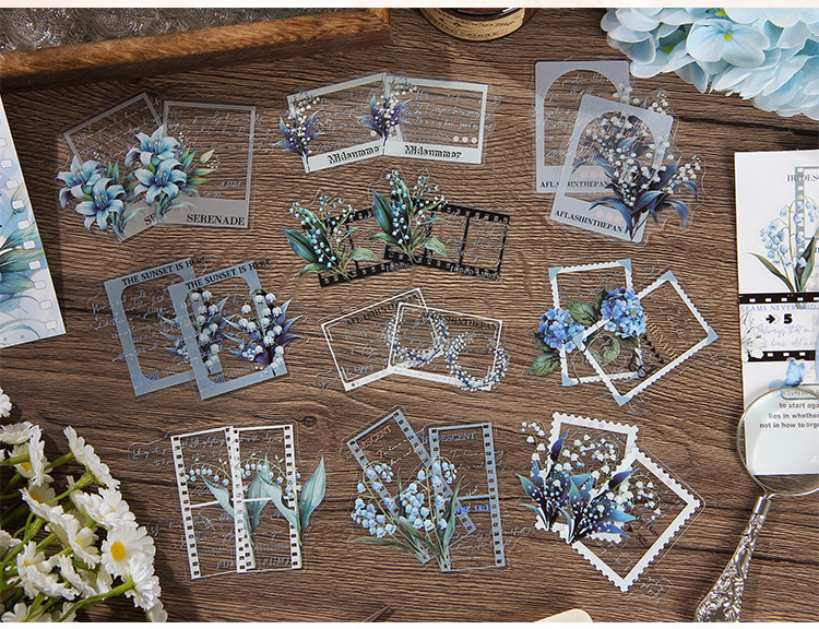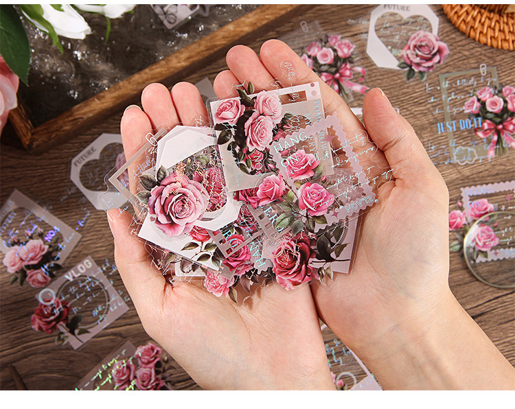 Patrón simple eje láser etiquetado de plata bolsa transparente impermeable mascota etiquetado de cuentas de mano etiquetado de flores de plantas retro transfronterizas