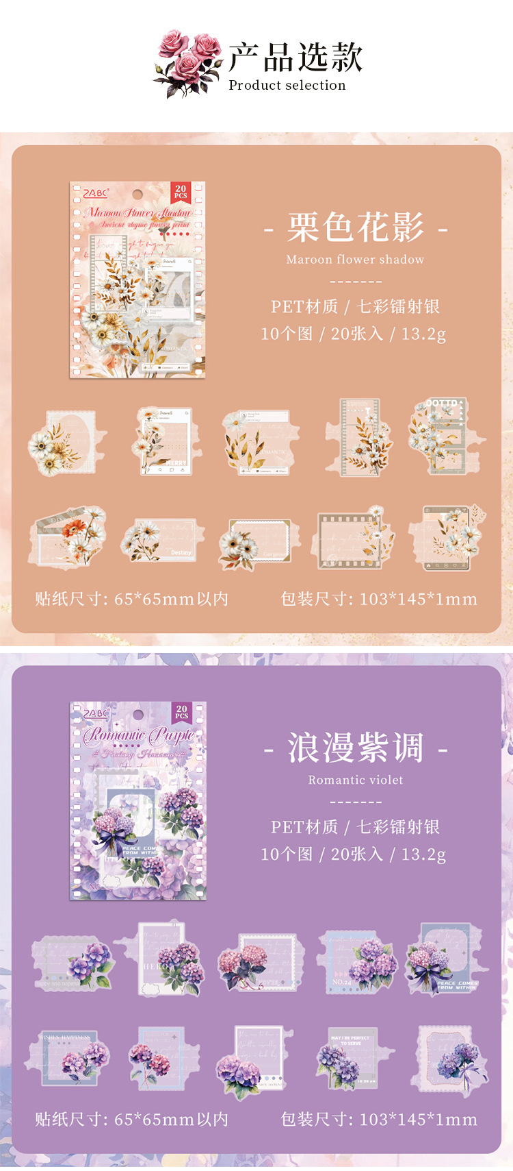 | Color | 1 rollo de sombra de mohui, 2 rollos de flores puras, 3 sombras de flores castañas, 4 rollos de flores qingyou, 5 tonos morados románticos, 6 hermosos paisajes dorados |