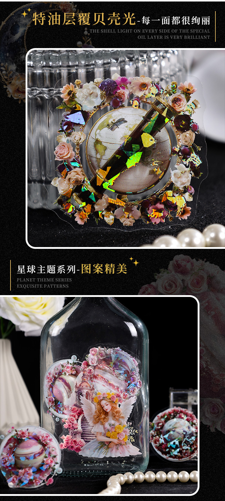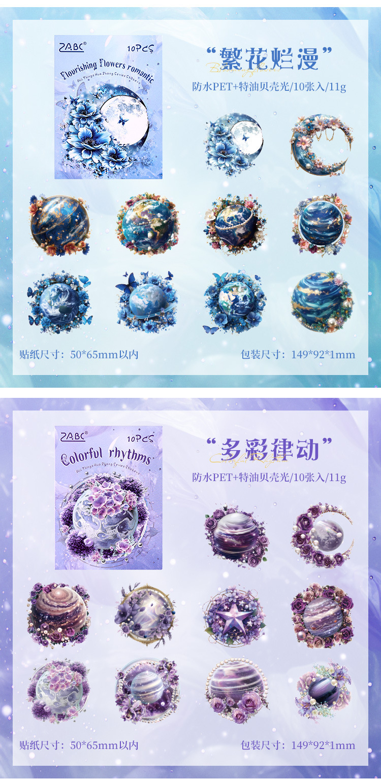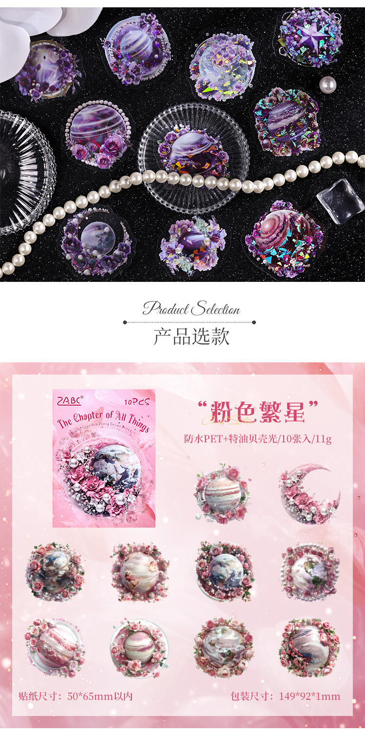 Todo el mundo Huazhang especial aceite láser planetas pegatinas bolsas diy diario pegatinas transparentes pegatinas planetas impermeables