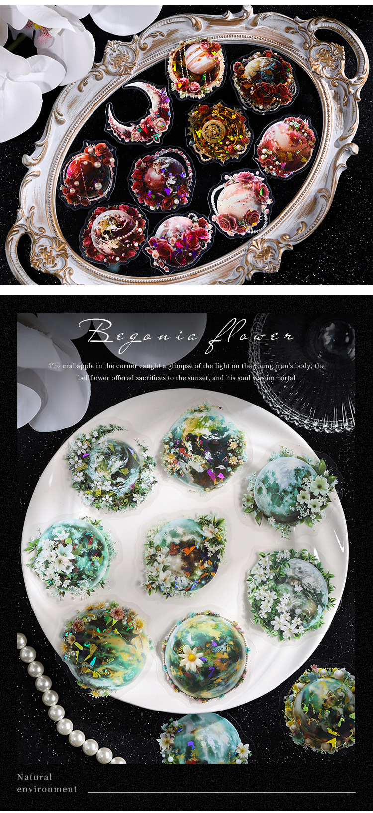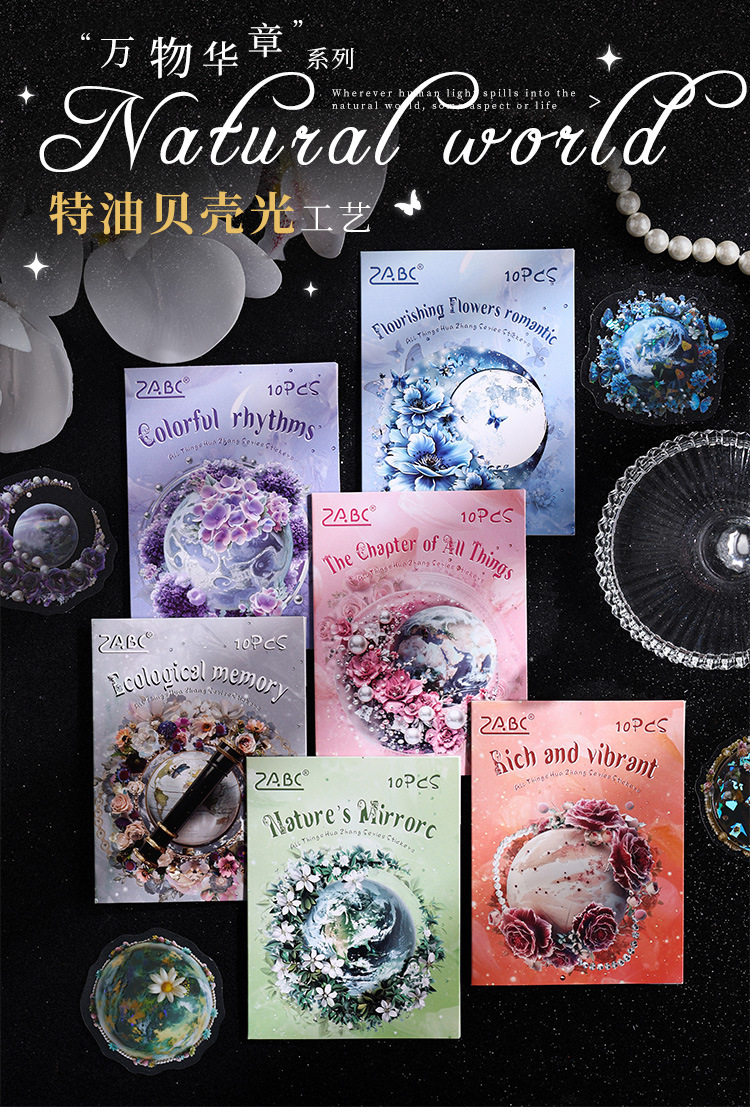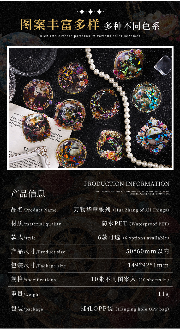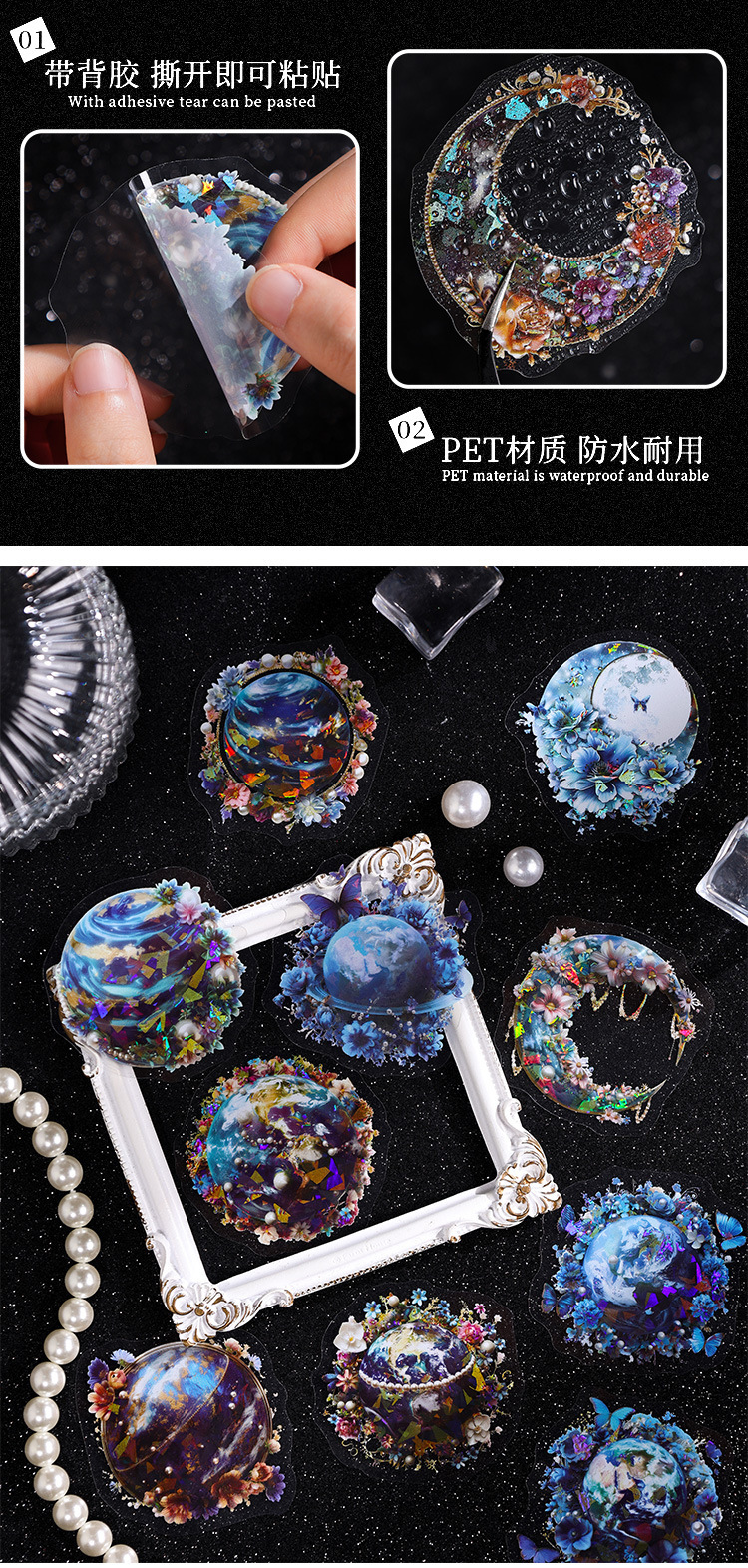 Todo el mundo Huazhang especial aceite láser planetas pegatinas bolsas diy diario pegatinas transparentes pegatinas planetas impermeables