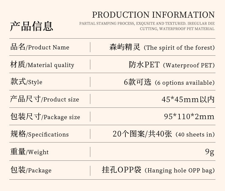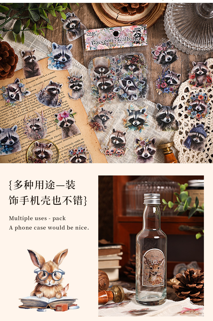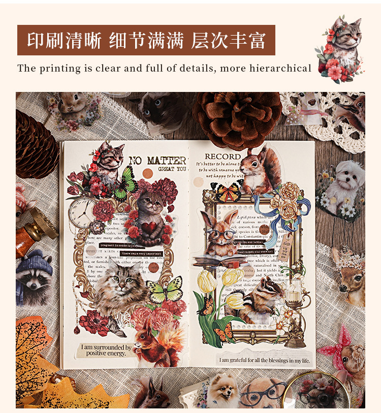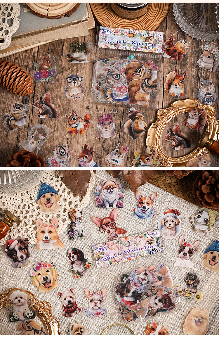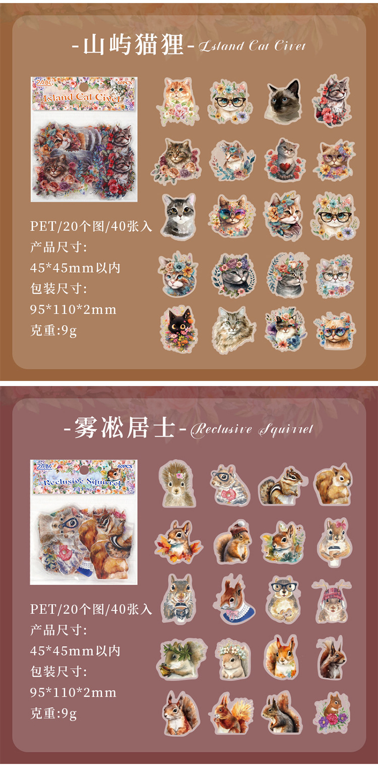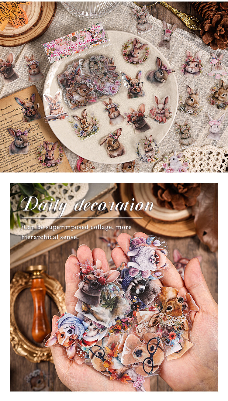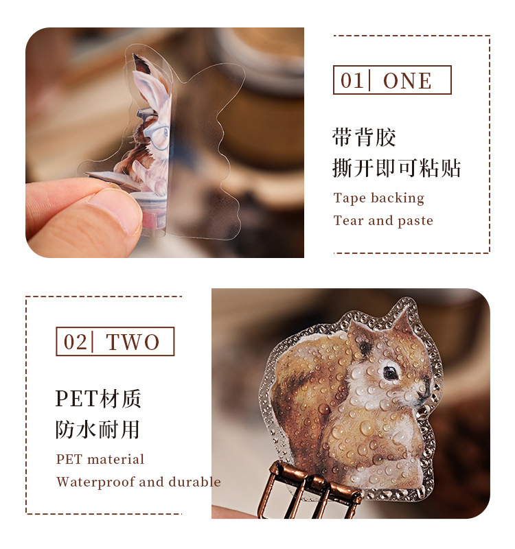 Sen Yue Elf transparente impermeable pet pegatinas bolsas diy diario material de decoración de dibujos animados pegatinas de animales