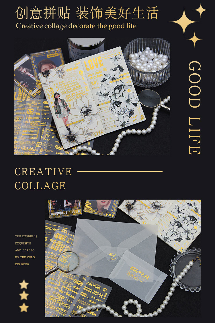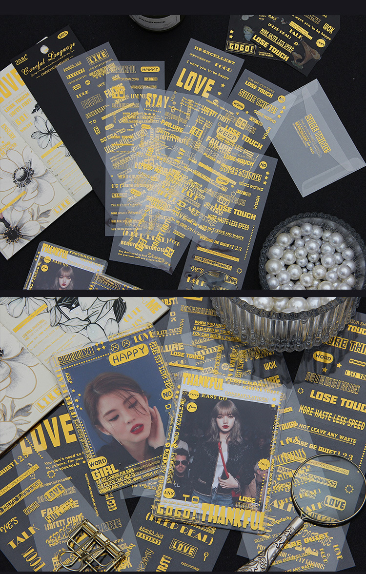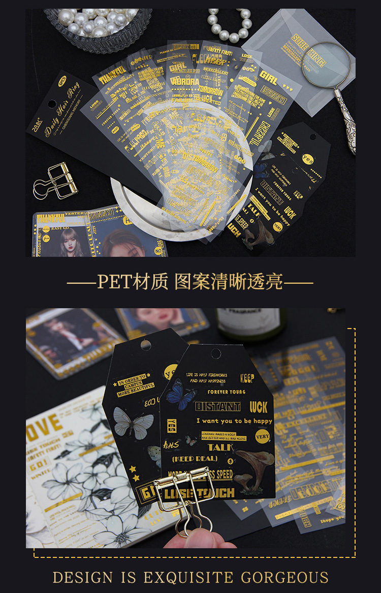 Memoria de la luz de la mañana retro estampado impermeable pet pegatinas de contabilidad creativas letras inglesas palabras populares diarios pegatinas decorativas