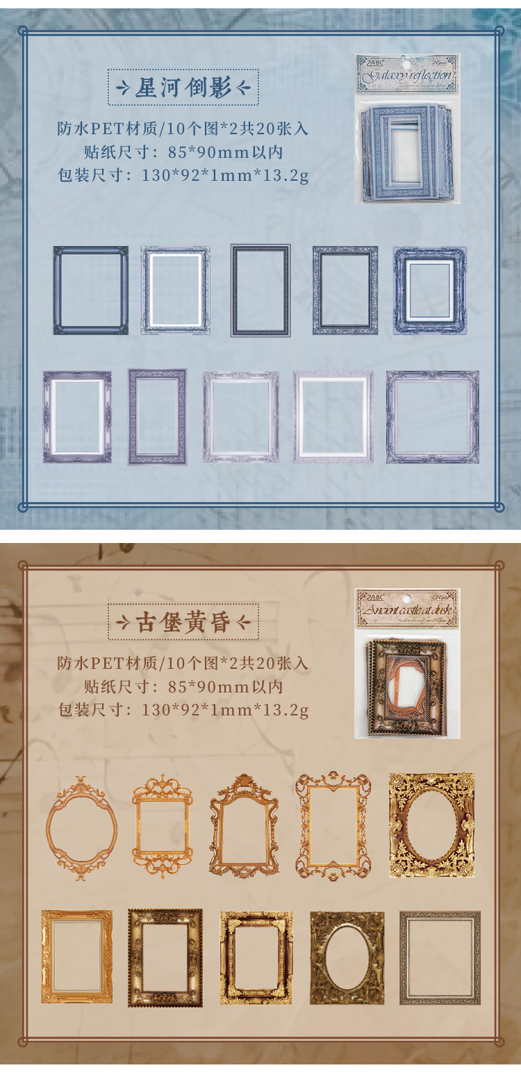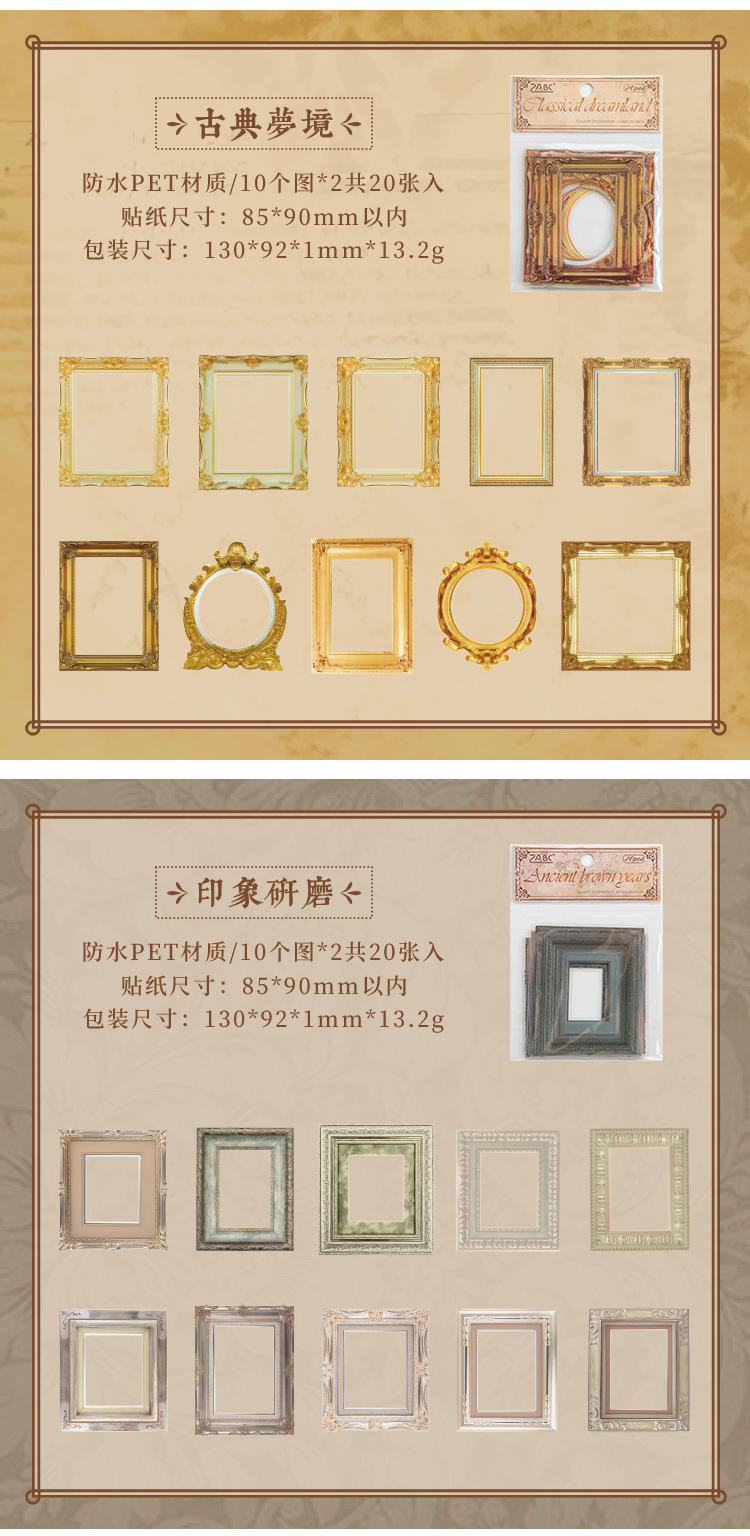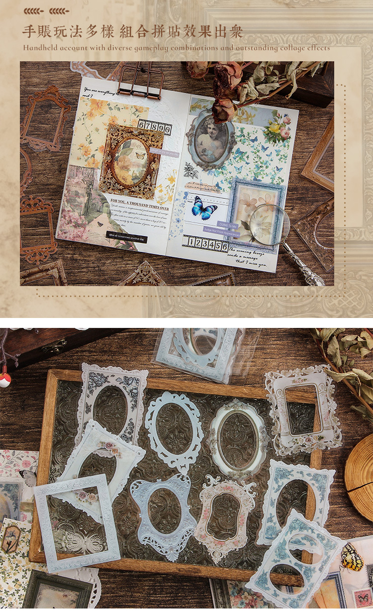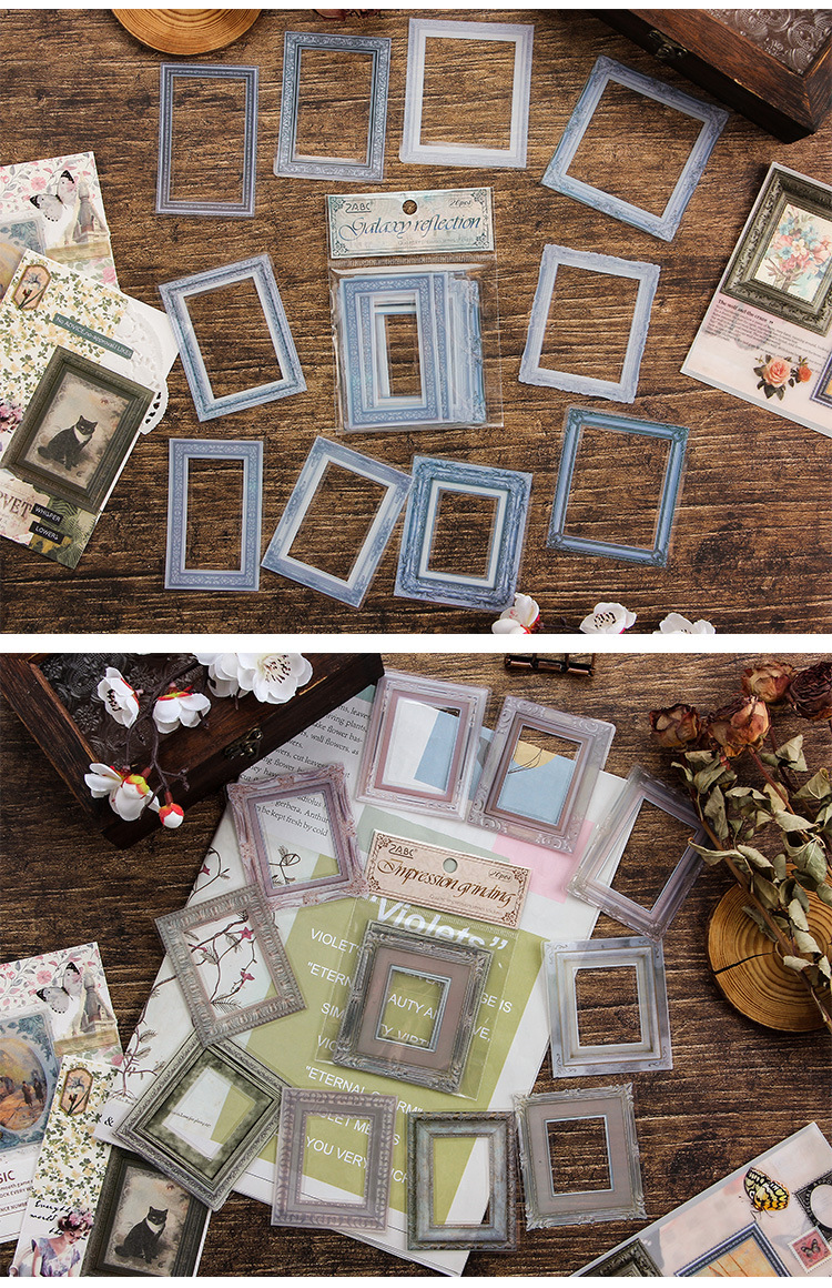 Impresión pintoresca transparente pegatinas de mascotas impermeables paquetes de pegatinas de marco retro transfronterizos álbum de fotos de decoración pegatinas de marco de fotos europeas
