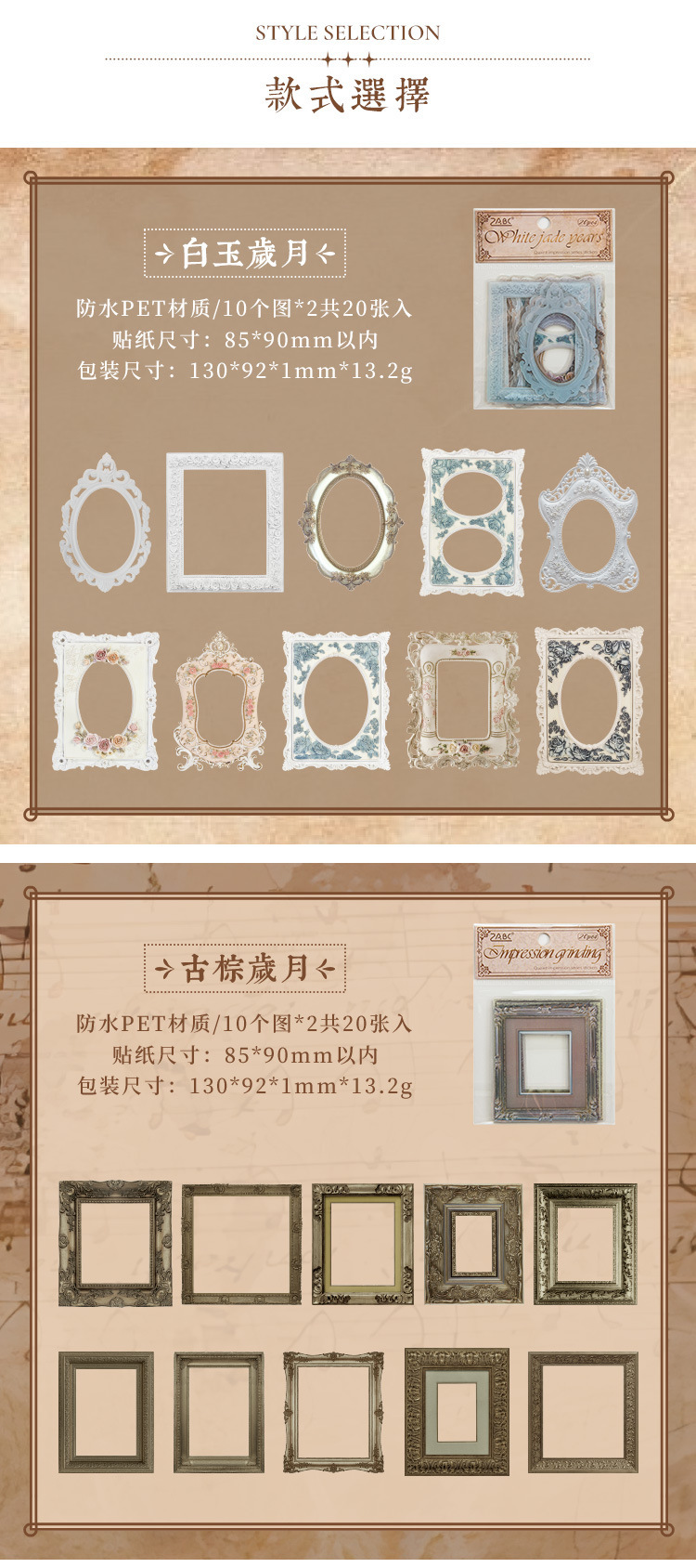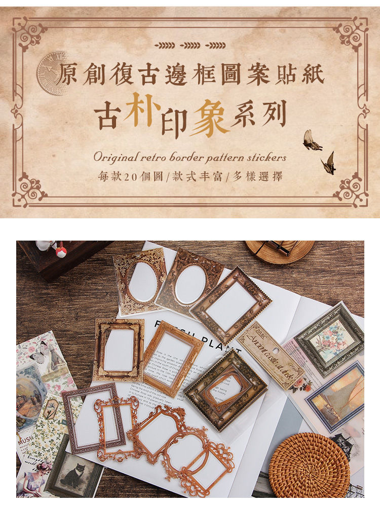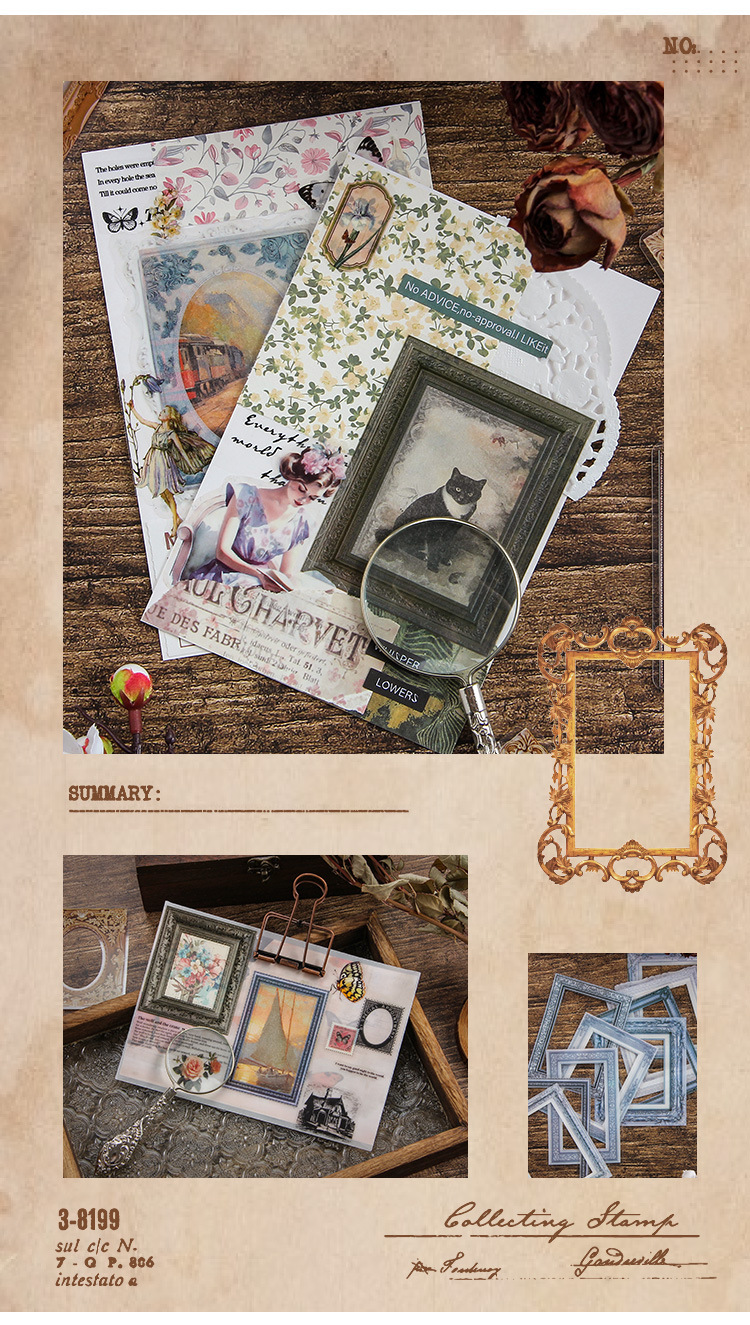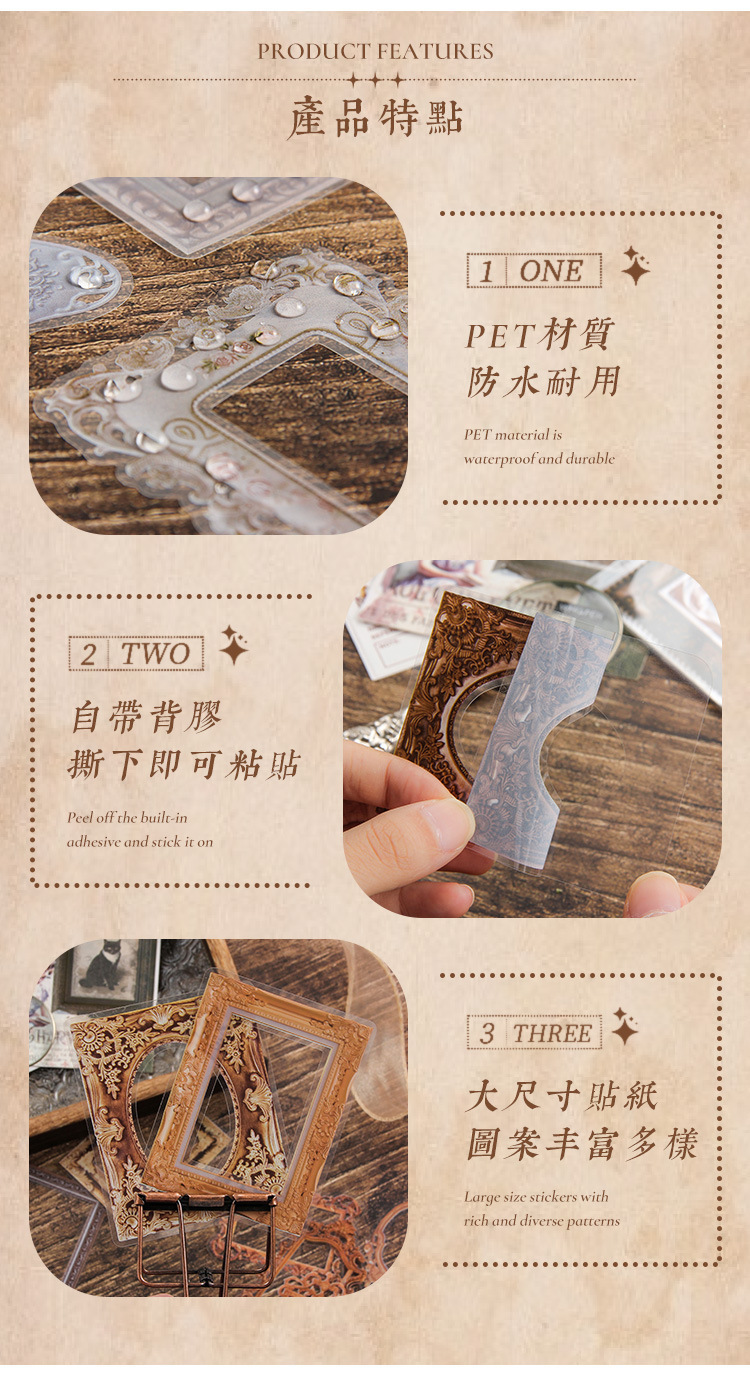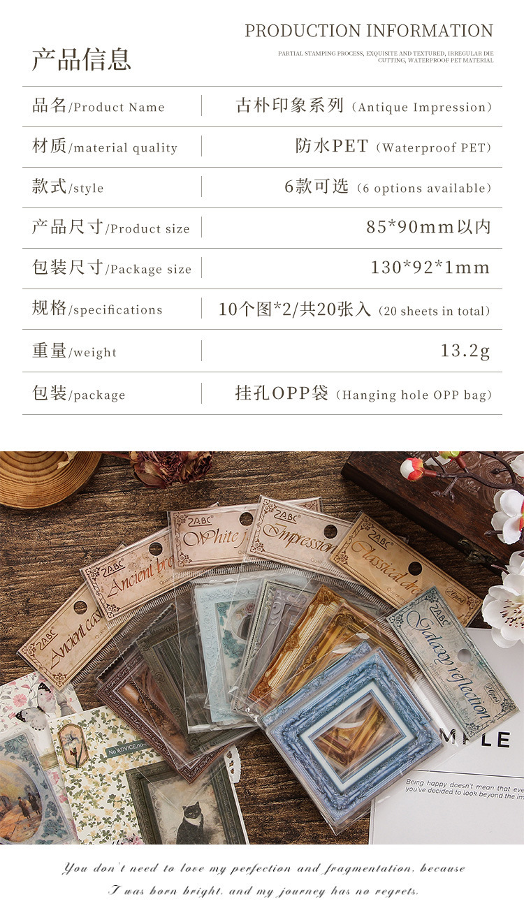 Impresión pintoresca transparente pegatinas de mascotas impermeables paquetes de pegatinas de marco retro transfronterizos álbum de fotos de decoración pegatinas de marco de fotos europeas