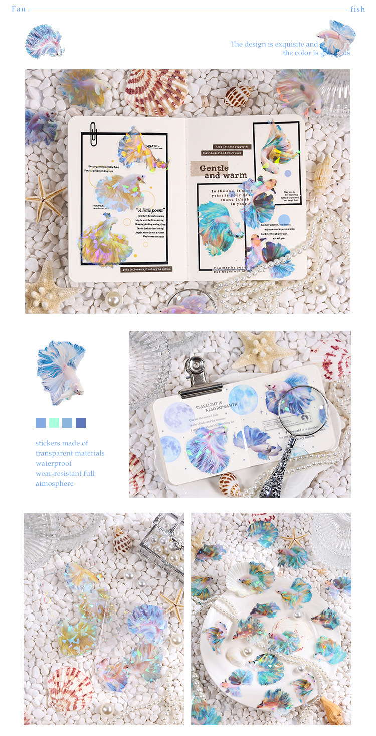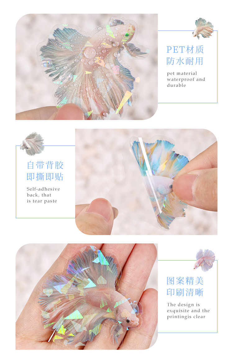 Fan-tail betina láser transparente impermeable pet manual pegatinas bolsa diy manual diario material decoración pegatinas betina