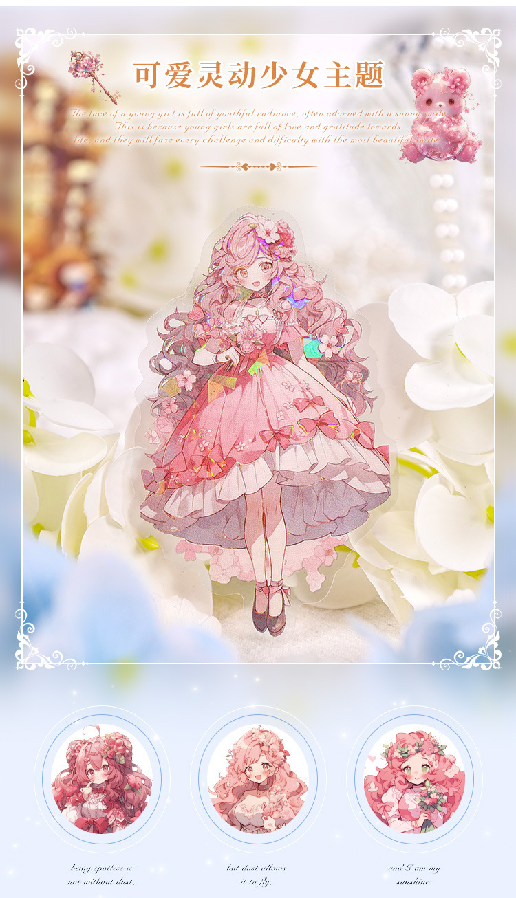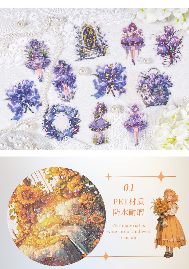 Flor belleza láser especial aceite transparente pegatinas impermeables para mascotas bolsas diy diario material concha luz pegatinas chicas