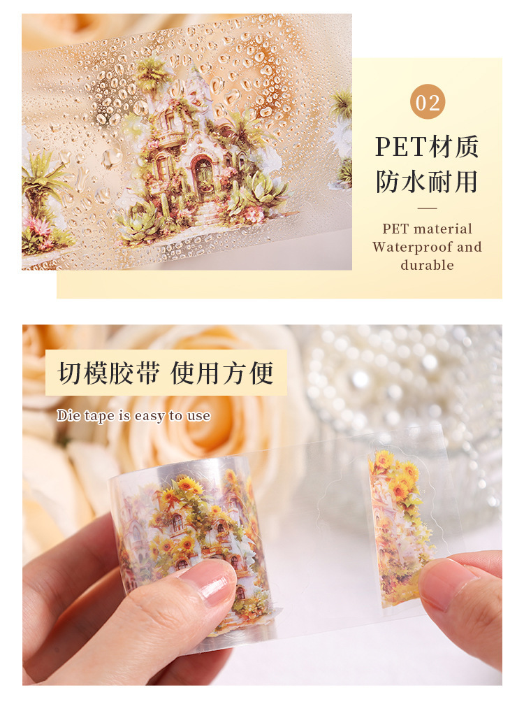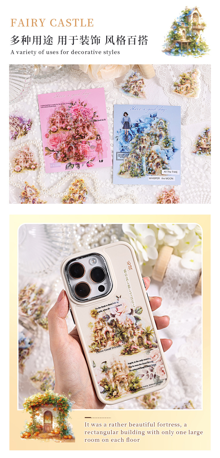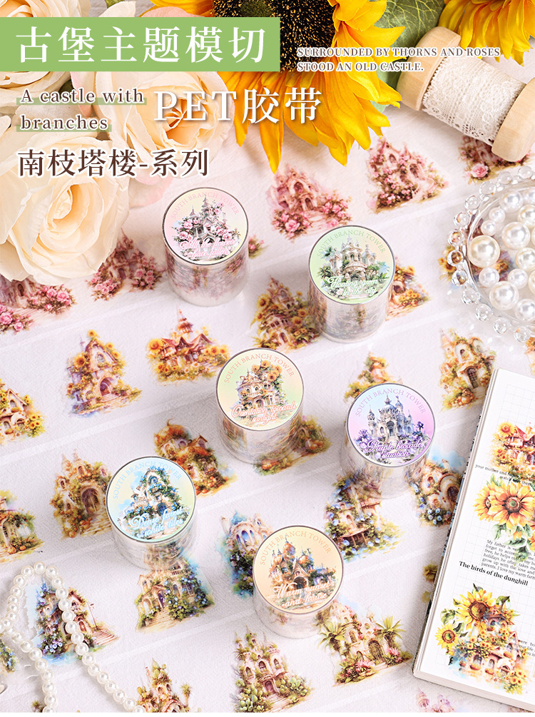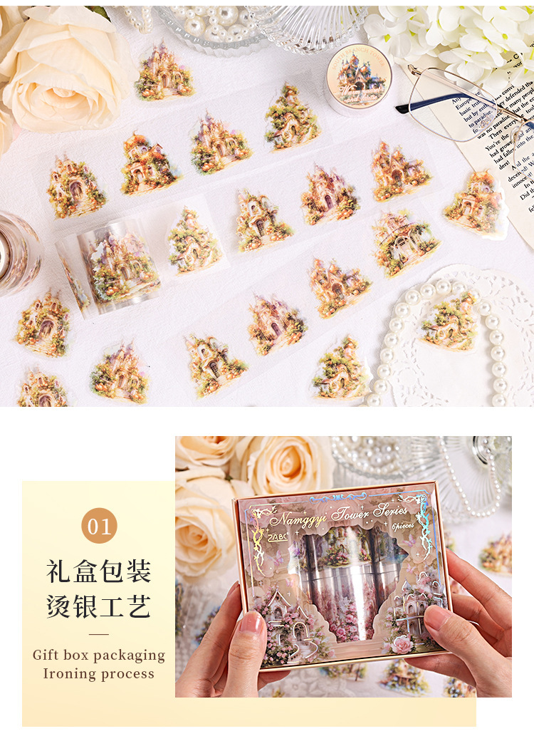 Nanzhi torre transparente cinta adhesiva impermeable pet diy cuentas de mano paisajismo pegatinas de decoración de papeleto pegatinas de castillo de ensueño