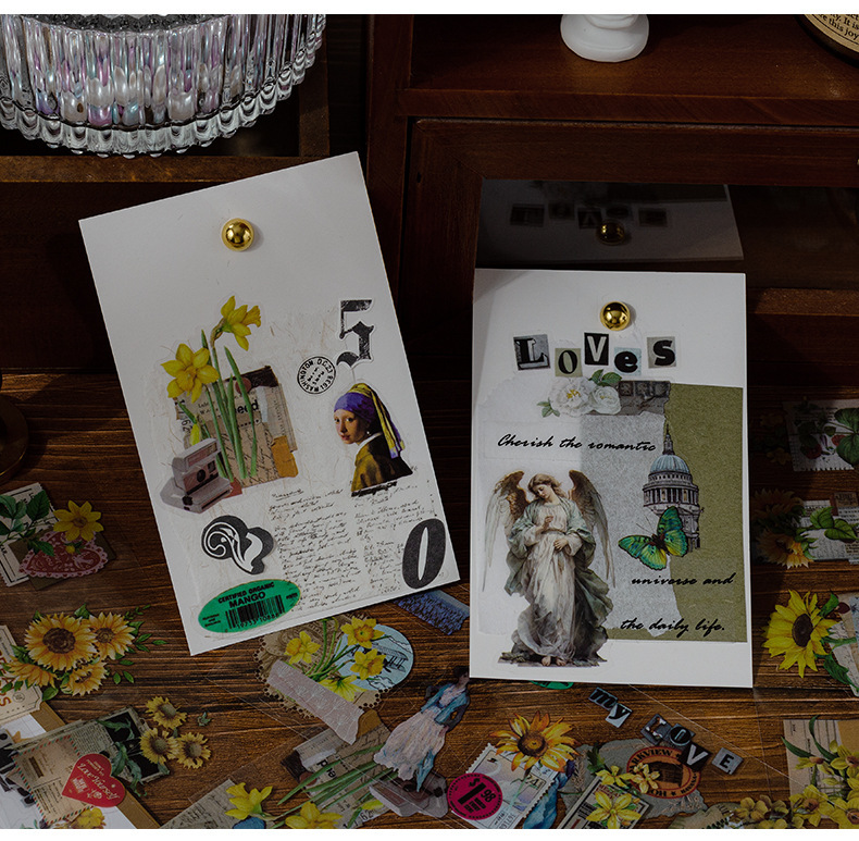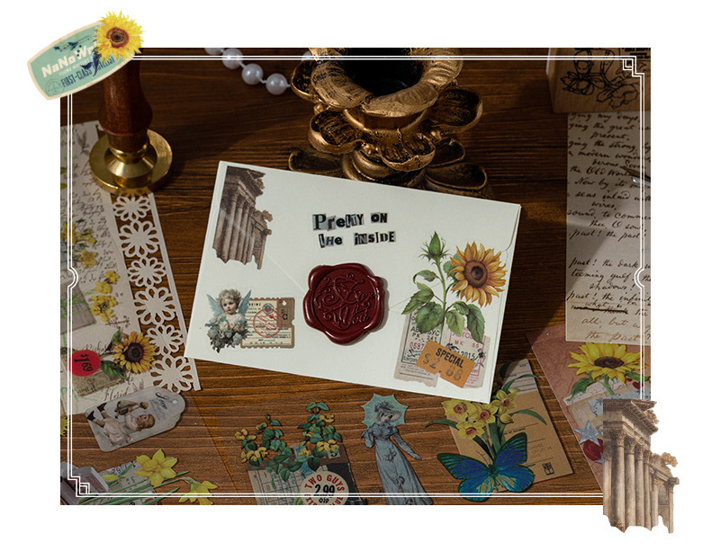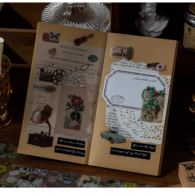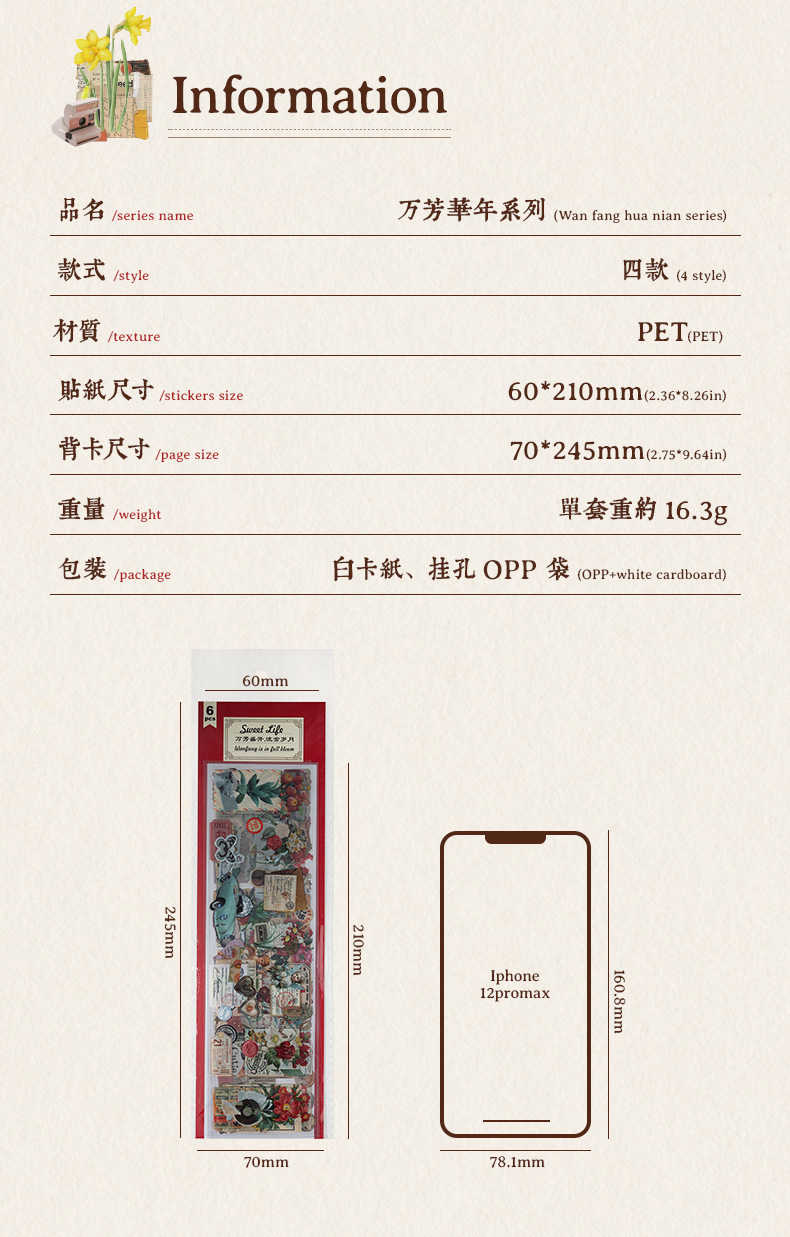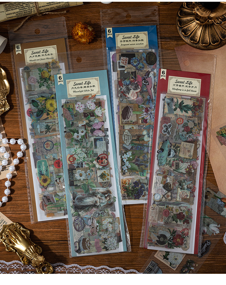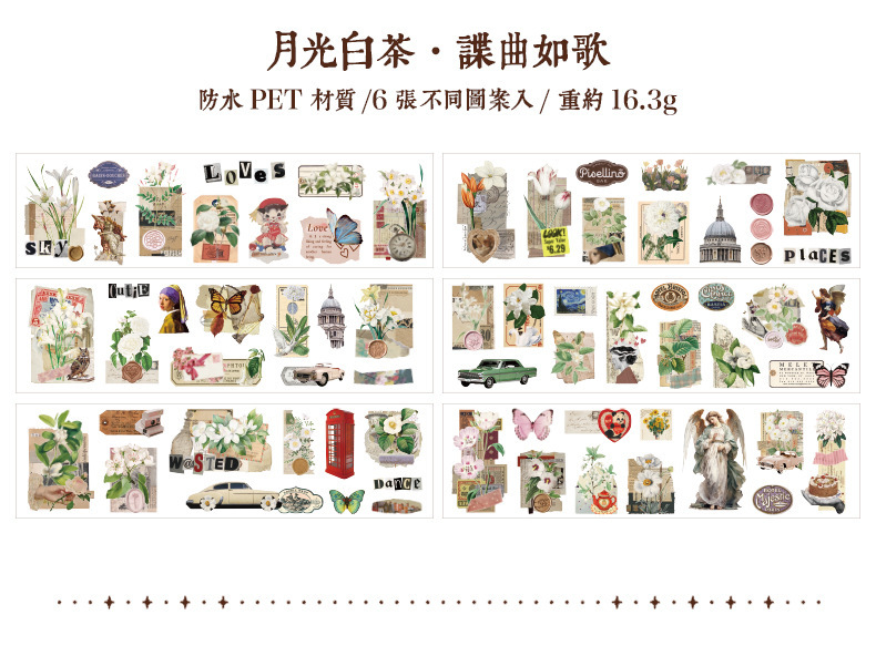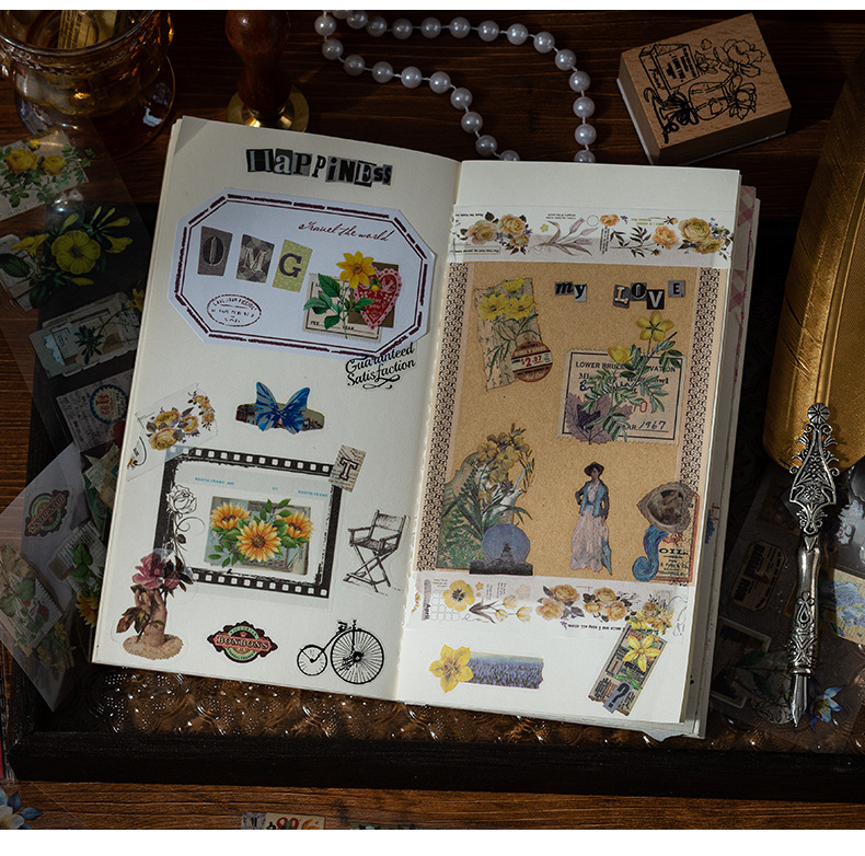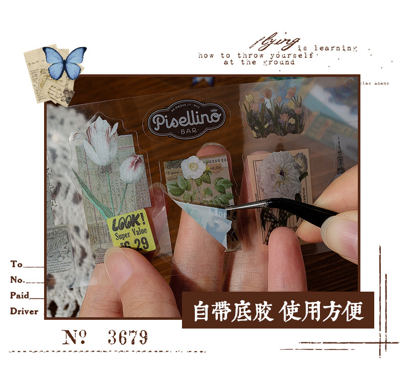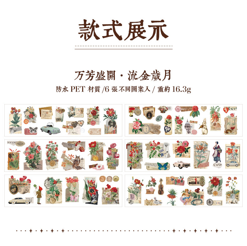 Wanfang Hua Nian pegatinas impermeables transparentes para mascotas diy diario de mano material decorativo retro flor pegatinas de plantas