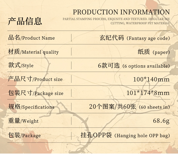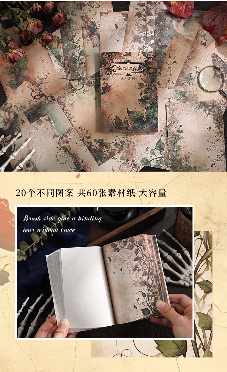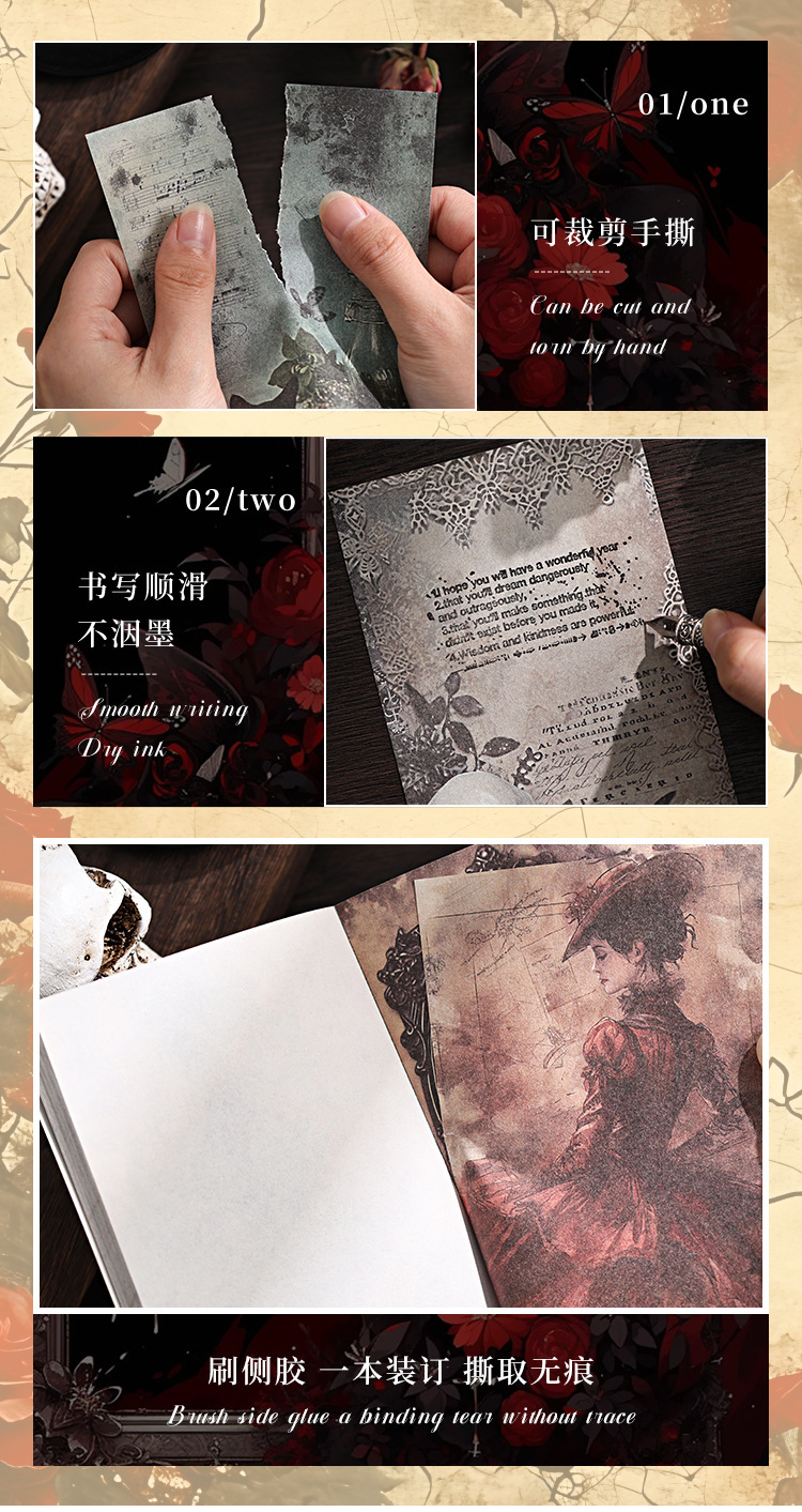 Código Xuanji no adhesivo libro de material retrógrado tela de mano material de decoración DIY mensaje libro de notas