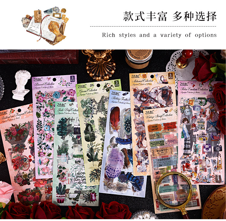 Yi Zhiwu colección transparente impermeable mascota retro pegatinas diarias DIY material de decoración de papelería transfronteriza