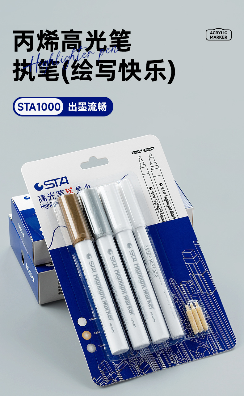 STASTA1000N acrílico de alto brillo marcador de pluma impermeable a prueba de agua pluma de pintura de color plegable pluma de graffiti personalizada para niños