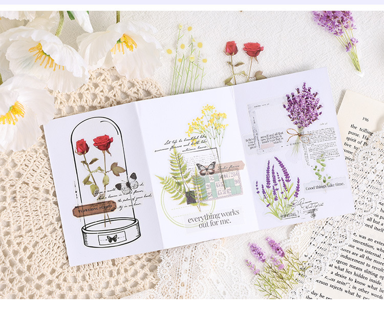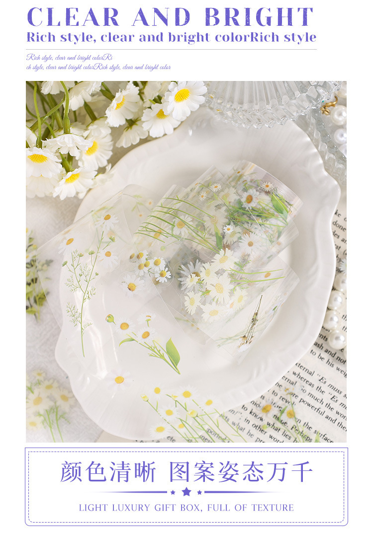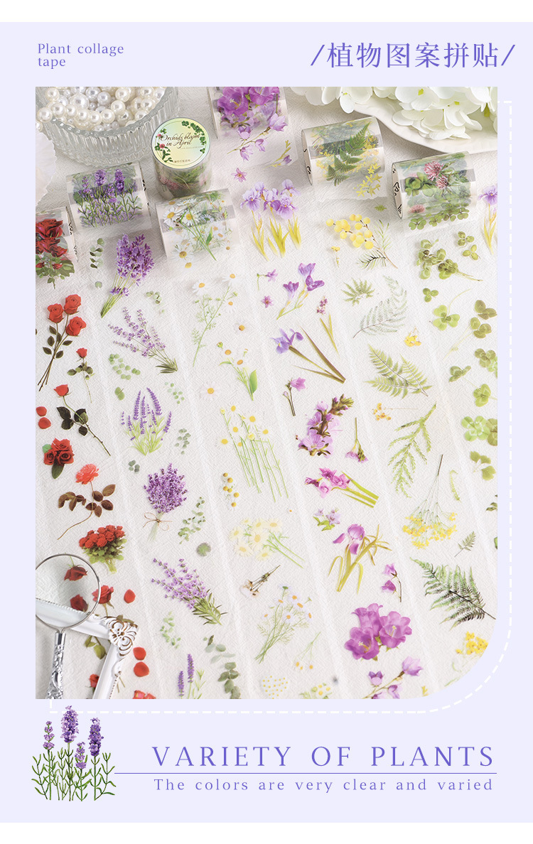 Tape adhesiva impermeable transparente para mascotas DIY diario diario material paisajístico plantas flores papelería pegatinas