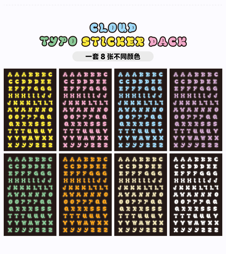 Arco iris nubes letras pegatinas de dibujos animados transparentes pegatinas de letras pet impermeables diy diario decoración pegatinas de papelería