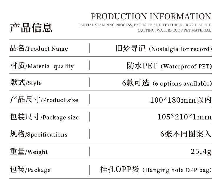 Viejos sueños para recordar pegatinas impermeables transparentes para mascotas diy diario retro material de decoración pegatinas de papelería para niños