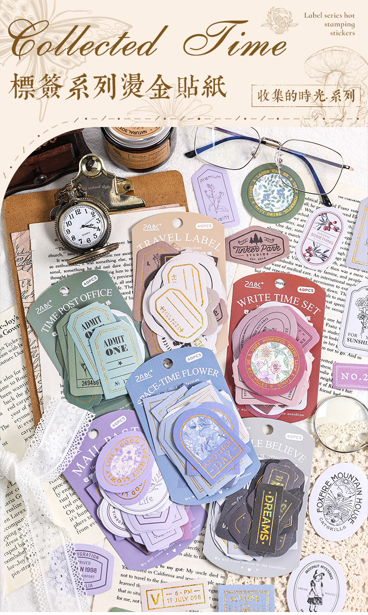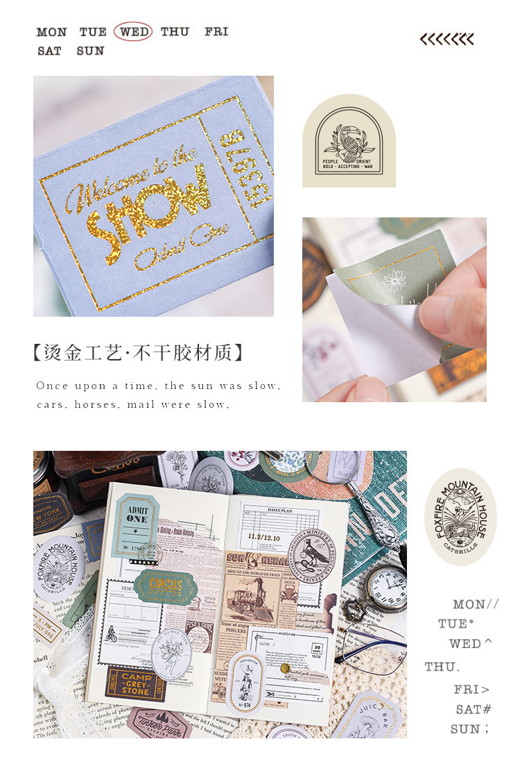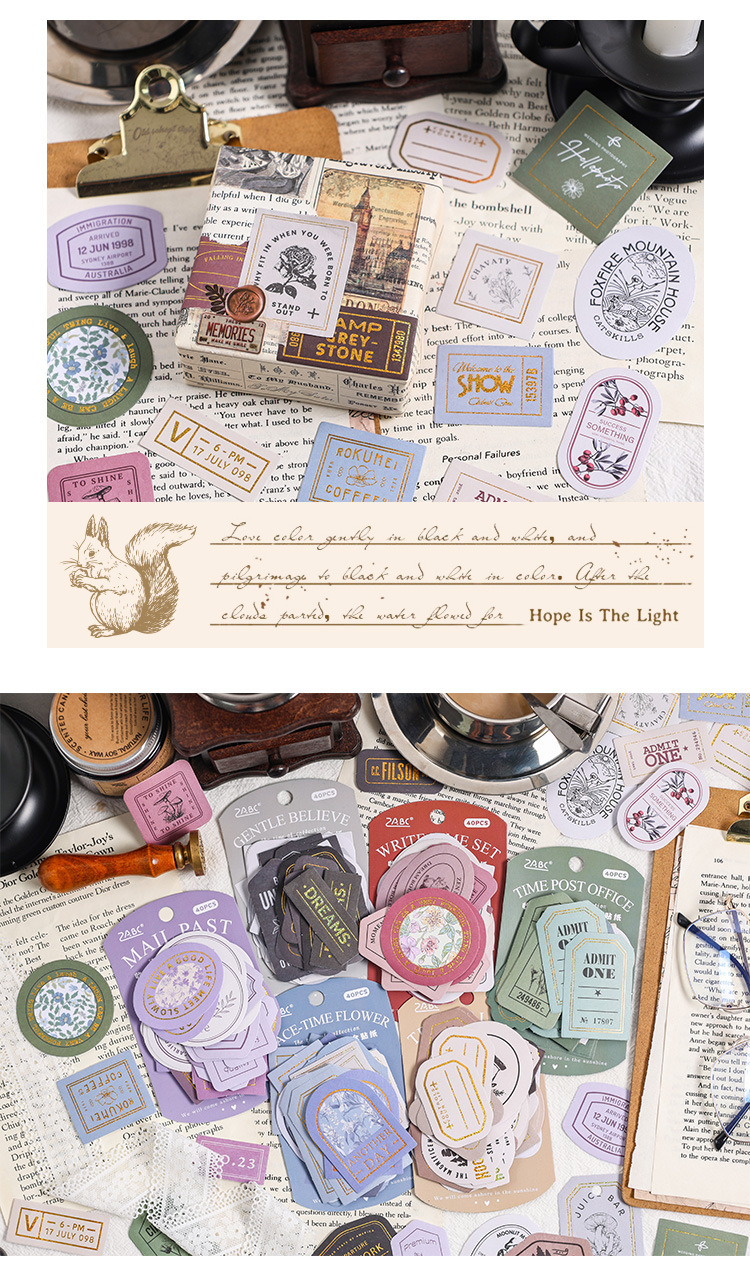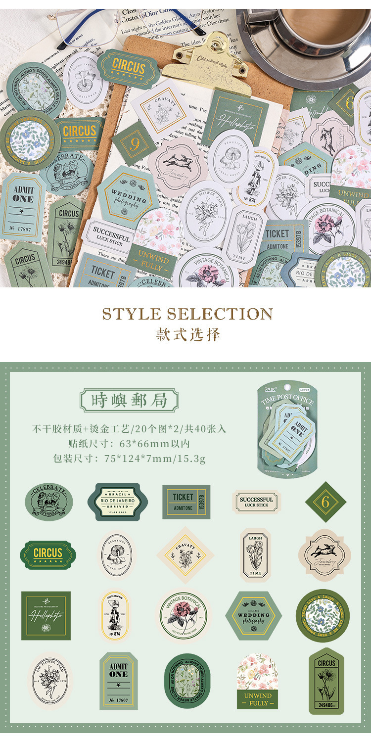 Colección de pegatinas adhesivas estampadas de tiempo bolsas DIY cuentas diarios materiales decorativos etiquetas retro papelería pegatinas
