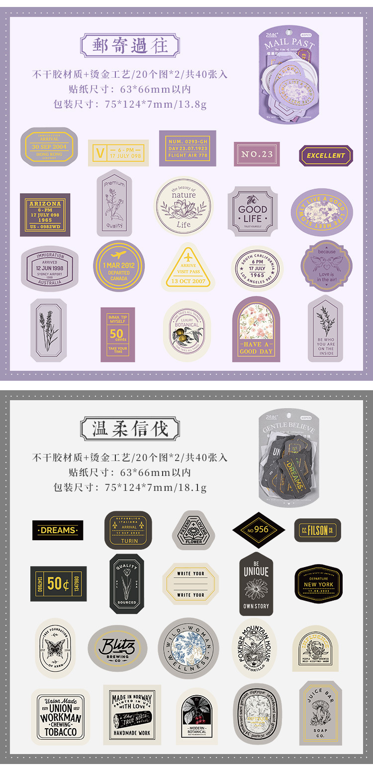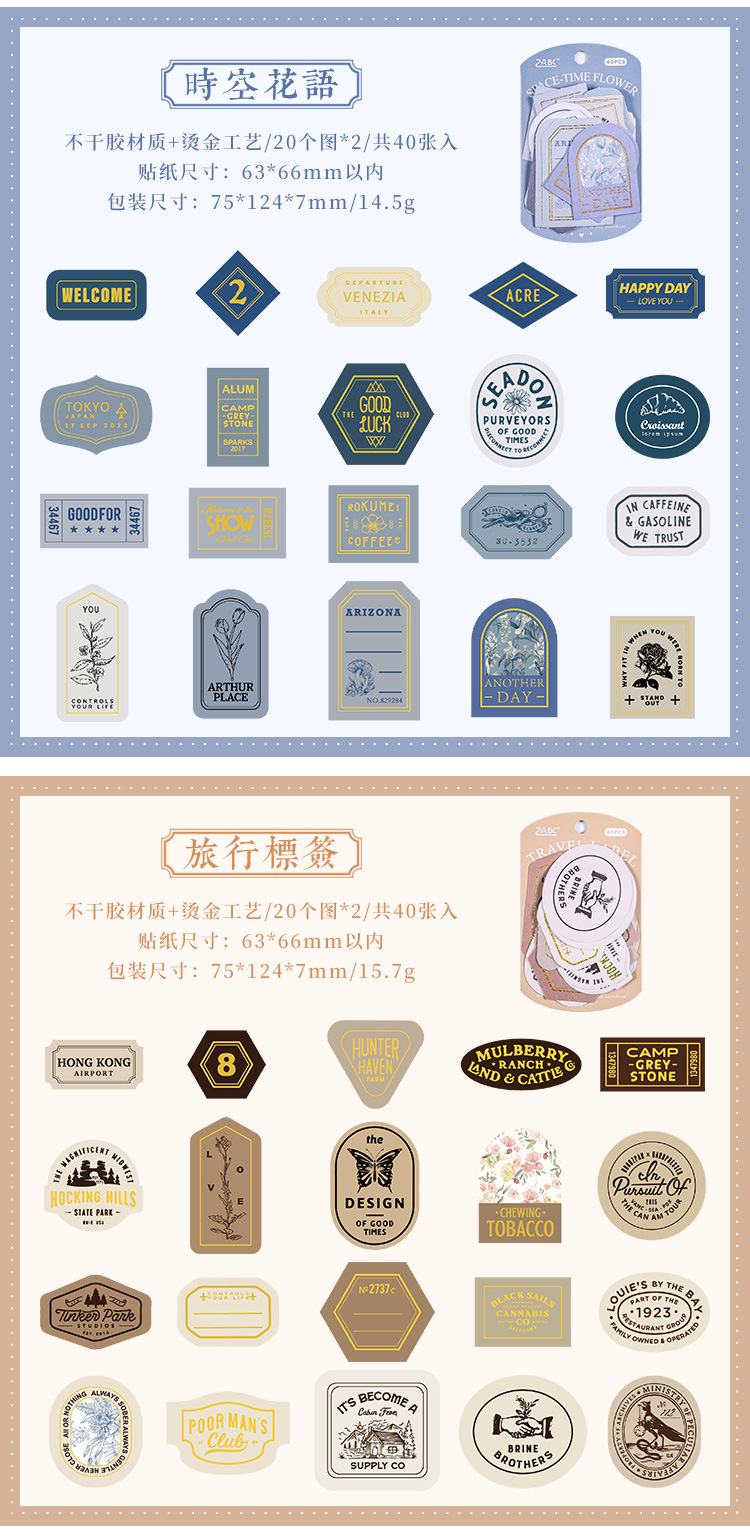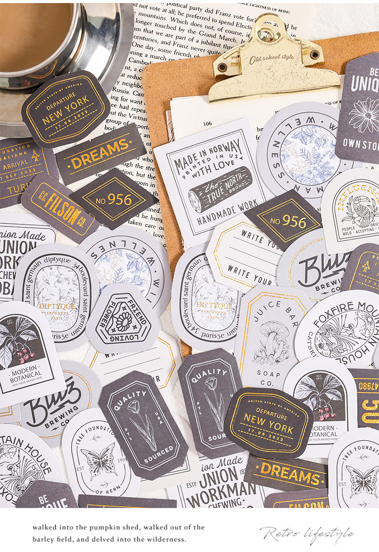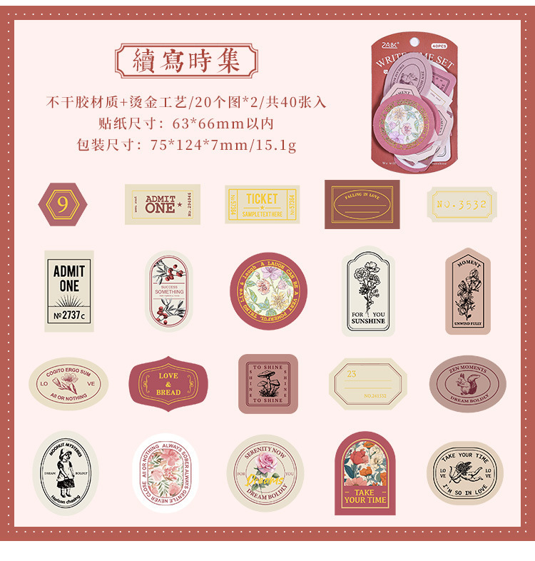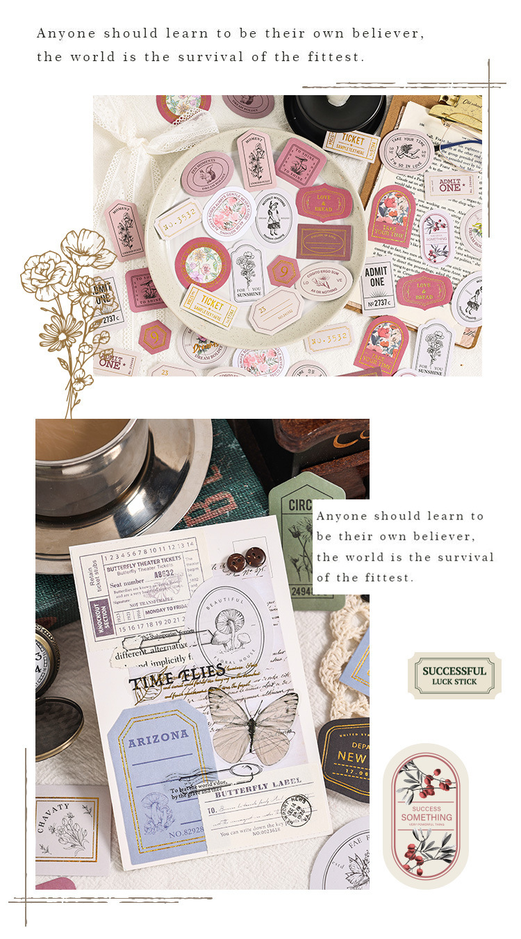 Colección de pegatinas adhesivas estampadas de tiempo bolsas DIY cuentas diarios materiales decorativos etiquetas retro papelería pegatinas