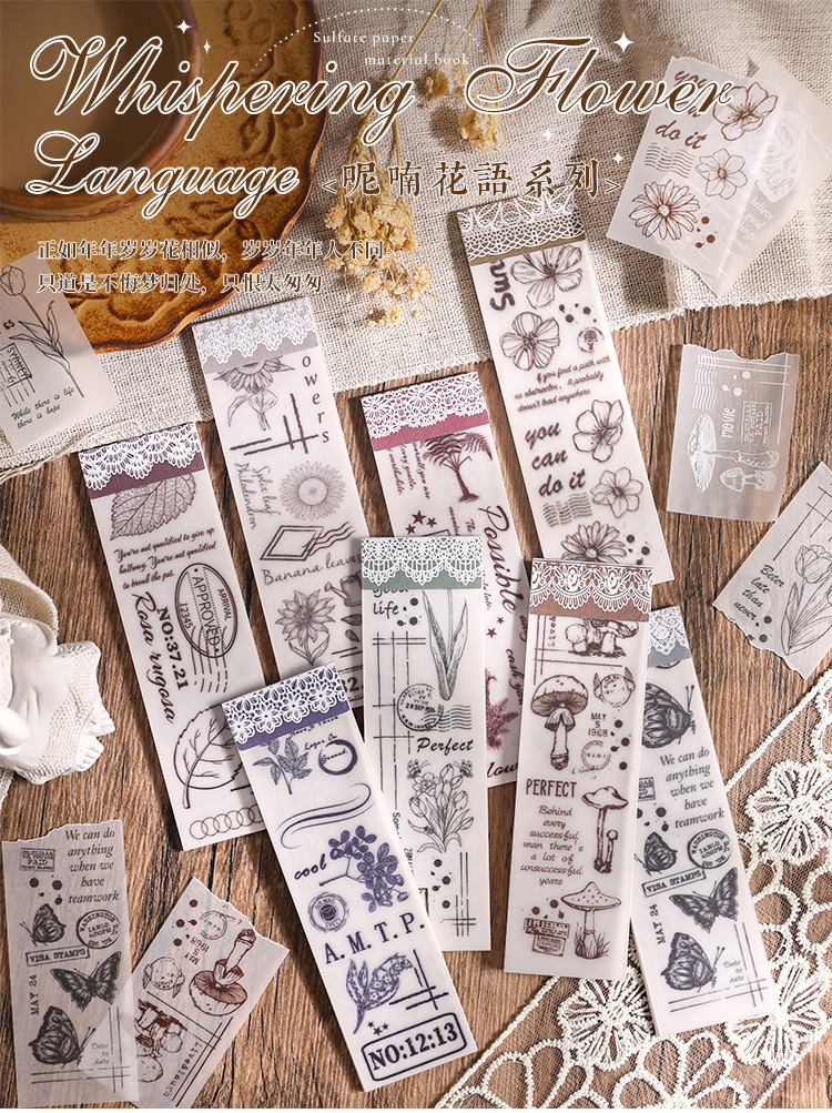 Este susurro flor pegatinas de papel de sulfato retro libro tinta blanca papel de notas puede escribir no adhesivo fondo paisajismo papel material