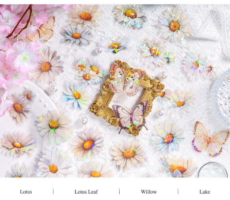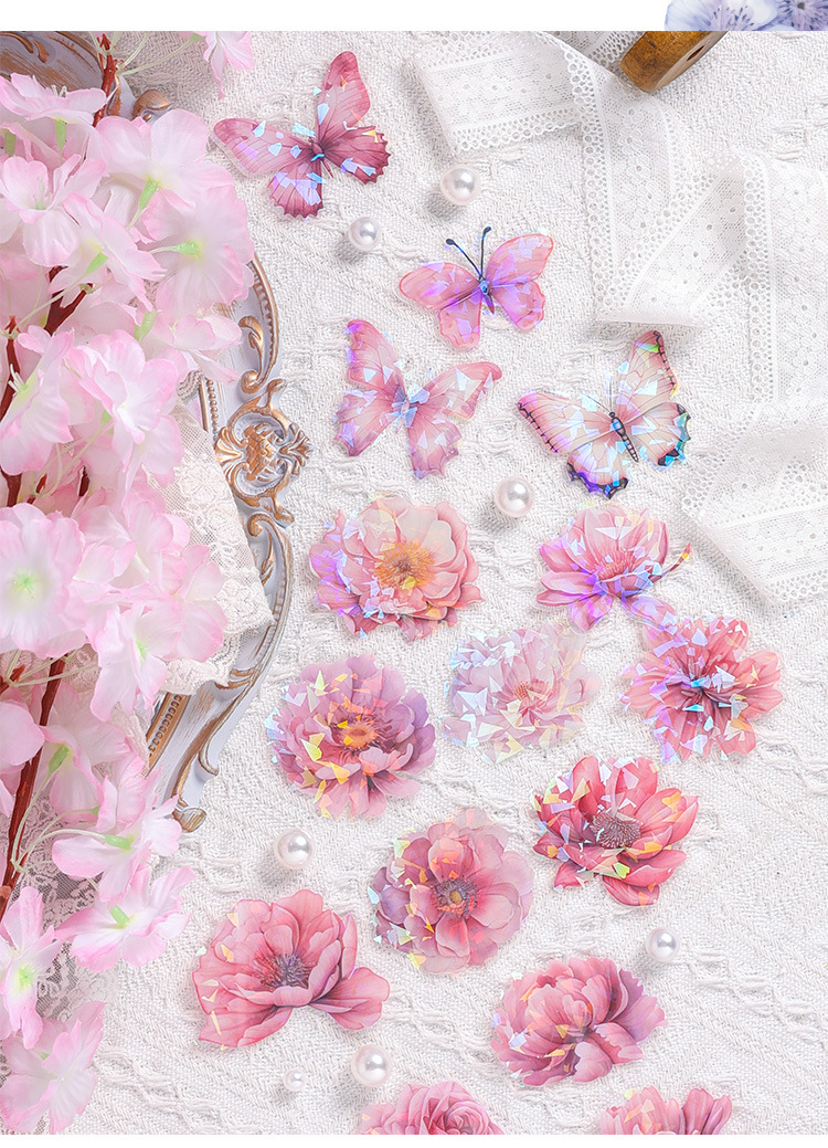 Flores transparentes pegatinas de mascotas impermeables DIY cuentas de mano diario material floral retro 60 pegatinas de caja