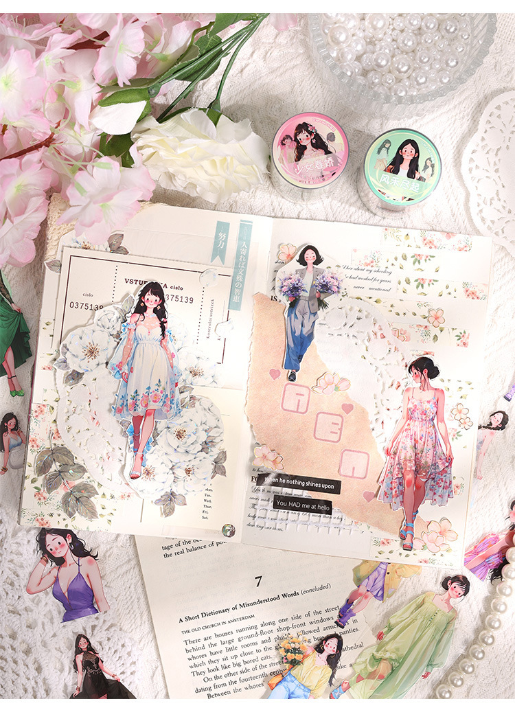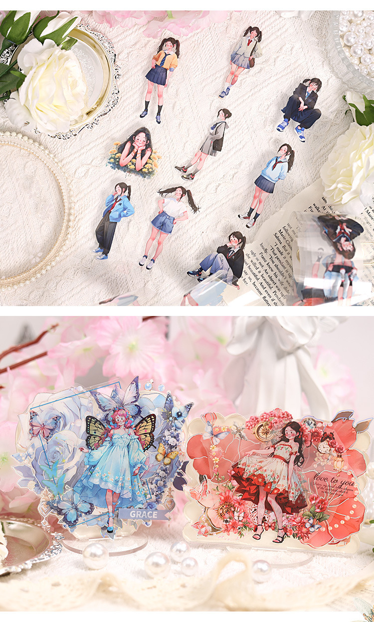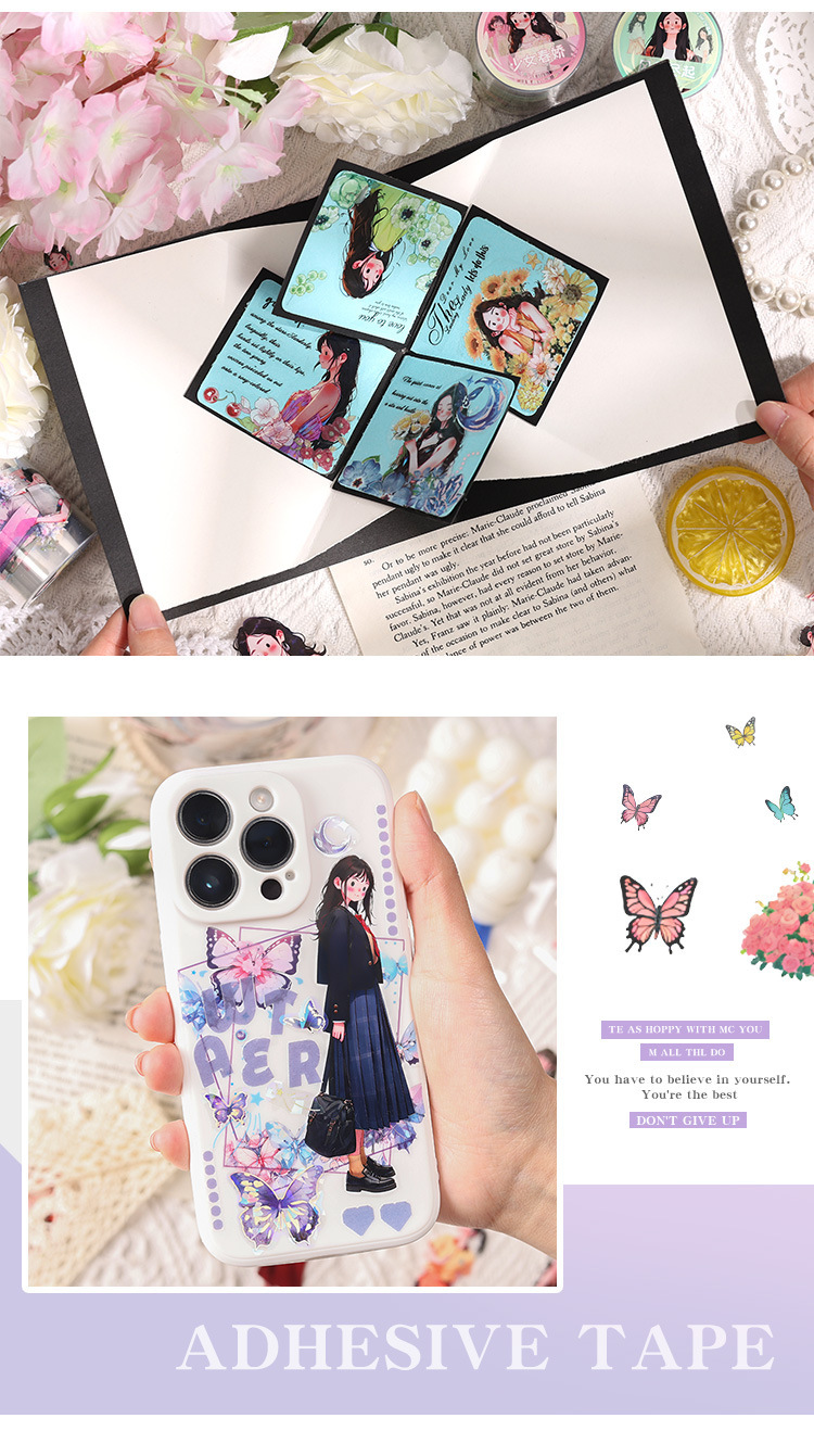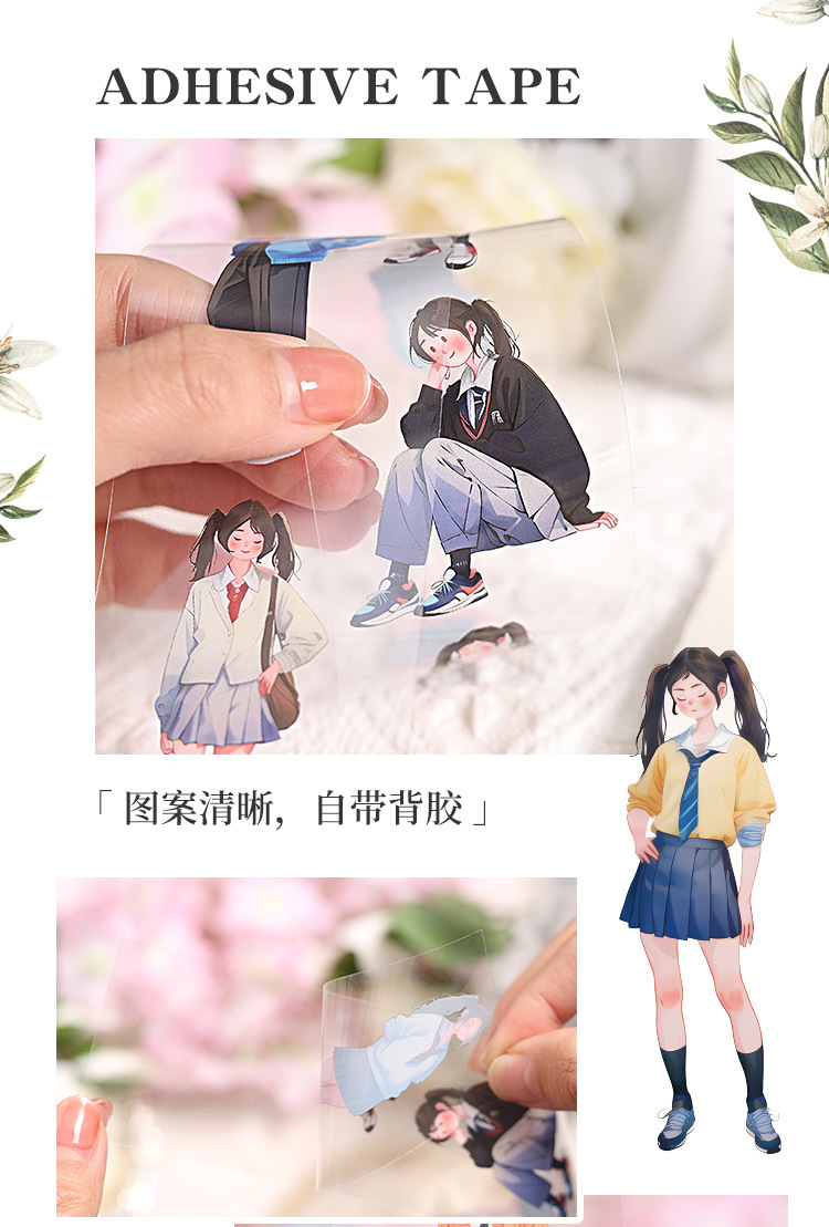 El viento bajo el bosque hace que la cinta adhesiva impermeable transparente pet roll adorable personaje hecho pegatinas paisajísticas diy pegatinas de cinta adhesiva para niñas
