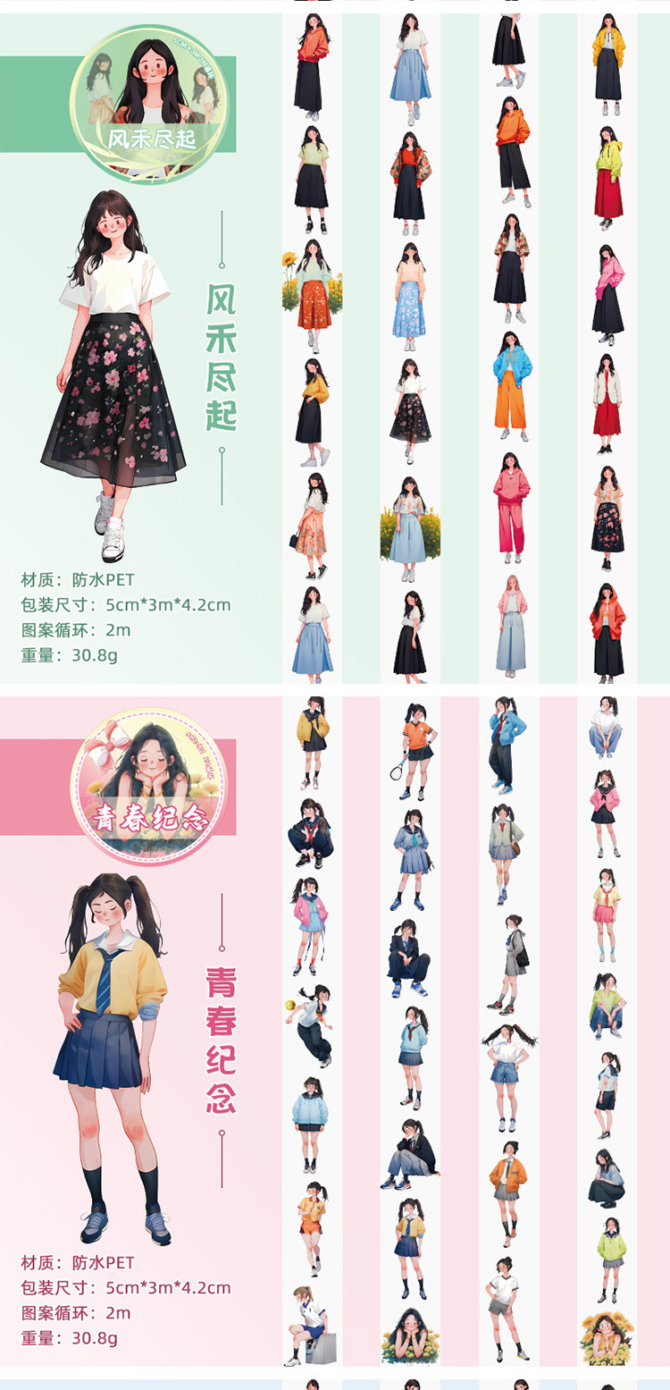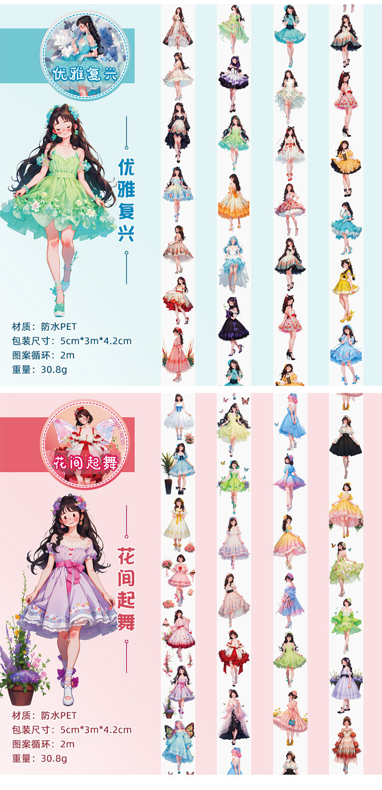 | Color | 1 tiempo agradable, 2 bailes nocturnos, 3 recuerdos juveniles, 4 desfiles de moda, 5 bailes entre flores, 6 renacimiento elegante, 7 chicas chunjiao, 8 fiestas románticas, 9 Montañas Verdes caídas, 10 olas de viento |