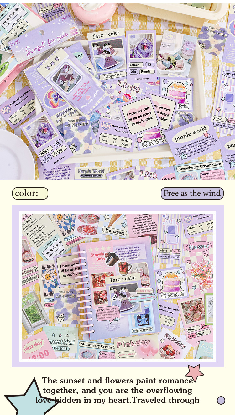 | Color | 1 garabato feliz, 2 bosque de vitalidad, 3 romance limitado, 4 ventas de atardecer |