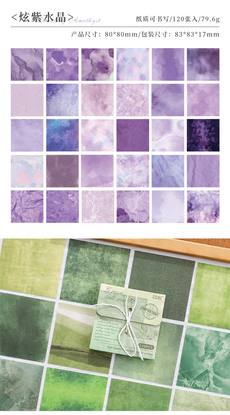 | Color | 1 ceniza salada verde, 2 texturas rosas, 3 cristales de hielo púrpura deslumbrantes, 4 mares de niebla azul de humo, 5 marcas de tinta moteadas, 6 ámbar marrón amarillento |